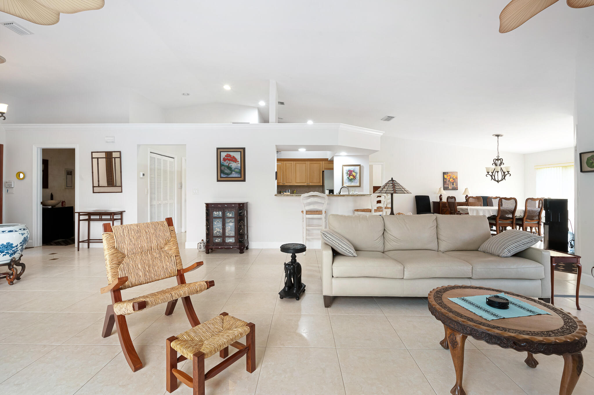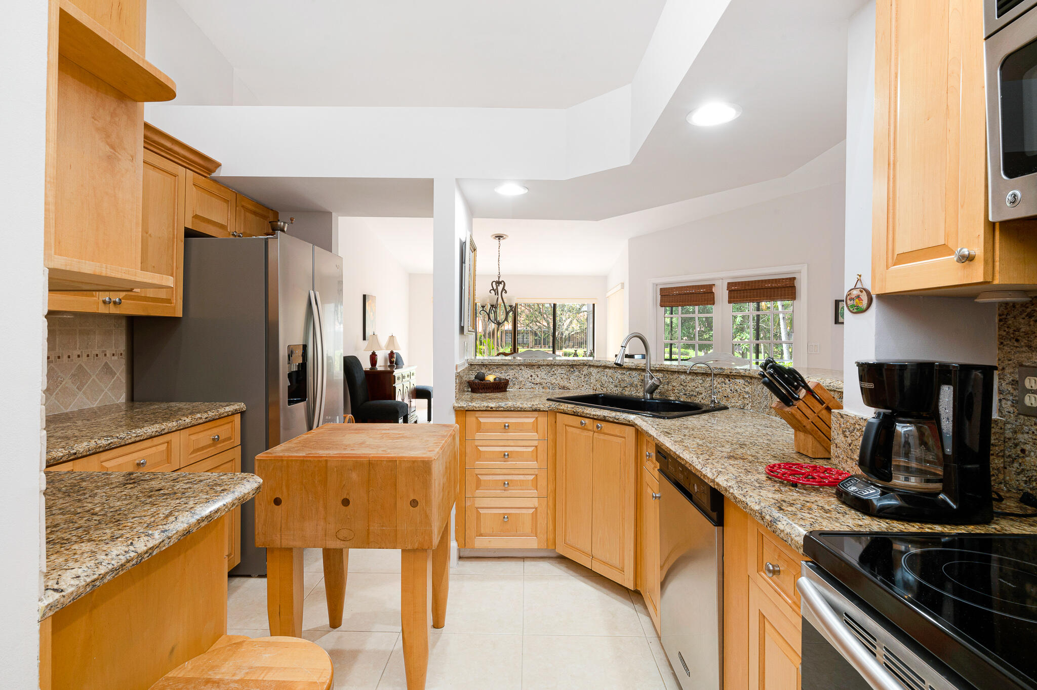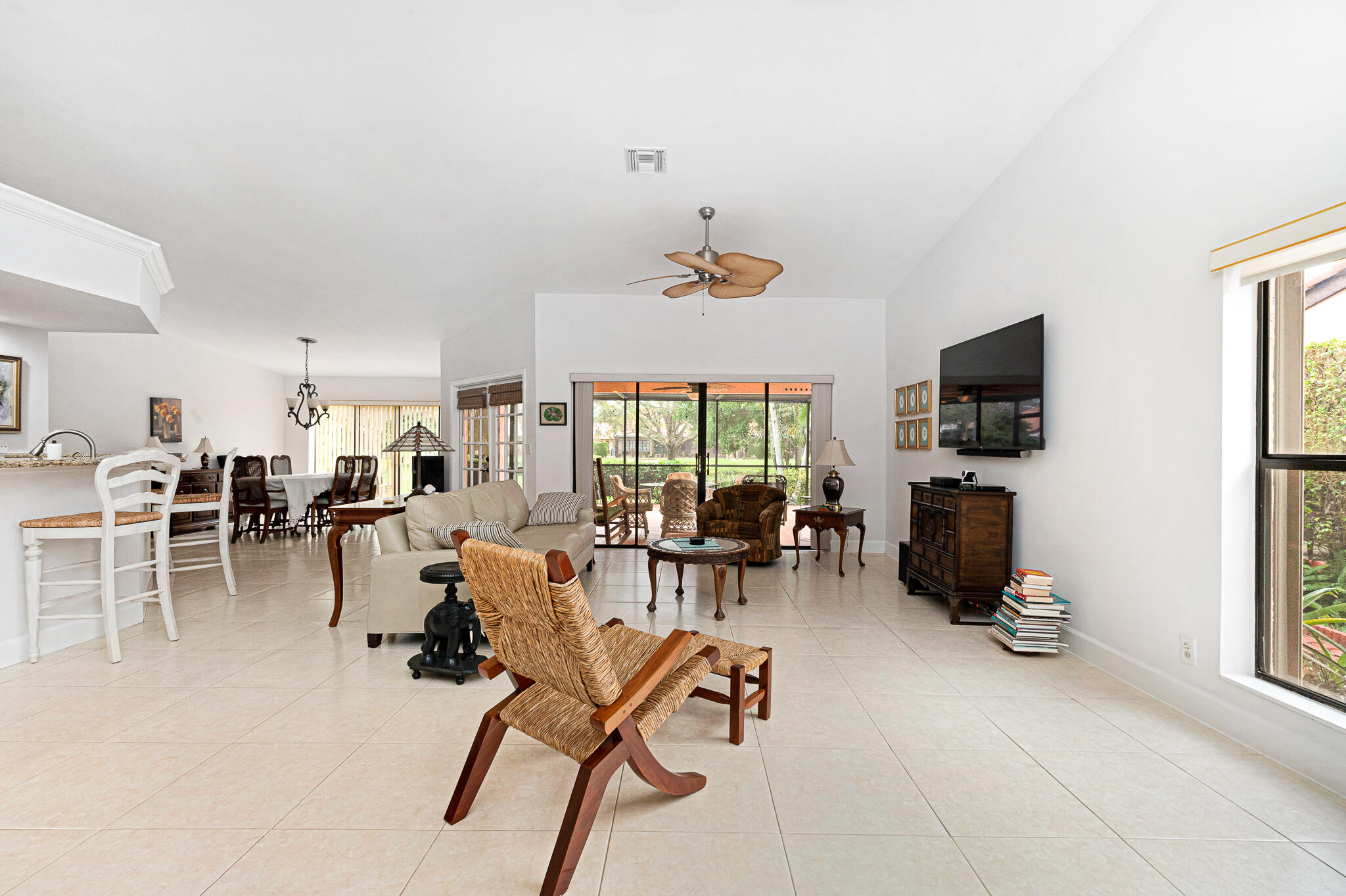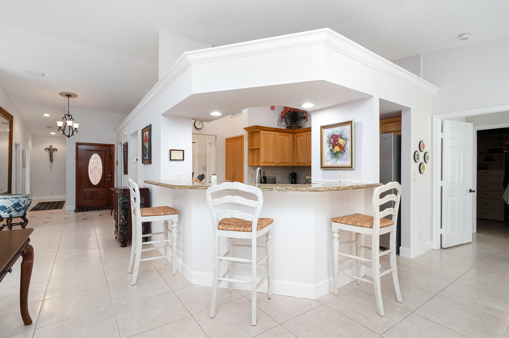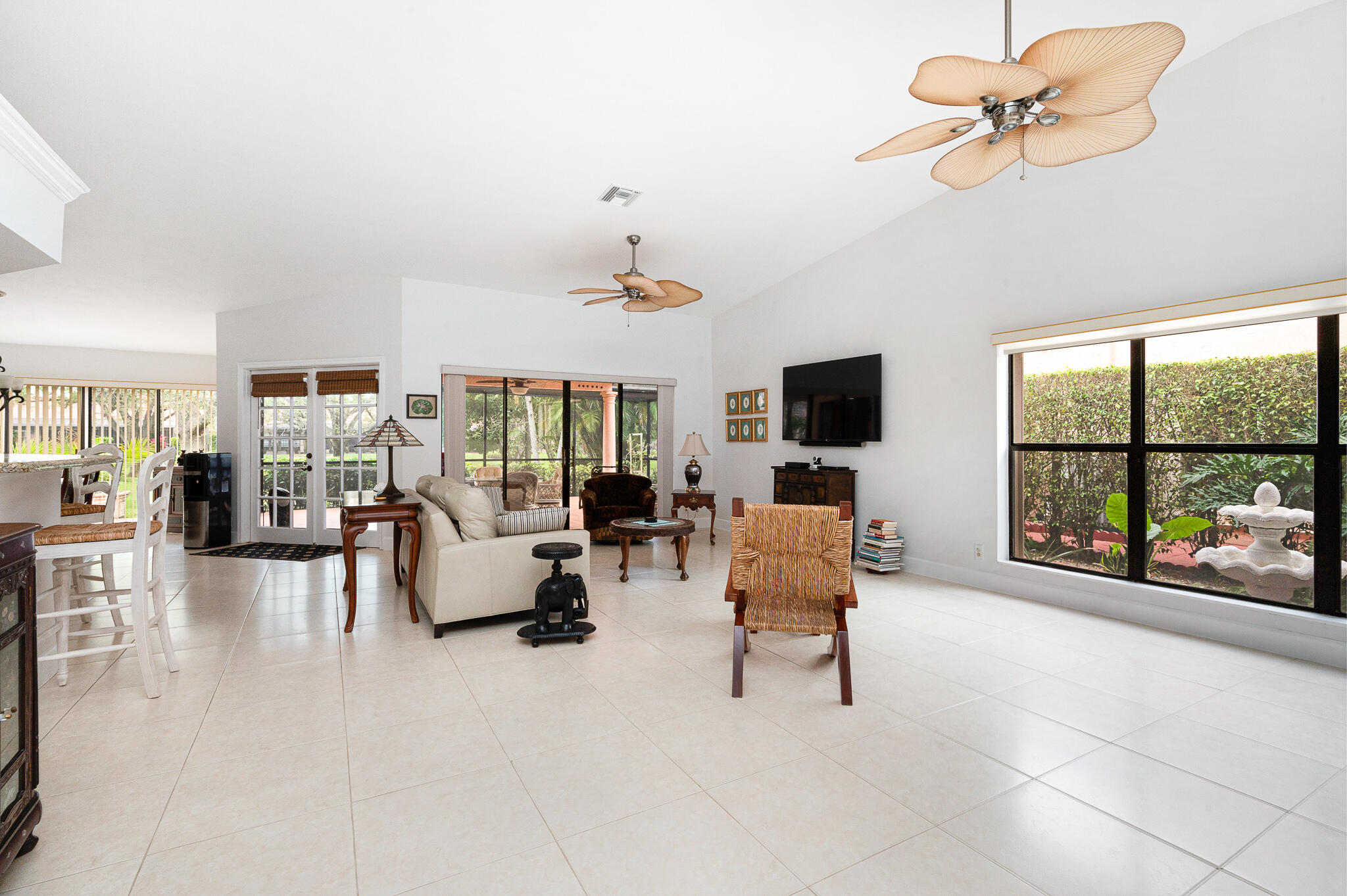 Located in the heart of Boca Del Mar. Freshly painted, Open Floor Plan w/ Neutral 20'' Tiles in all Living Areas, French Doors, Flat Finished Ceilings (No Popcorn!), Vaulted Ceilings in Living Room, Dining Room, Kitchen & Master Suite, Designer Fans and Fixtures Throughout... Updated Kitchen with newer Refrigerator, Range, Wood (Maple) Cabinets, SS Appliances, Granite Counters & Breakfast Bar, Tumbled Marble Backsplash, Large Pantry and Hurricane Protection.