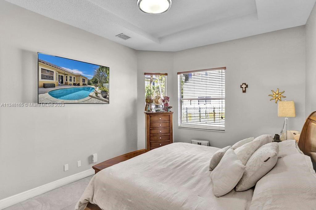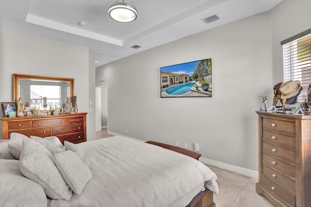 Great Escada Estate, well maintained home with 4 bed / 3 bath and pool. Remodeled bathrooms, 1y.o. AC, new floors. Lots of natural light, open floor plan, plenty of entertainment space. This one story Bergamo model has a 3 way split plan. Large Master bedroom with a huge built in walk in closet. Large Family room overlooking the pool and a private back yard. Viscaya is a gated community with plenty of amenities, including a gym, a clubhouse, a pool. Great schools, minutes to major highways. Won't last long - call today.