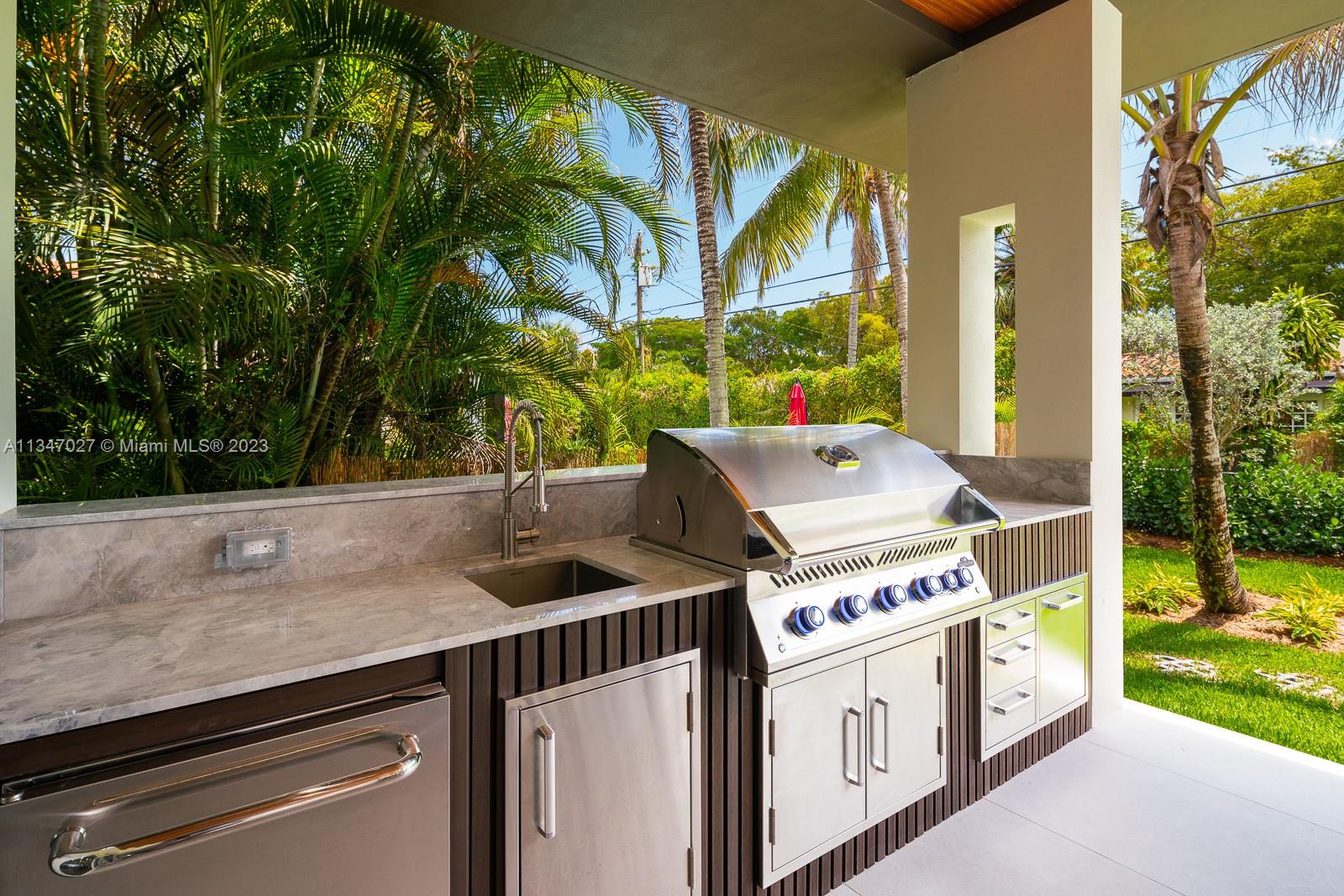 Indulge in luxury living at this magnificent 2-story residence in the highly-coveted Coral Gables. With 4 bedrooms and 4.5 bathrooms, the property is a testament to fine craftsmanship, blending both classic & modern styles in perfect harmony. The main level boasts open-concept social areas, complete with a modern Italian kitchen, showcasing a spectacular array of premium appliances. The upper floor features bedrooms with walk-in closets and a laundry room. Features such as high ceilings, eco-wood flooring, designer bathrooms with matte black fixtures, create a refined ambiance. Outside, the large pool & covered patio provide an ideal setting, whilst the fully-equipped summer kitchen is perfect for dining alfresco. Pre-installed internet & 1-car garage complete this luxurious haven.