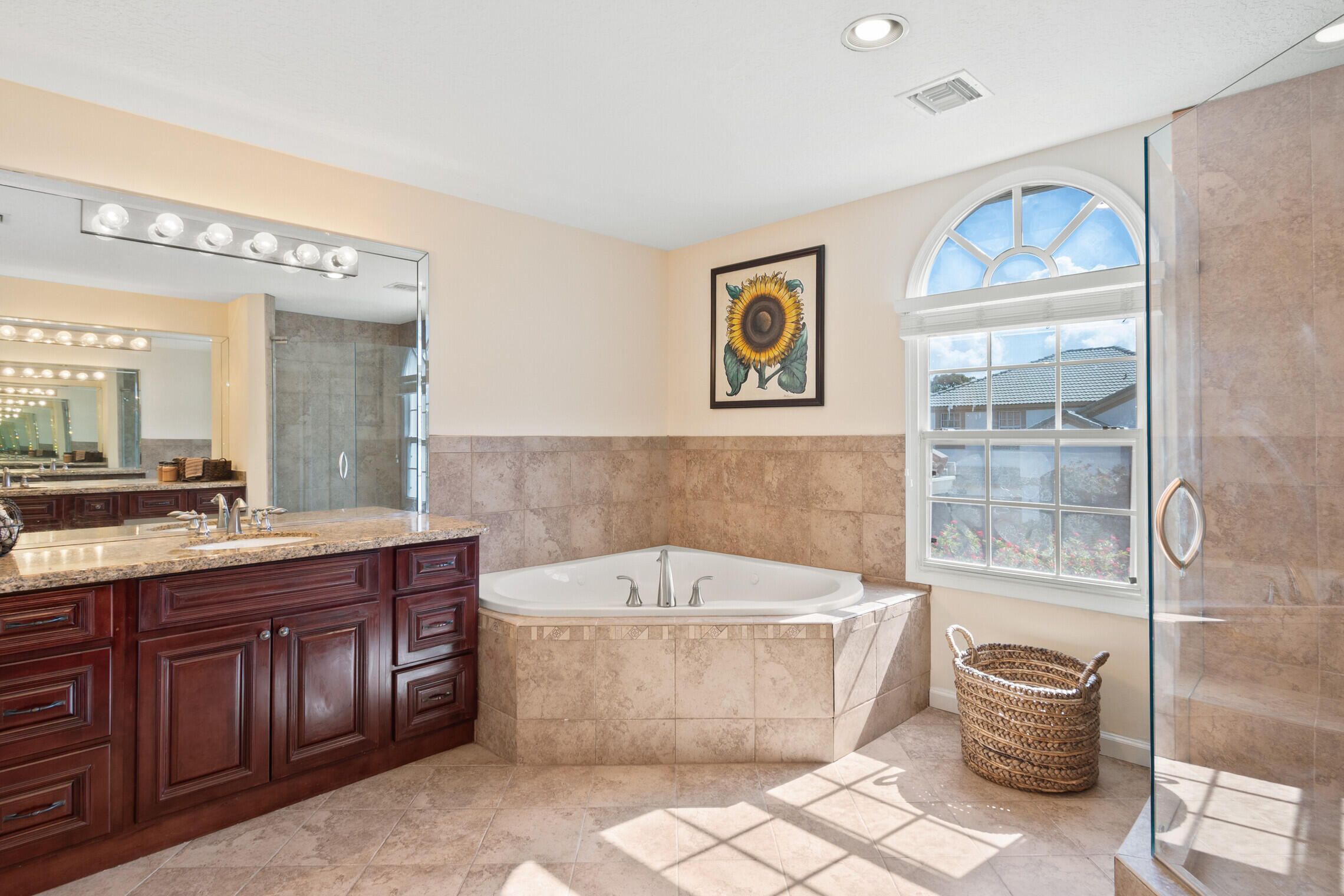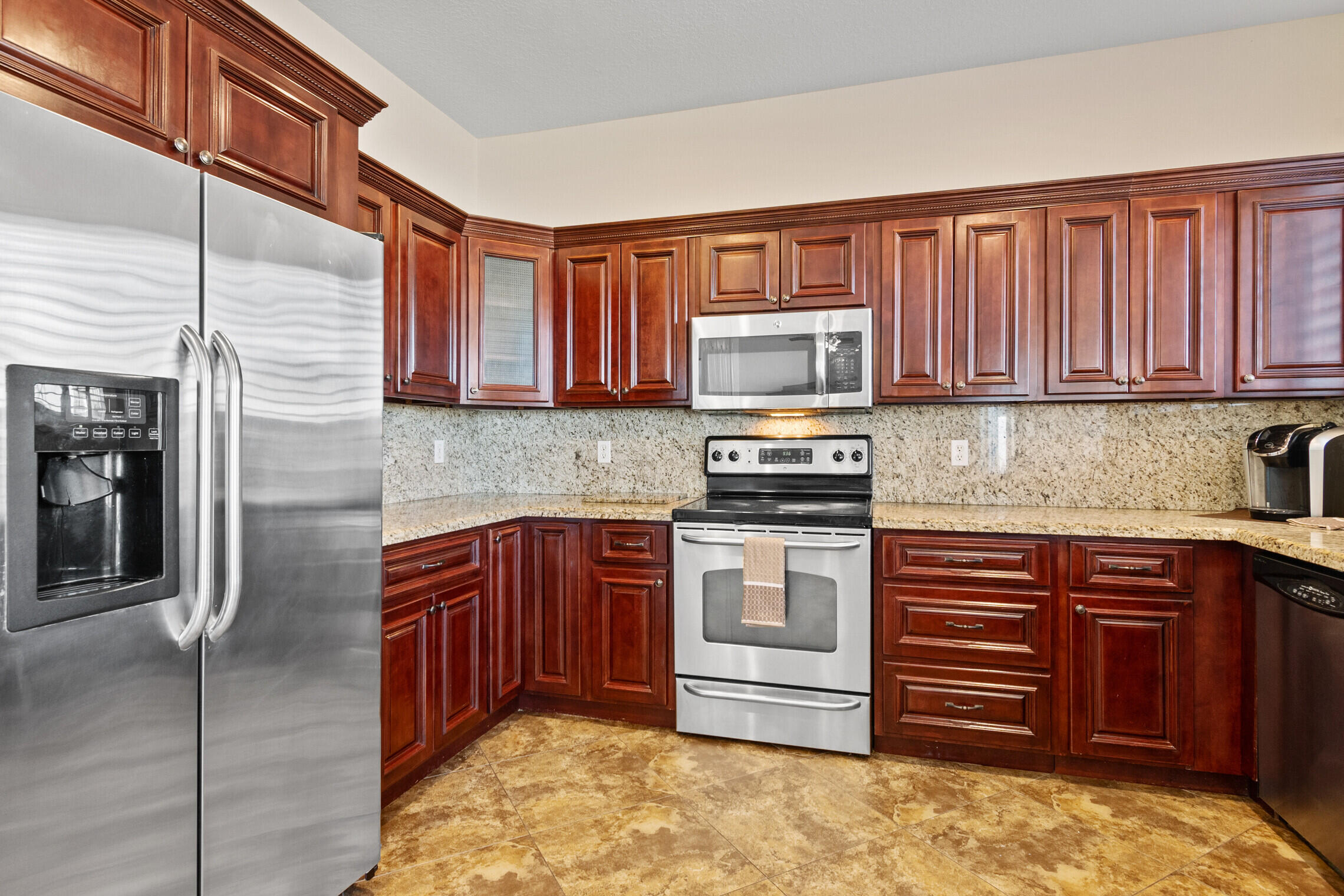 This elegant fully furnished, move-in ready, 5 bedroom 2.5 bath home is located in the beautiful community of Avondale at Bear Lakes. A private gated entrance and thoughtfully landscaped neighborhood invite you into the front yard of 1225 Avondale Lane. Upon entrance, you're warmly greeted by hardwood floors, fresh paint, and a bright and open floor plan seamlessly connecting the dining room, kitchen, and living room. Meticulous attention to detail is presented in the kitchen with custom cabinets, granite countertops, stainless-steel appliances, and a roomy pantry. You'll enjoy the classic elegance of plantation shutters that allow the South Florida sunshine to flood the entire space. Walk outside to your private backyard oasis complete with pool surrounded by Italian travertine deck.