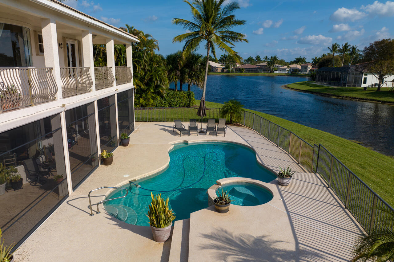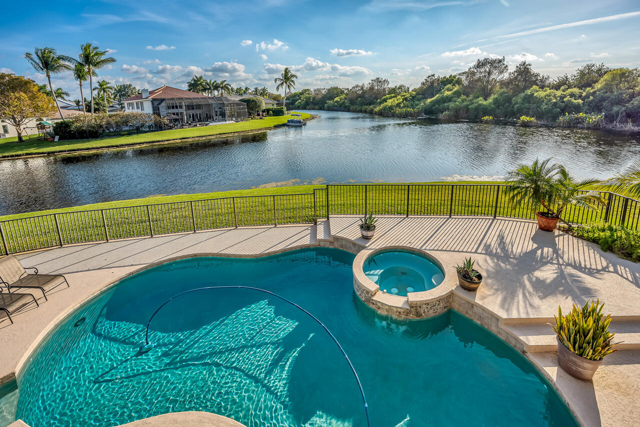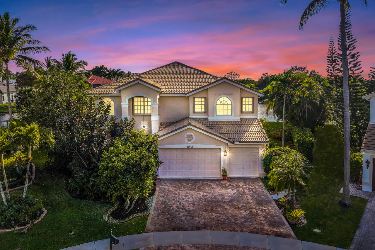 The sunsets and views from this beautiful home are spectacular! Come check out this 5 bedroom (1 full bed/bath downstairs) 4 bath Chateau Lafitte model built by GL Homes. It features a whole-home generator, expanded laundry/mud room, full length balcony off back of home used by 2 of the bedrooms, electronic screens by pool go up and down depending on desired use, 1/4 acre privacy lot on nature preserve and lake views from everywhere! It sits on a cul-de-sac - great for kids. It also has 2 newer wifi controlled ACs & wifi H2O heater, brand new impact entry door, a sitting room off primary bedroom, new pool pump aids the salt water-heated pool, new exterior paint job and more! Saturnia sits across from 2 A-rated schools and just outside the nicest park in Palm Beach, featuring a water park!