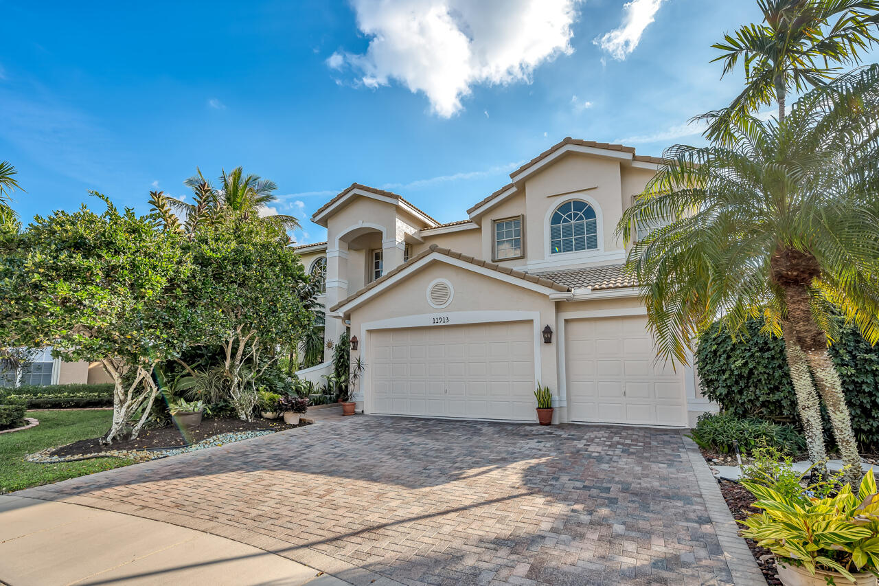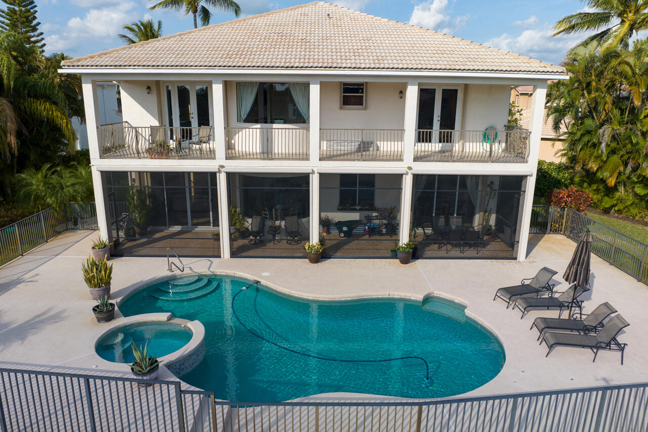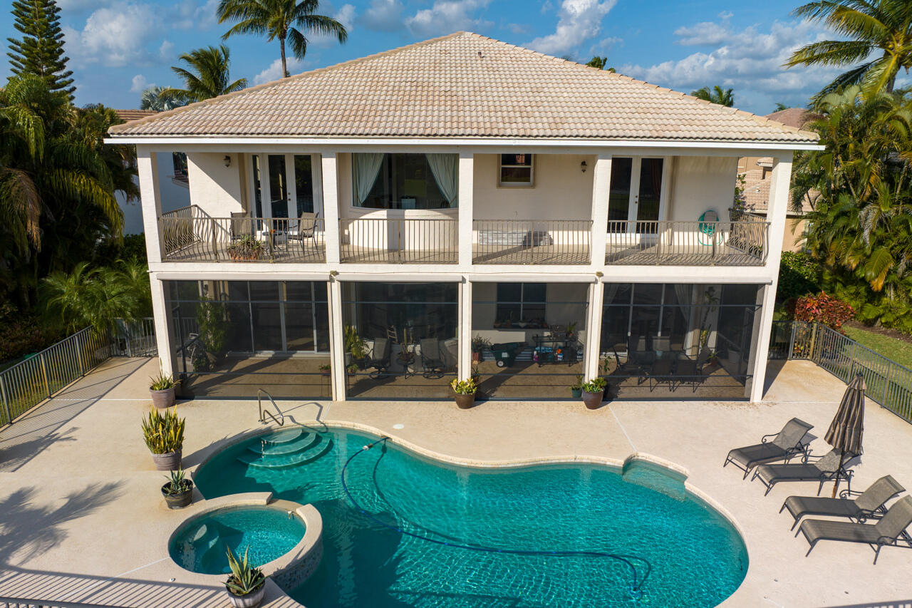 The sunsets and views from this beautiful home are spectacular! Come check out this 5 bedroom (1 full bed/bath downstairs) 4 bath Chateau Lafitte model built by GL Homes. It features a whole-home generator, expanded laundry/mud room, full length balcony off back of home used by 2 of the bedrooms, electronic screens by pool go up and down depending on desired use, 1/4 acre privacy lot on nature preserve and lake views from everywhere! It sits on a cul-de-sac - great for kids. It also has 2 newer wifi controlled ACs & wifi H2O heater, brand new impact entry door, a sitting room off primary bedroom, new pool pump aids the salt water-heated pool, new exterior paint job and more! Saturnia sits across from 2 A-rated schools and just outside the nicest park in Palm Beach, featuring a water park!
