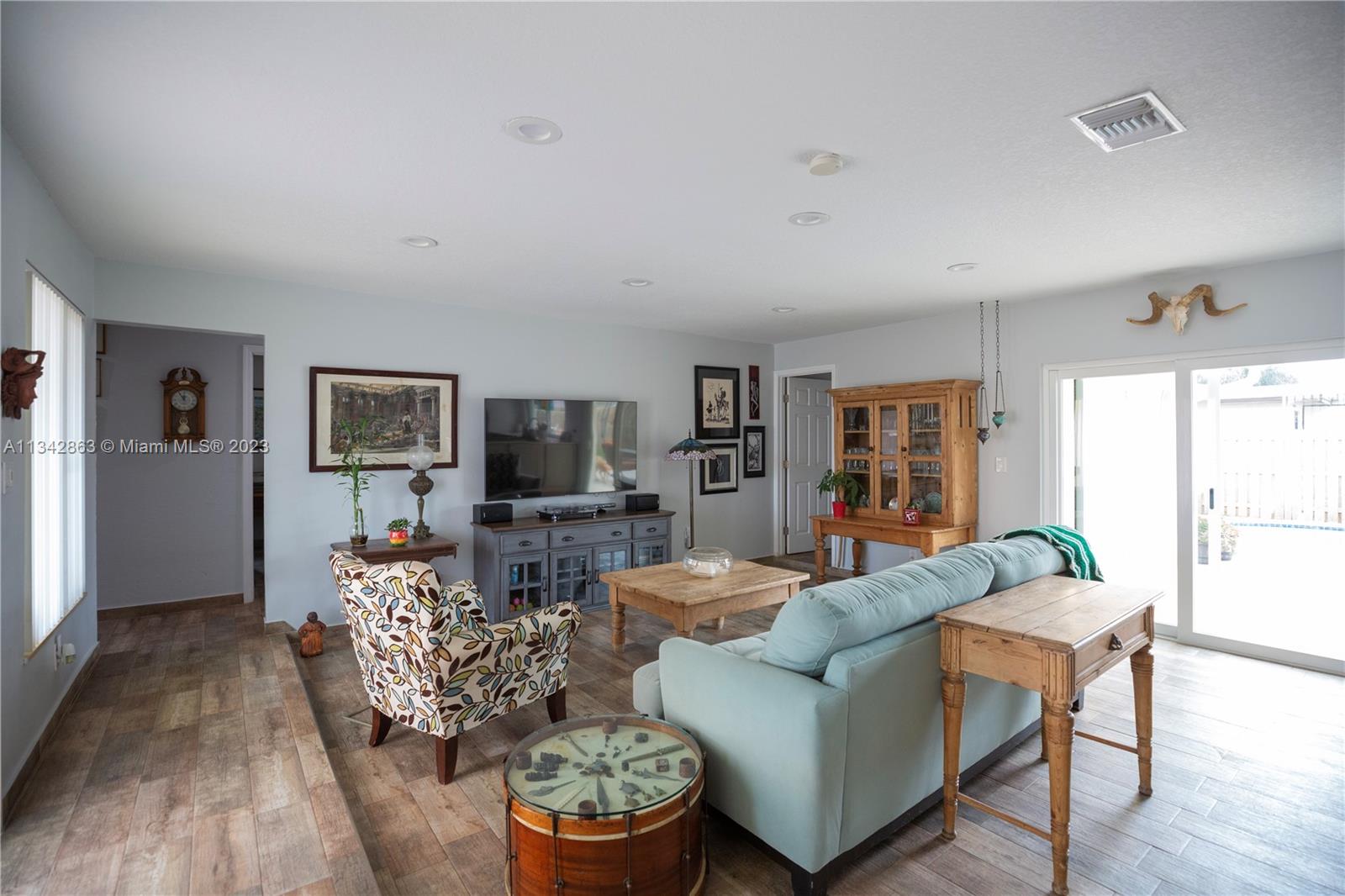 Totally updated home ceramic wood look flooring threw out the entire home. 3 bedroom plus den 2 bath home.Custom gourmet kitchen with gorgeous stone countertops all new stainless steel appliances oversized Island in the kitchen. Open concept living space with large Family room and dining room. Impact windows and doors. Remodeled bathrooms. Beautiful Pool with privacy fence and large back yard.