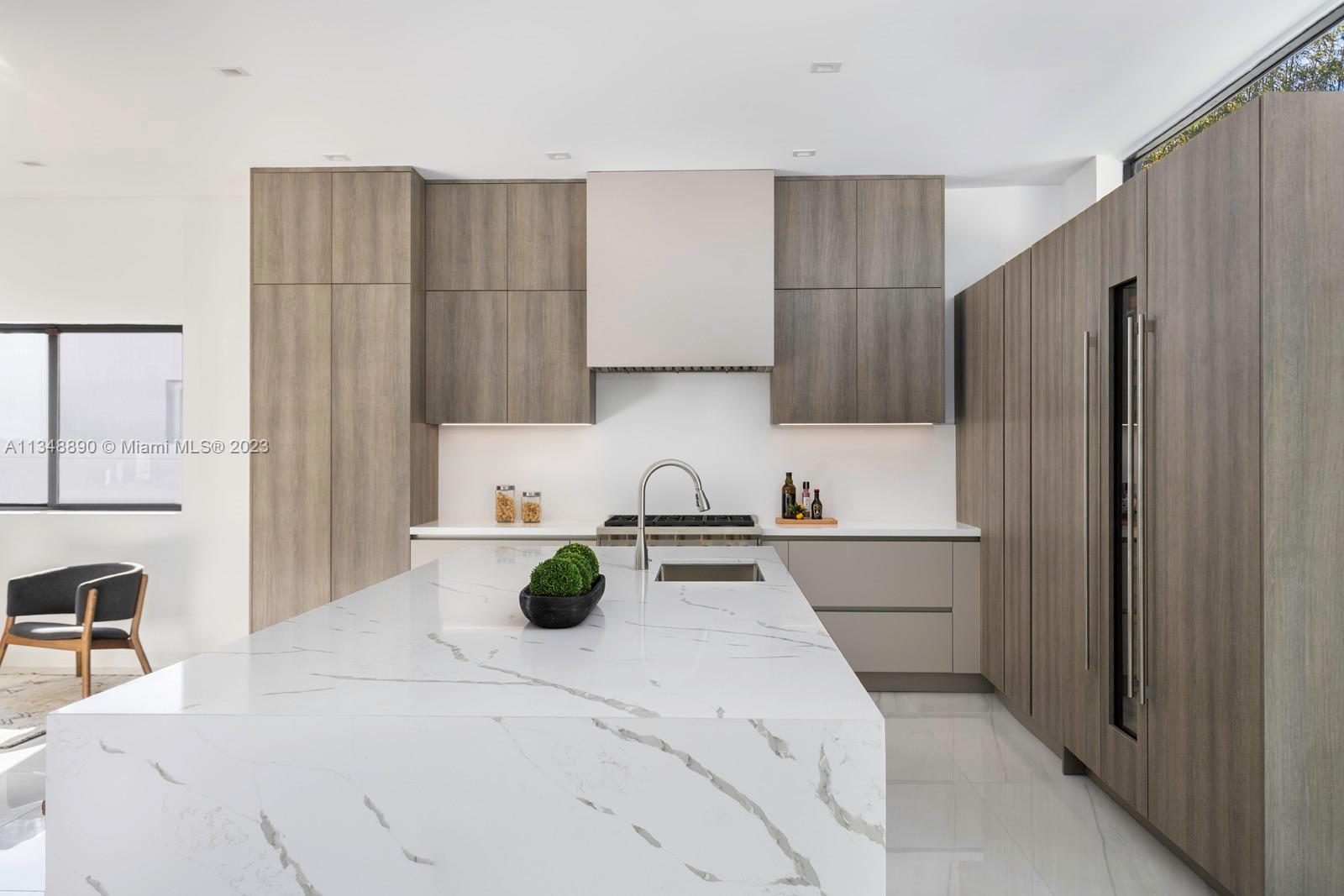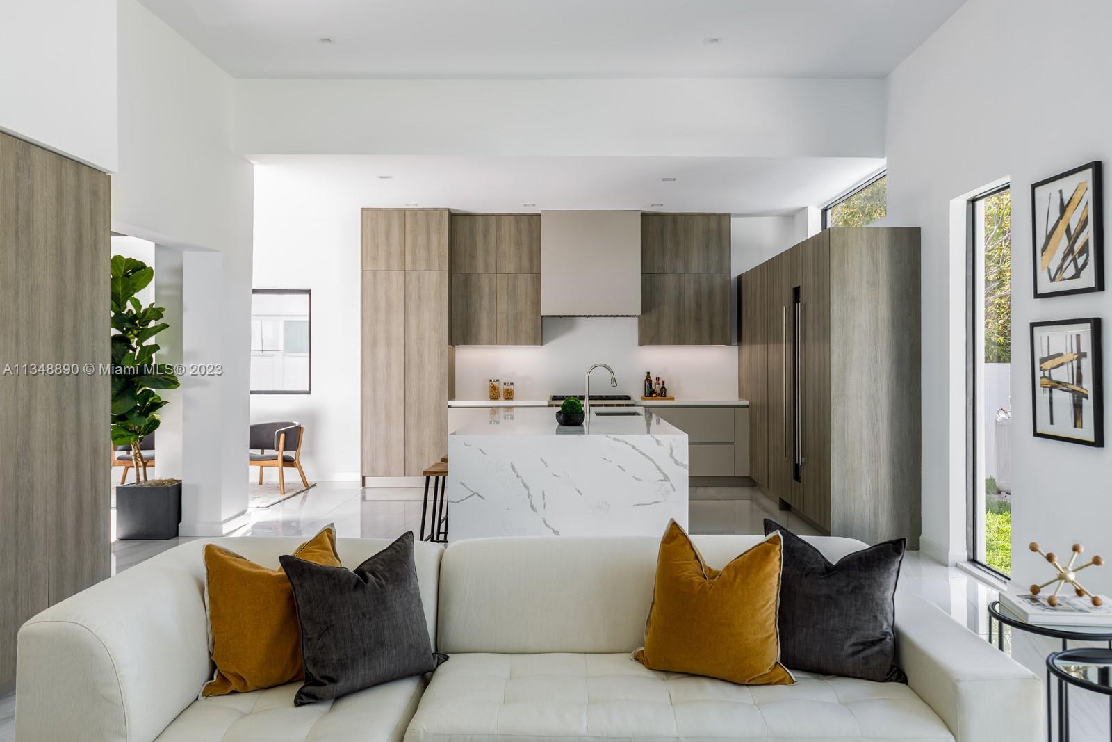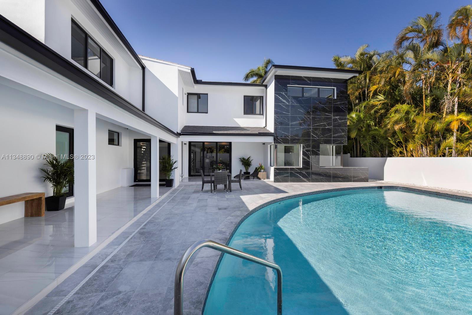 This brand-new custom construction in Miami Beach boasts a contemporary style and luxurious features. With 5 bedrooms, 5.5 bathrooms, and an open floor concept, it offers ample living space with 3,846 sq.ft. The European kitchen cabinetry and top-of-the-line Wolf and Subzero appliances add a touch of sophistication. Large windows throughout allow for plenty of natural light and a beautiful view. The oversized pool and gated property provide privacy and relaxation. Located near the beach, fine dining, parks, and popular shopping and recreation destinations, this property offers the ultimate in Miami Beach living.