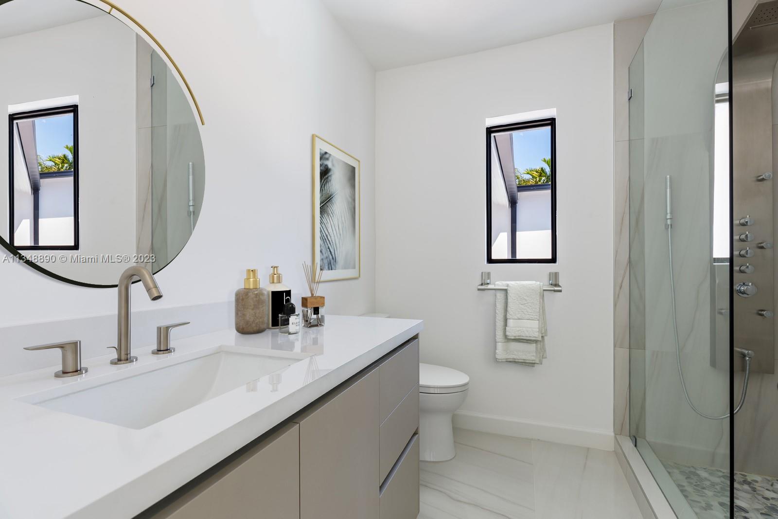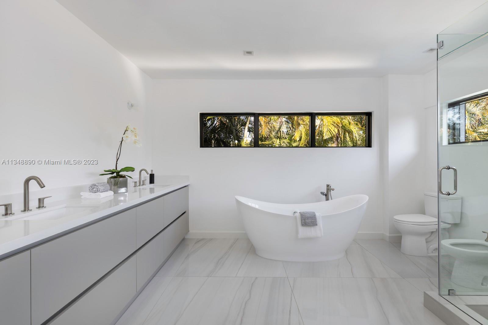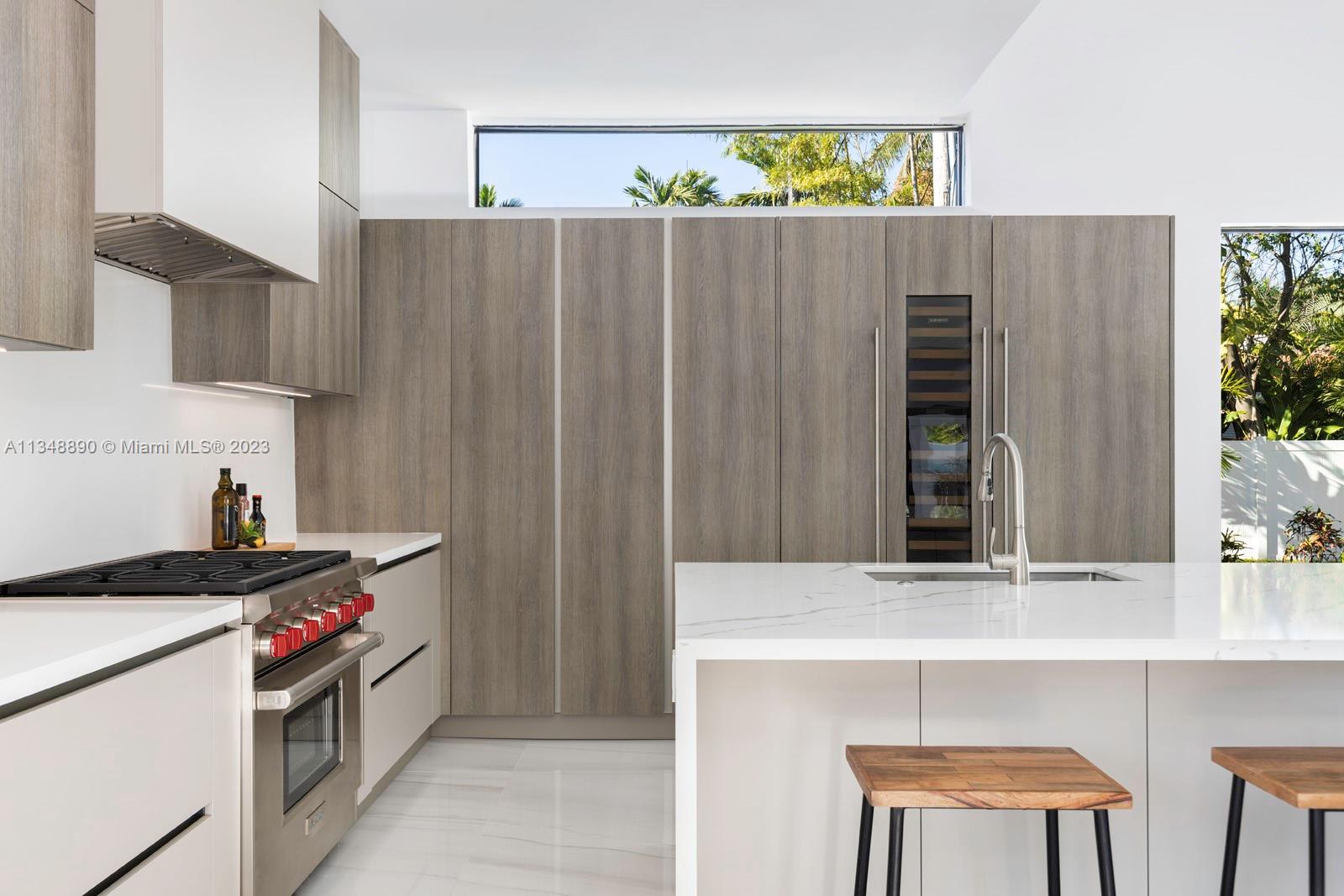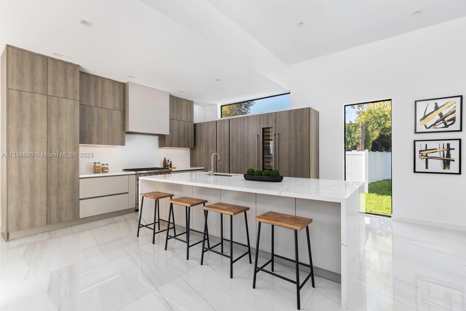 This brand-new custom construction in Miami Beach boasts a contemporary style and luxurious features. With 5 bedrooms, 5.5 bathrooms, and an open floor concept, it offers ample living space with 3,846 sq.ft. The European kitchen cabinetry and top-of-the-line Wolf and Subzero appliances add a touch of sophistication. Large windows throughout allow for plenty of natural light and a beautiful view. The oversized pool and gated property provide privacy and relaxation. Located near the beach, fine dining, parks, and popular shopping and recreation destinations, this property offers the ultimate in Miami Beach living.