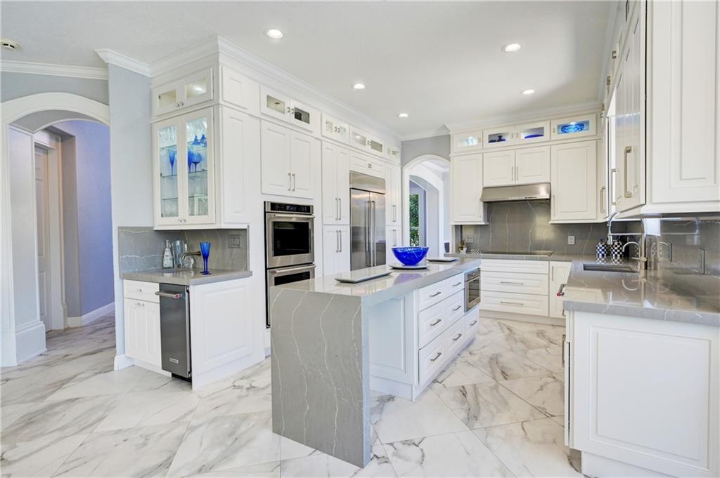 YOUR DREAM HOME IS HERE! This dramatic, waterfront pool home in Heron Bay is exquisitely designed, customized and ready for you. As you enter, you are greeted by soaring ceilings, light open spaces, a designer kitchen, custom shaker cabinetry to the ceiling, quartz counters, waterfall island and wet bar. High end lighting fixtures and decorator molding adorn the living space. Grand staircase to the 2nd level brings you to the oversized primary suite w/ intimate sitting area & private balcony. Primary bath has dual vanities, walk-in shower and jetted tub. Ensuite 2nd bedroom and Jack/Jill bathroom for 3rd and 4th bedroom. Tropical backyard retreat is equipped with a heated pool, hot tub, & lush landscaping. Storm protection, custom closets, high end lighting fixtures and so much more!
