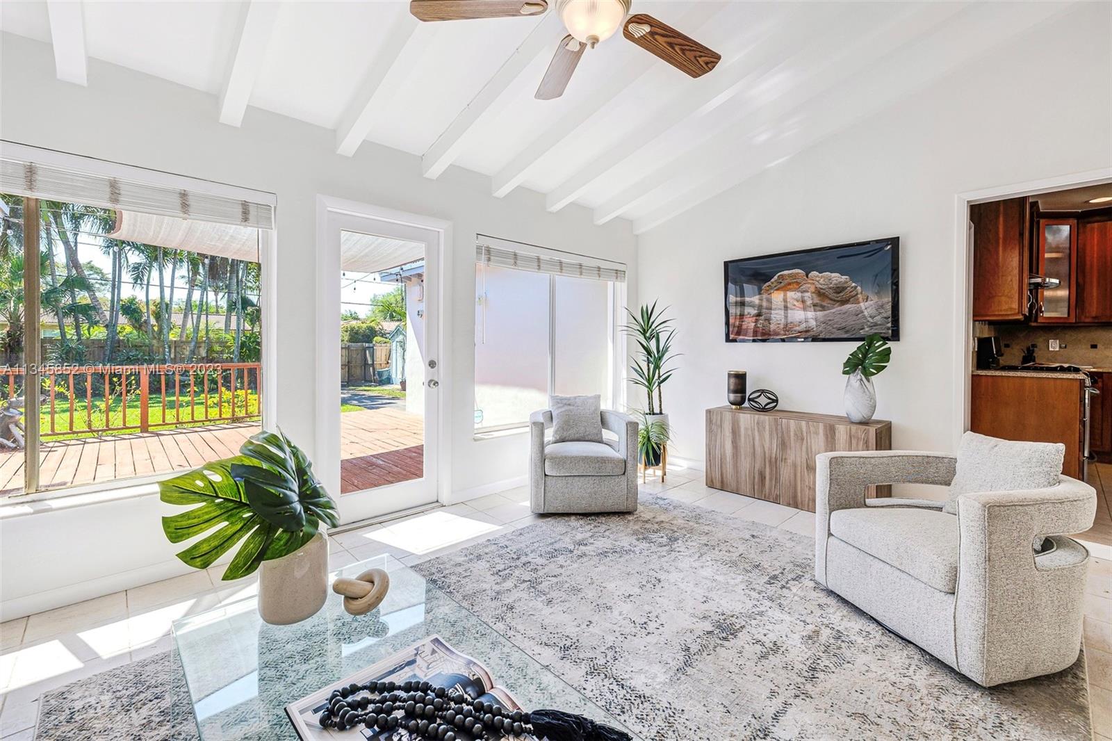 OPEN SAT SUN Spectacular Home on Lovely TreeLined Street in Miami Shores! Perfect Layout w Bright Light, Flowing Spaces. Gorgeous Vaulted Ceilings, Large Windows w/ Views of BEAUTIFUL LANDSCAPED YARD + AWESOME DECK. Large Master Suite, Walk-in + Excellent Master Bath. Pristine Condition, Details w Excellence. Large Garage w Gardener’s Bath (3rd Bath in Garage!), POSSIBLE 4TH BED. Excellent Kitchen, Solid Cherrywood Cabinets, Silestone Quartz Counters, Stainless Appliances, Gas Stove + New Wine Cooler. A Tropical Oasis, Heavy Duty Wood Fence, UTMOST PRIVACY! Freshly Painted Inside & Out, Tile Roof in Great Shape ('07), Newer AC (’18), New AC Ducts (’22), PERFECT ORIGINAL OAK FLOORS. A+ Location: Walk to DT Miami Shores Restaurants + Shops, 12 Mins to Wholefoods, 10 to Wynwood, 14 to Beach.