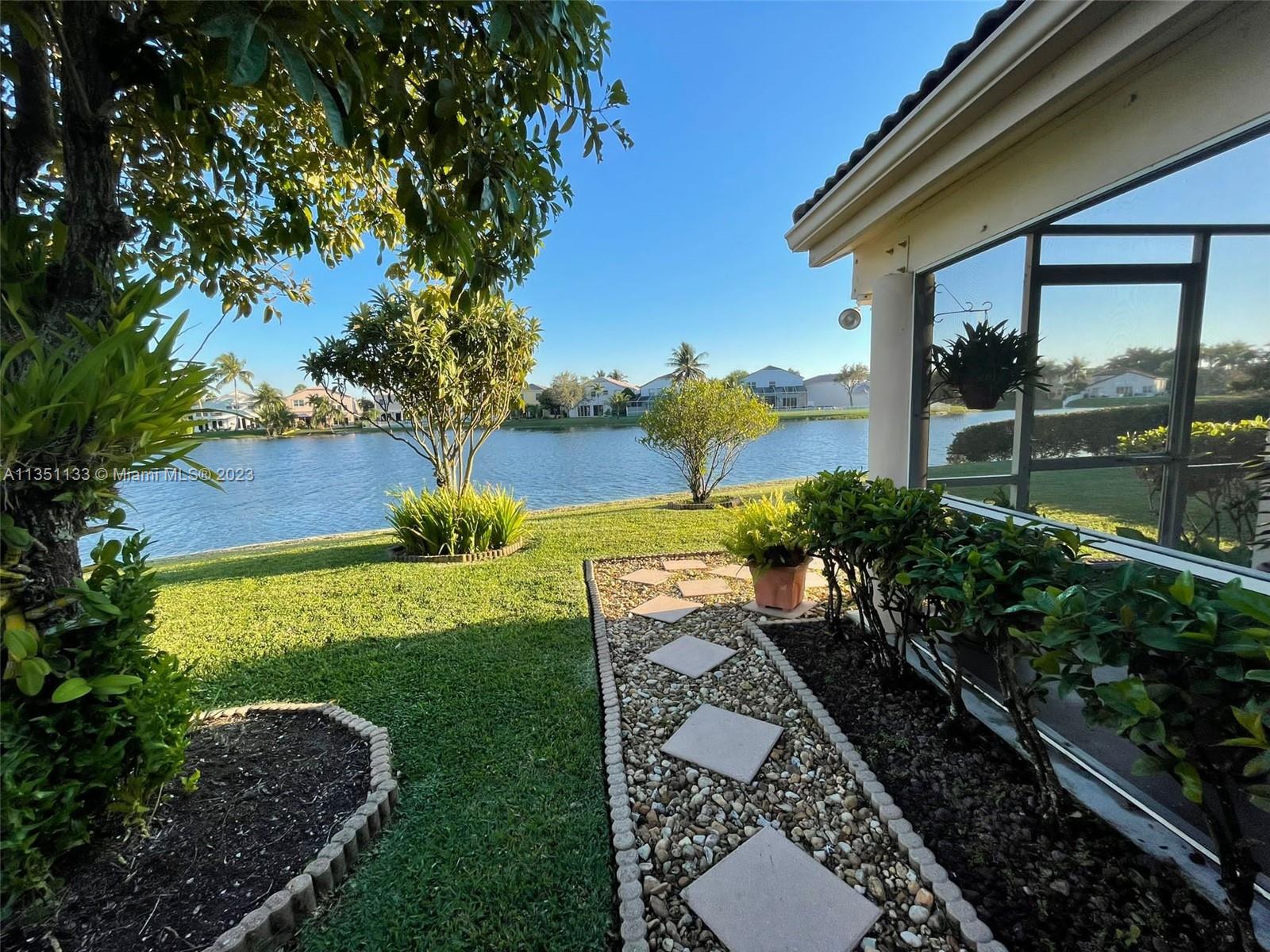 Bright and airy, beautifully maintained home with a panoramic lake view visible from every room. The huge screened patio faces south allowing you to enjoy sunrises or sunsets. Great for entertaining or just relaxing in comfort. Storm impact windows offer hurricane protection but also lower cooling and heating costs. Located in Cherry Bay community in Towngate. Community is kid and pet-friendly and boasts a hardworking HOA and friendly neighbors who take pride in their surroundings. A highly rated elementary school, playground and community pool are all within walking distance. Lake-fed sprinkler system throughout the community makes for happy gardens and low water bills. Easy access to I 75, with shopping, hospitals and restaurants just minutes away. Towngate HOA additional $139.