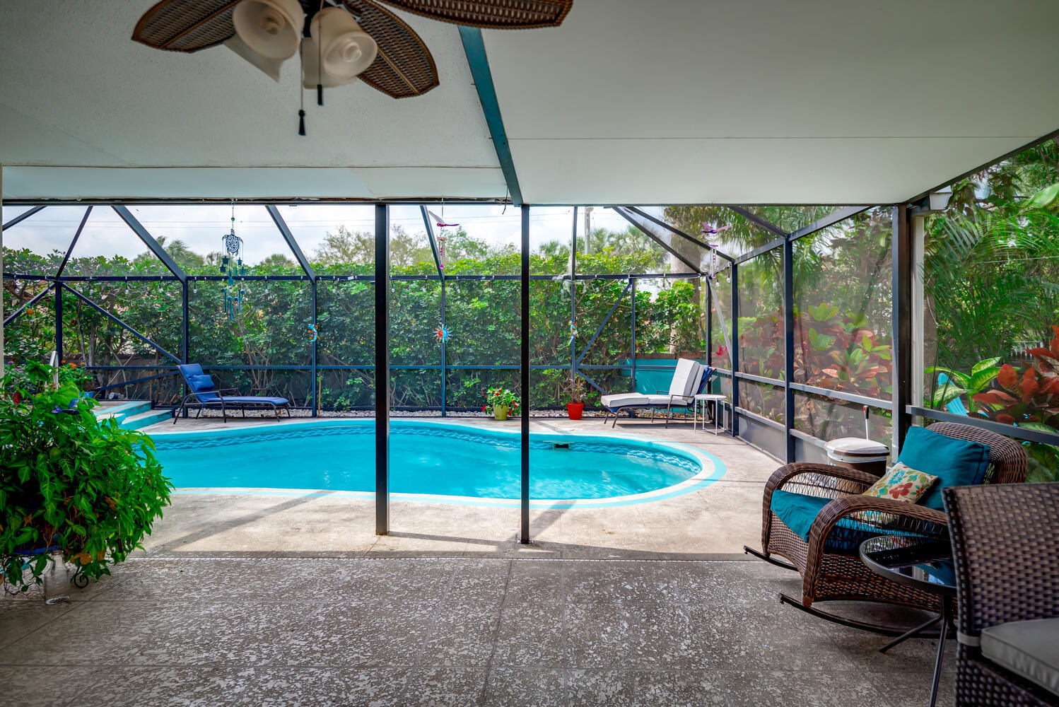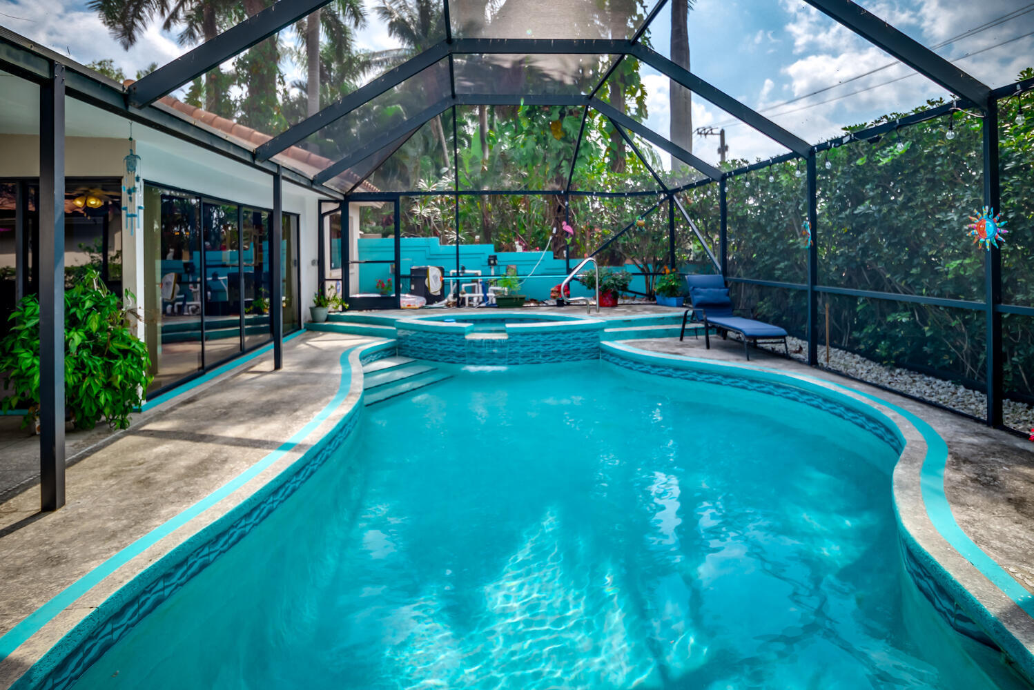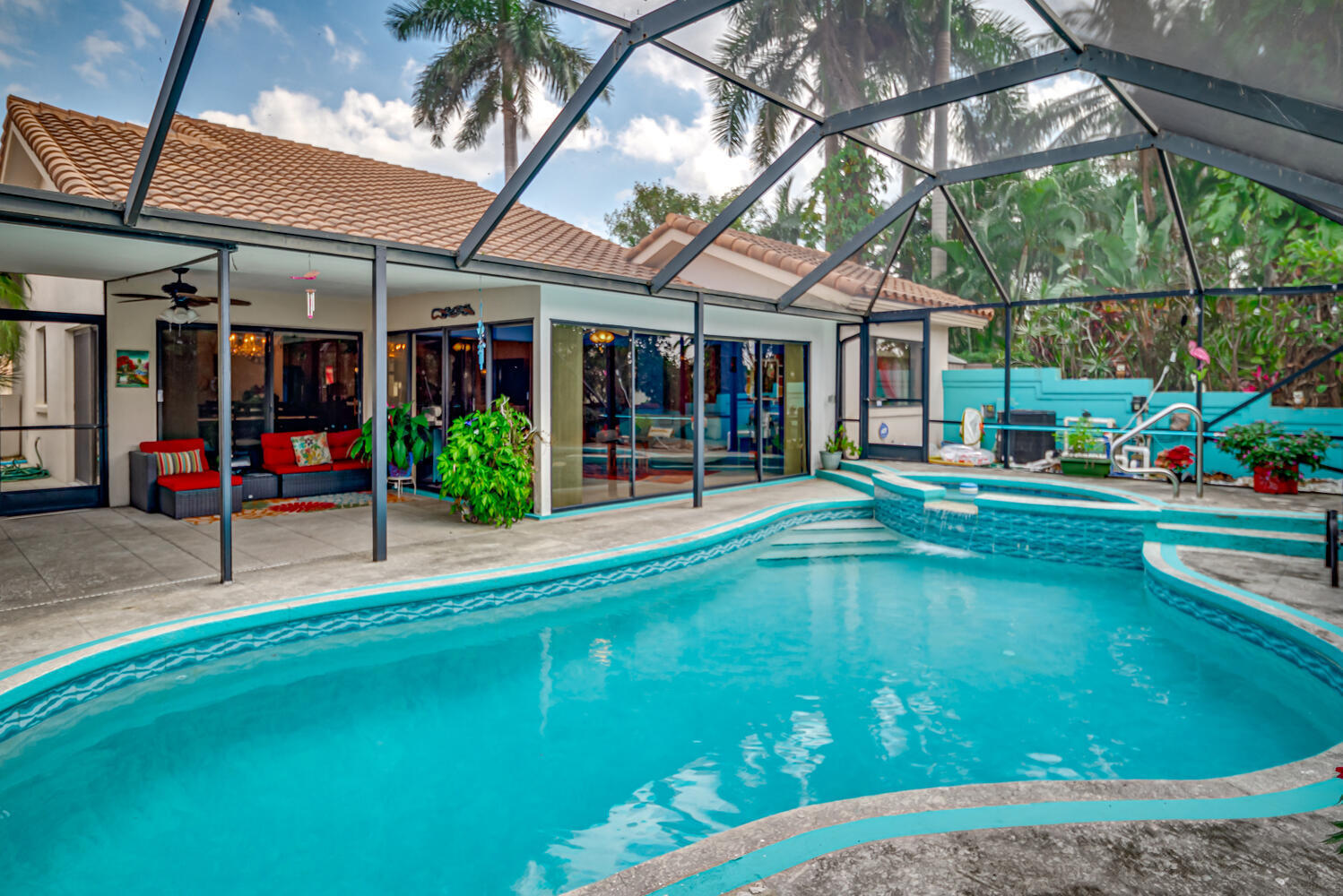 Beautiful 3 bedroom plus loft, 2 bath Pool house in cul-de-sac in prestigious gated community of Bear Lakes Estates. The spacious home features over 2,000 square feet of living area plus a beautiful backyard with screened in pool surrounded by palm trees, mango, avocado & banana trees. Newer kitchen with wood cabinetry, granite counters, glass tile backsplash and stainless appliances. The living room has vaulted ceilings and wood floors. Glass sliders open to the family room and also out to the pool deck and covered patio. Fully Screened in pool area with newer roof and Air Conditioner. Great location with many amenities included like Cable, 3 Swimming Pools, 3 different parks, Tennis, Pickle Ball, Basketball,Exercise Trails and so much more. Near I-95,Tanger outlets, restaurants & beach