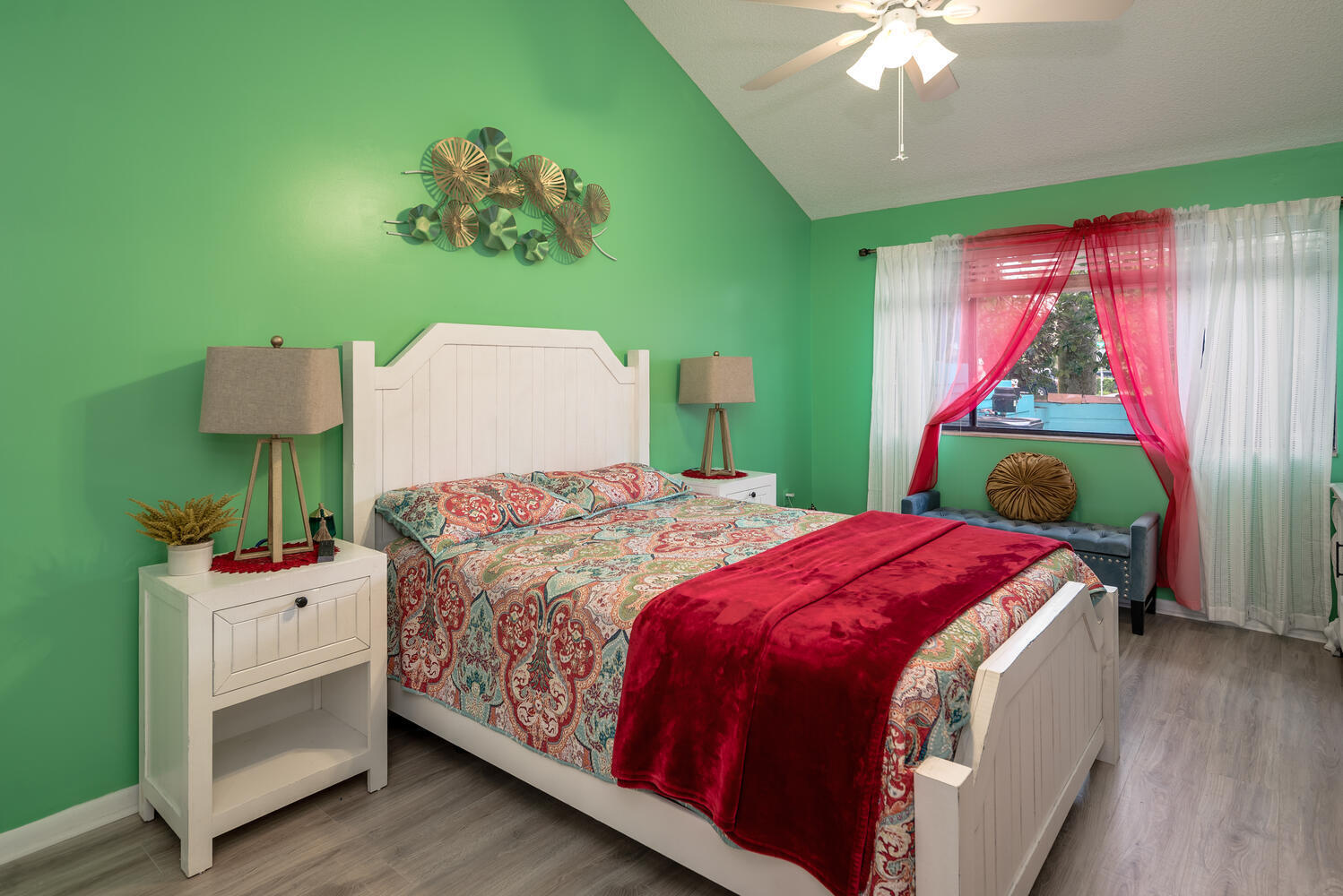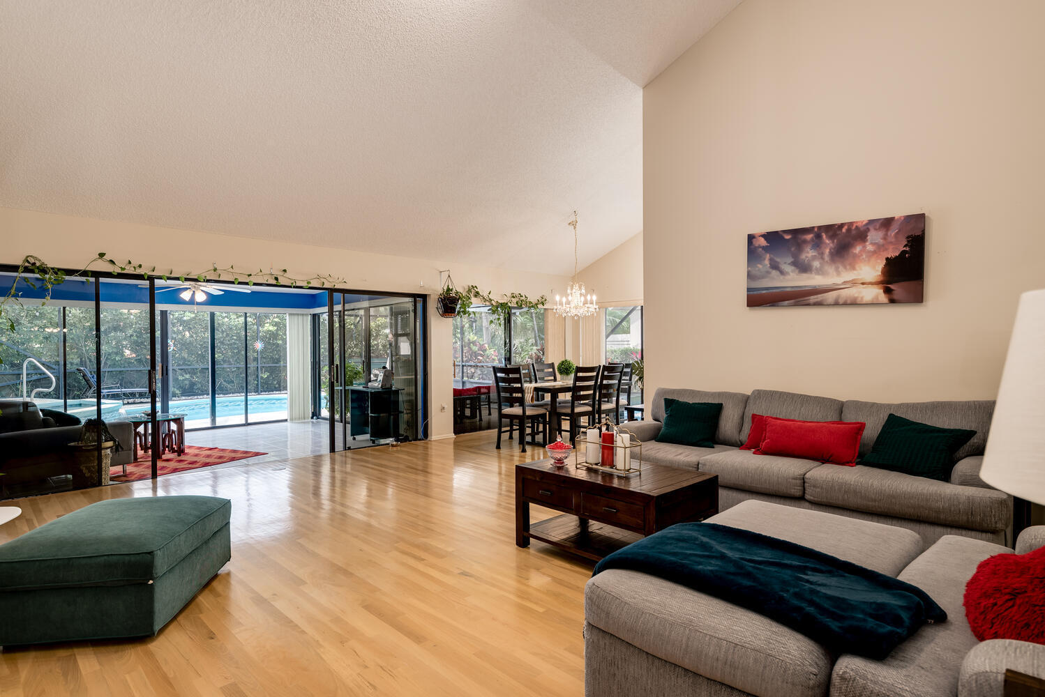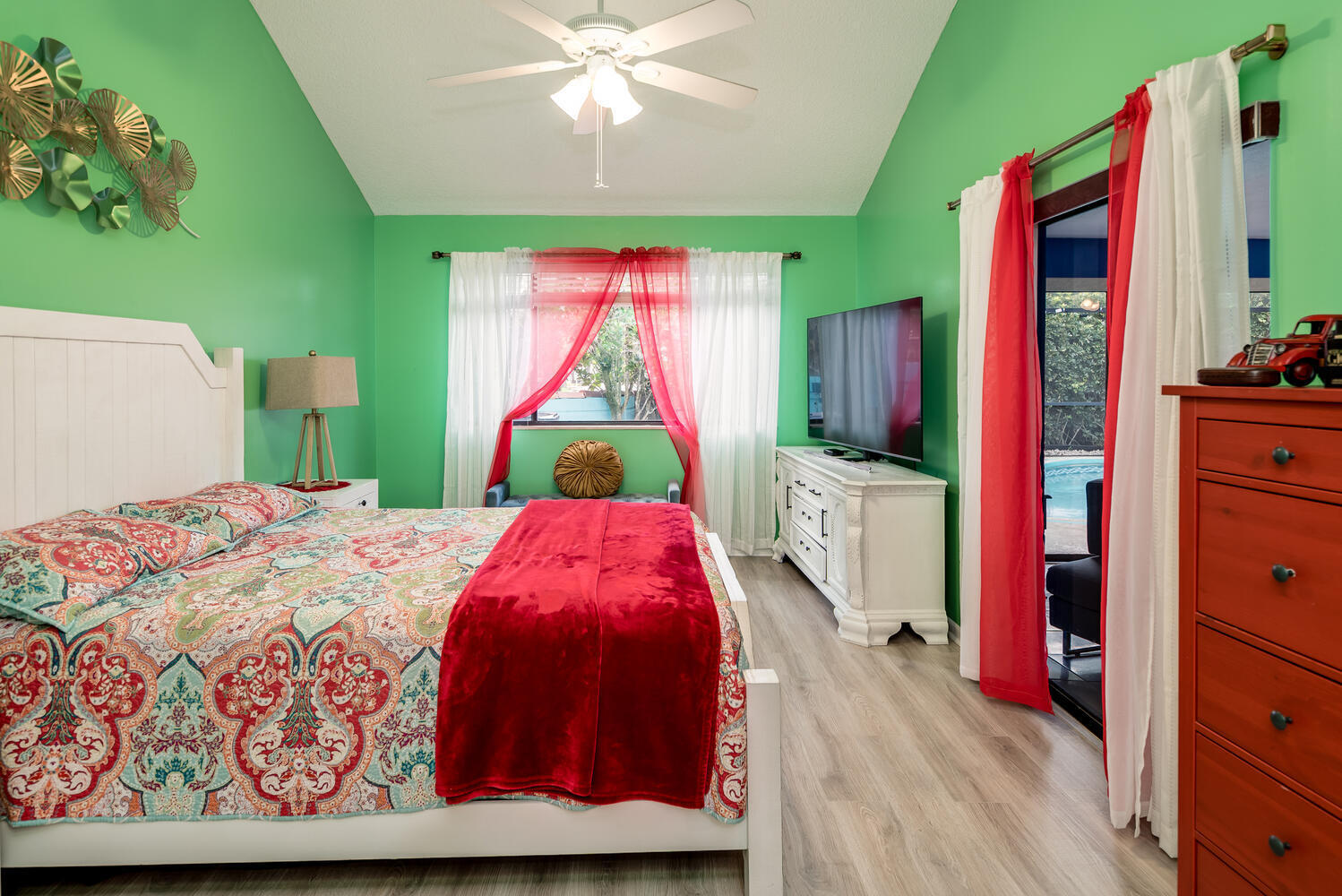 Beautiful 3 bedroom plus loft, 2 bath Pool house in cul-de-sac in prestigious gated community of Bear Lakes Estates. The spacious home features over 2,000 square feet of living area plus a beautiful backyard with screened in pool surrounded by palm trees, mango, avocado & banana trees. Newer kitchen with wood cabinetry, granite counters, glass tile backsplash and stainless appliances. The living room has vaulted ceilings and wood floors. Glass sliders open to the family room and also out to the pool deck and covered patio. Fully Screened in pool area with newer roof and Air Conditioner. Great location with many amenities included like Cable, 3 Swimming Pools, 3 different parks, Tennis, Pickle Ball, Basketball,Exercise Trails and so much more. Near I-95,Tanger outlets, restaurants & beach