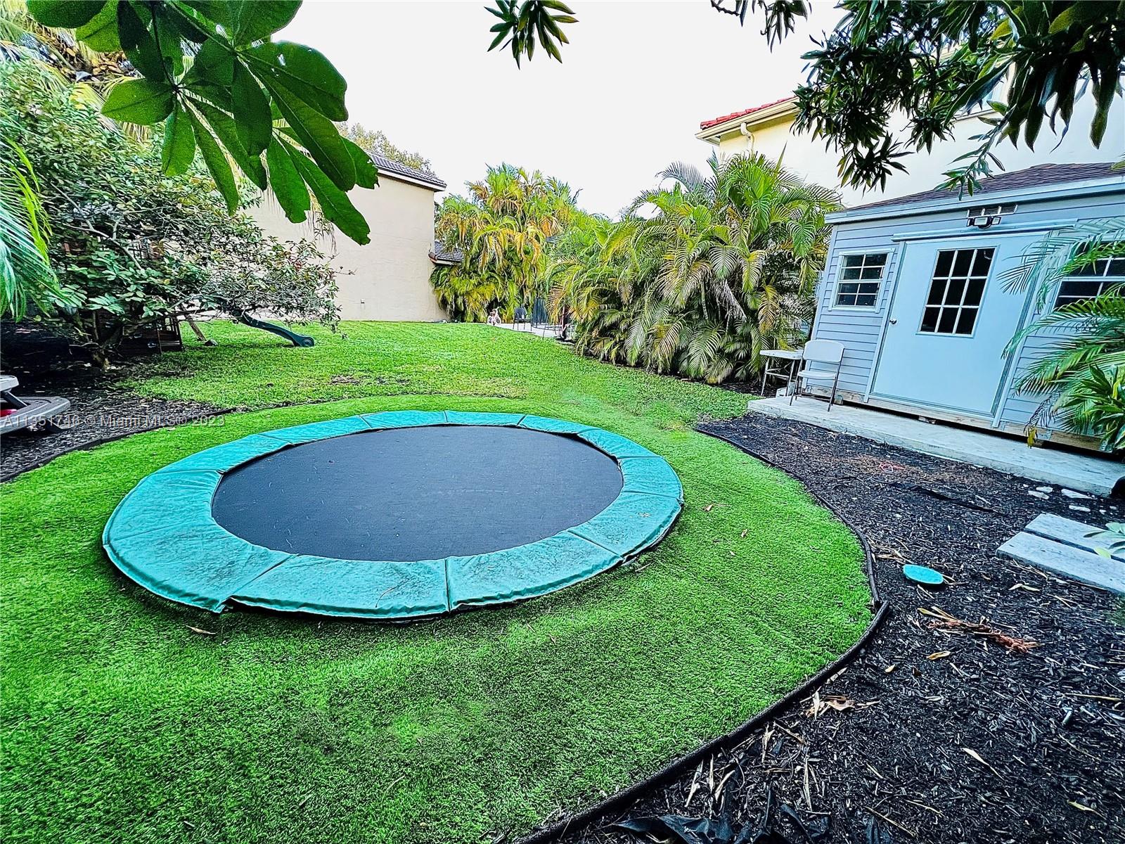 Beautiful 4-bedroom 2.5-bathroom two story home. Park in the newly insulated garage with A/C or one of the 6 spots in the driveway. Enter thru the brand new gorgeous double doors into the sitting, living & dining area with natural light & plantation shutters on all the windows. Tile floors throughout the first floor, kitchen with SS appliances, gas range, & granite countertops. 4 Bedrooms upstairs, very spacious master with built-in office space, leading into the walk-in closet (w&d inside) & updated primary bath with dual sinks & vanity. Enjoy your the backyard hosting a bbq in the brand-new outdoor kitchen, overlooking the lake & enjoying a dip in the salt water, heated pool. Have some fun jumping on the in-ground trampoline! & don’t forget to get creative in the SheShed/ManCave.