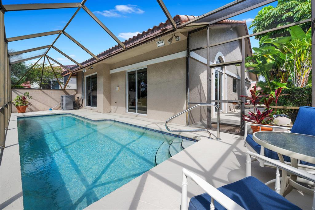 The opportunity you have been waiting for in a prime Central Boca location. This Beautiful 2 bedroom, 2 bath POOL home is located in Boca Pointe's desirable, Villa Stel! Upon entry into the home, you'll note the beautiful vaulted ceilings that allow a lot of natural light, a perfect split bedroom floor plan, & a formal dinning room just off the kitchen that could easily be converted to den/office. Other updates include: brand new vinyl flooring throughout, freshly painted interior & full hurricane impact protection. You have the luxury of enjoying your own pool along with a private wrap- around patio that is beautifully manicured with landscaping or you can socialize at the community pool which is steps away!