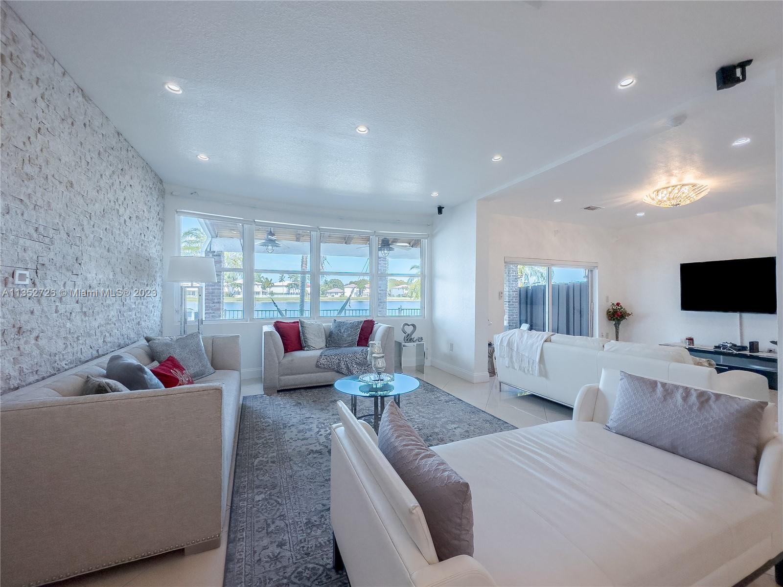 Stunning lakefront two-story home located in the highly Doral Isles community. This modern and elegant property boasts breathtaking views of the tranquil lake from every angle. As you enter, you'll be greeted by an open living area that seamlessly flows into a sleek and stylish kitchen, perfect for entertaining guests or enjoying family dinners. The second floor features spacious bedrooms with walking closets, offering plenty of storage space for all your needs. Step outside to your very own private oasis complete with a BBQ area, ideal for hosting summer gatherings or simply relaxing while taking in the serene surroundings. This home truly has it all - from its picturesque location to its contemporary design and luxurious finishes throughout.