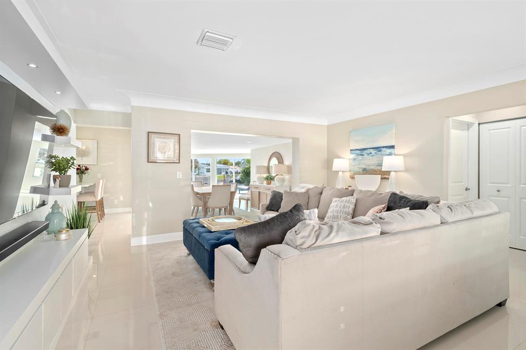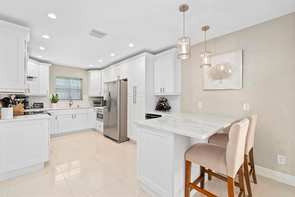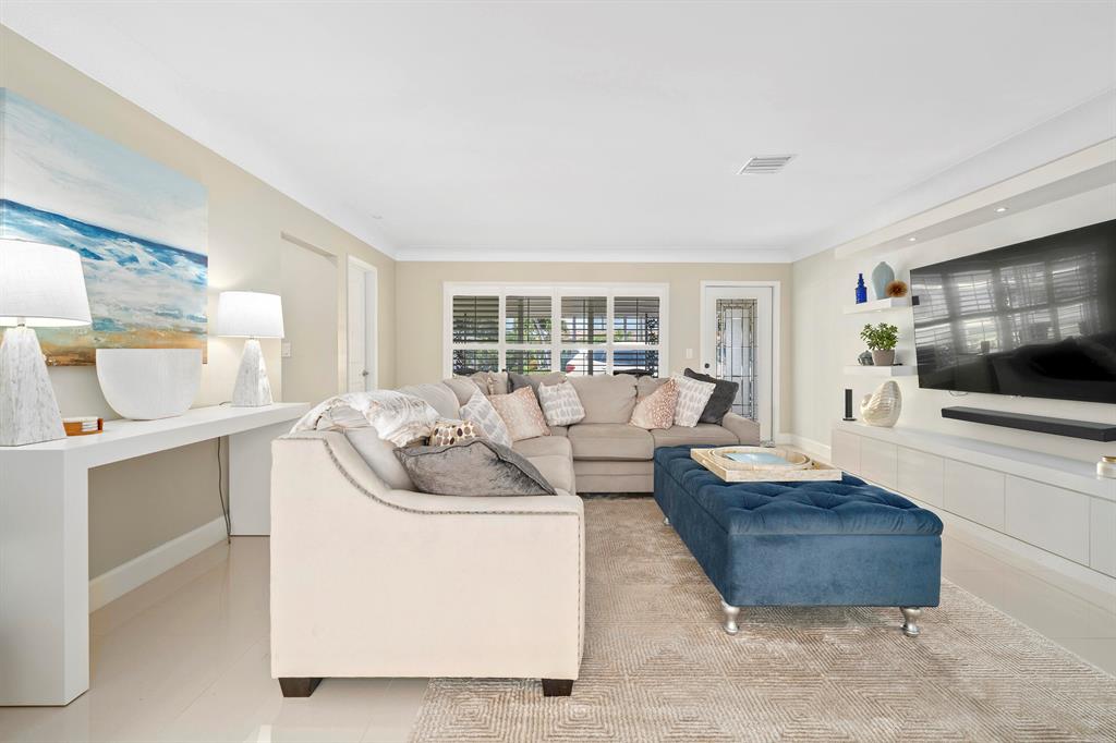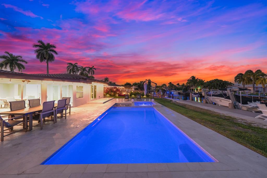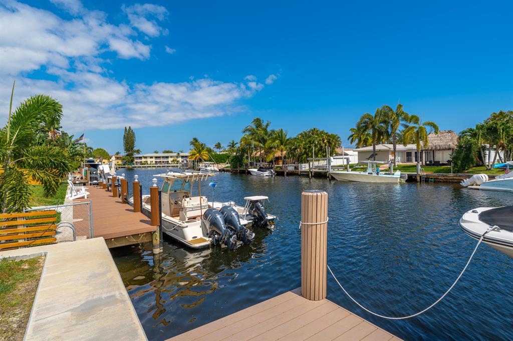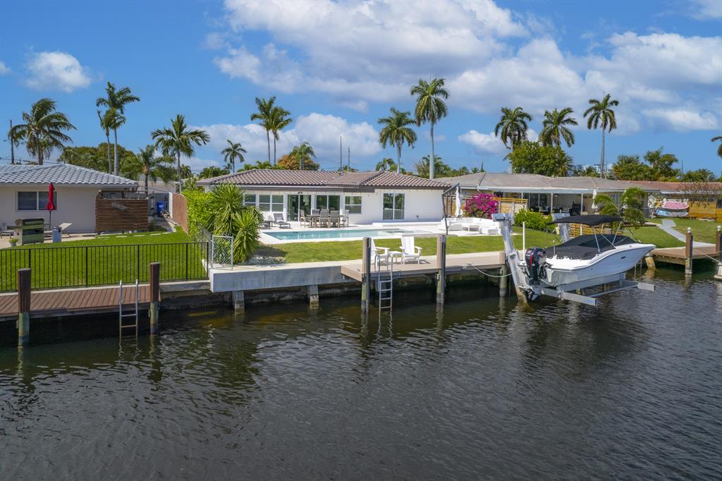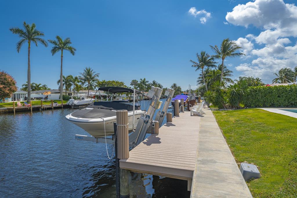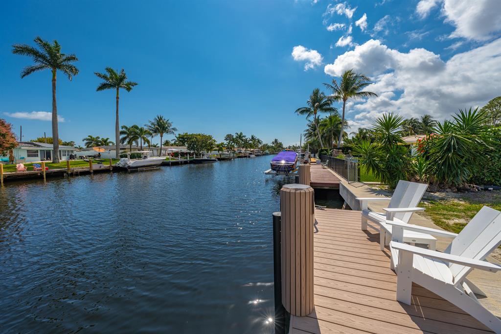 Experience the ultimate luxury waterfront living at this stunning 3-bedroom, 2.5-bathroom Pompano Beach Boater's Paradise. Perfect for avid boaters, this home is a true oasis with a 70' brand new raised sea wall, a new 40' composite dock, and a new 13,000 lb. boat lift, providing easy access to Florida's serene waterways. As you approach this beautiful residence, fresh landscaping and a paver circular driveway welcome you in style. The fully updated interiors exude modern elegance, boasting high-end finishes, large porcelain floor tiles, and neutral color schemes. The gourmet kitchen features exquisite quartz countertops, top-of-the-line stainless steel appliances, a wine fridge, and a breakfast bar that opens into the dining area, creating an inviting and intimate space for entertaining
