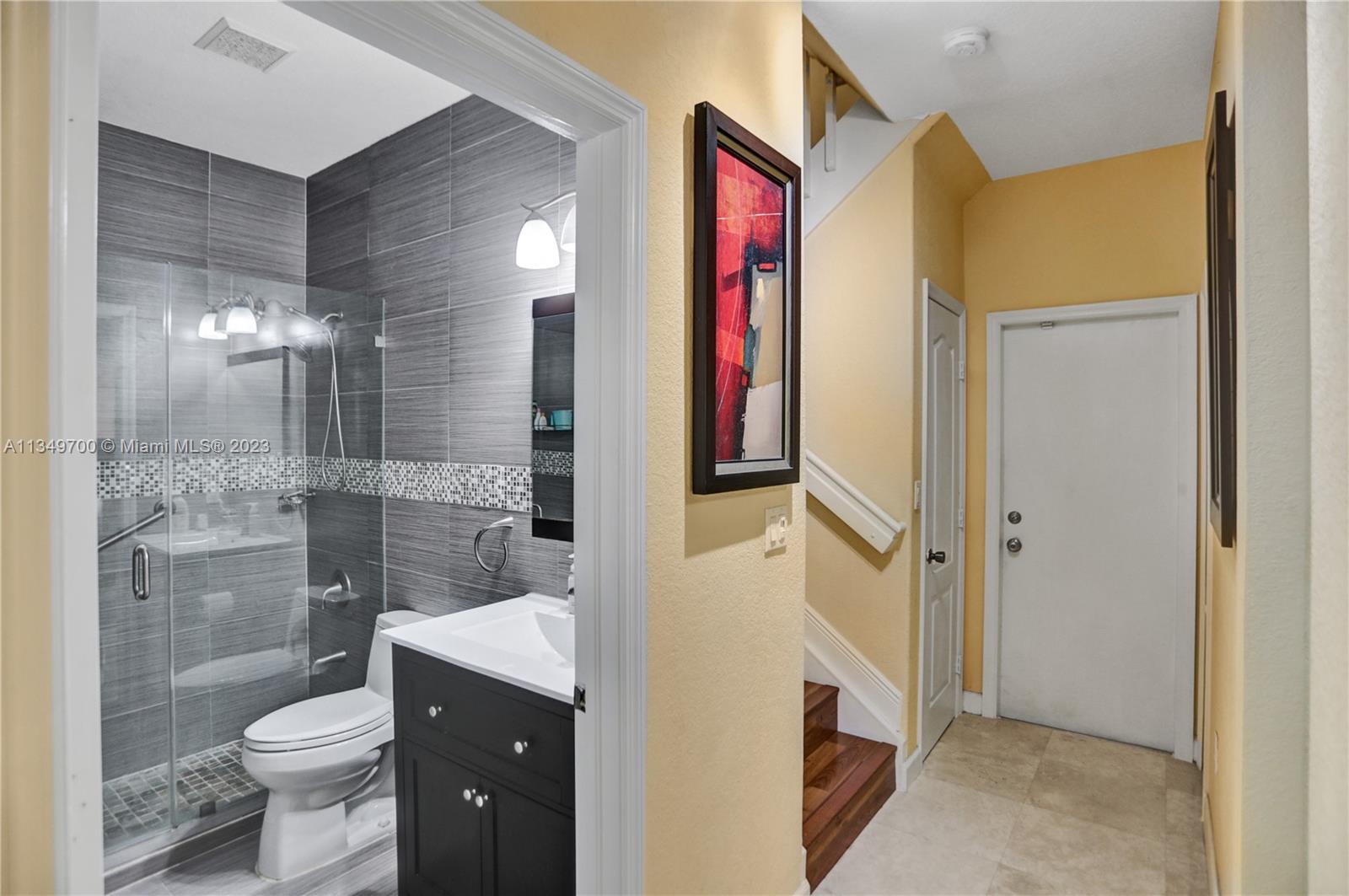 Bright and spacious 2-car garage townhome in the gated community of Polynesian Island of Doral features 4 bedrooms, 3 full baths, with a 1/1 downstairs (1st. floor bath upgrade). Beautiful kitchen w/SS appliances, spacious living & dining room. Large master bedroom with his & hers walk-in closets, dual sinks, hot tub & separate shower. Travertine flooring throughout the 1st floor. Washer & dryer upstairs. Accordion hurricane shutters, upgraded closets and upgraded garage flooring. Resort style community clubhouse (local & master) with pools, sauna, gym and tennis courts. Close to Doral Legacy Park with baseball, indoor and outdoor basketball and beach volleyball courts. PRIME LOCATION! Close to the turnpike, restaurants, shopping centers, malls, parks, schools and Miami Airport.