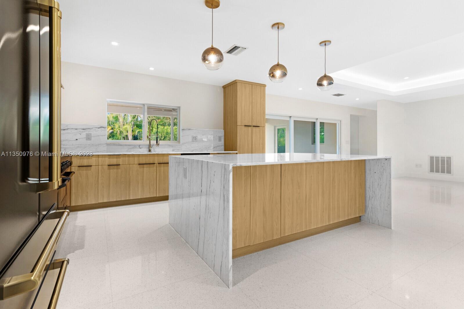 Florida living at its finest with custom curated home by local designer builder in desirable area of Miami Shores. Entry Foyer opens to expansive living overlooking lush backyard & pool. Two wings separate the home with 2 VIP suites equal in size to create 4 bedrooms, 3 full bathrooms & 1 half bath. The primary overlooks pool with private access, 2 walk-in closets, along with 2-person shower & soaking tub. With design in mind, the kitchen delivers custom cabinetry with oversized island that allows seating for more than 6 and commercial grade appliances including gas stove with dual oven. Plus, separate laundry room off kitchen. Retreat outdoors to 300 sq ft covered patio, 15x26 pool with water feature & green space. Rear parking for 2 vehicles. All new with permits.