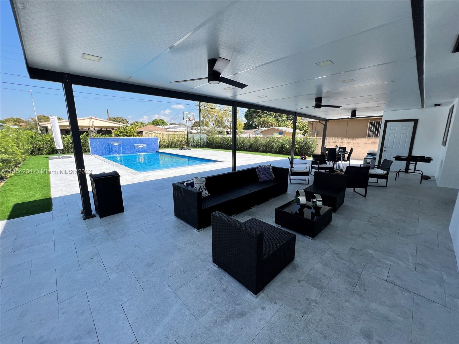 Look no further! Completely high end remodel 4 Bedrooms with 3 Bath-Pool Home! Everything remodel within the past 2 years. High Impact Windows, Porcelain Tile, Acrylic Kitchen Cabinets with Quartz Counter Tops. Insulated patio terrace with marble patio pavers and artificial turf.