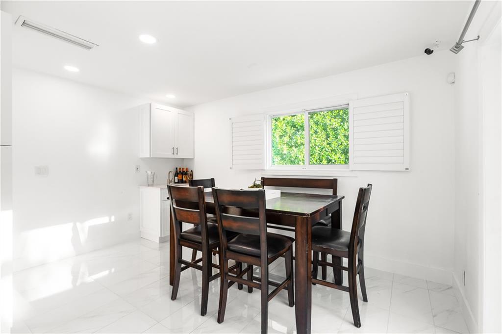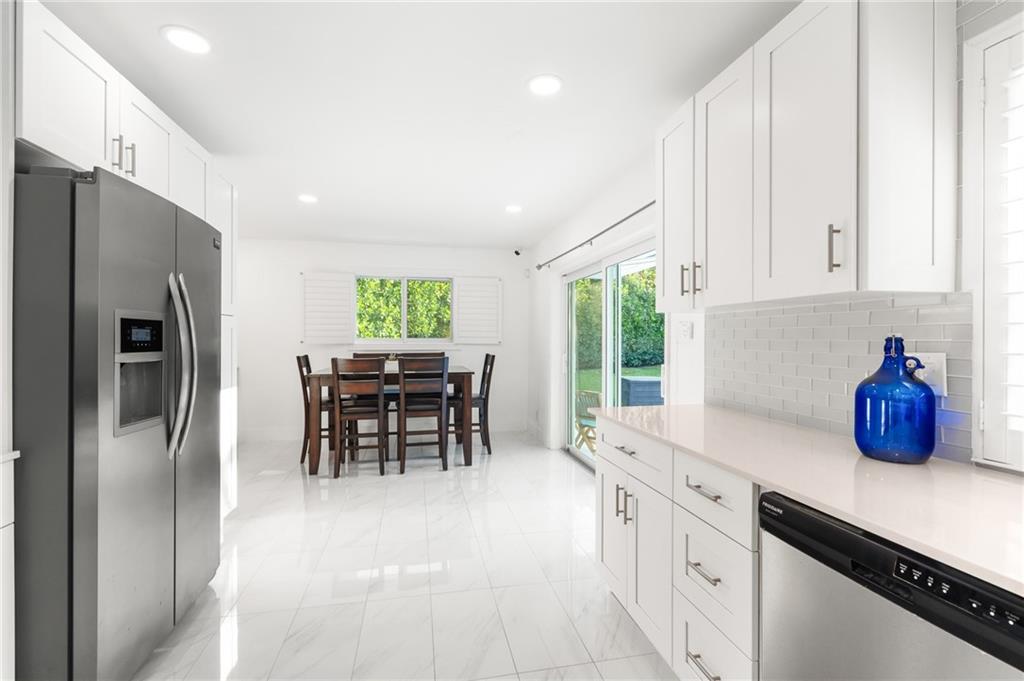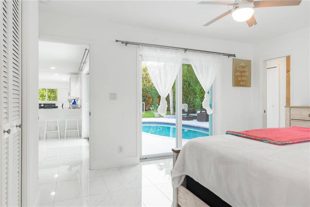 This renovated 2/2 single family pool home is located on a quiet residential street in the sought after neighborhood of Imperial Point. Walking in, you're bathed in sunlight bouncing off the polished porcelain floors. Updated white kitchen cabinets and quartz countertops. Dining area with wet bar right off the kitchen. Newer AC. 1 year old tankless water heater. 9 security cameras. Impact windows and doors throughout. Saltwater pool with high hedges gives total privacy with an oasis feel. An automatic sprinkler system using well water. Room for an RV or a boat in the north yard. Two car garage. Storage shed. Situated on one of the largest corner lots in the area (11,067 sq ft). Close proximity to Pinecrest School, Westminster Academy. Easy access to I95 and 5 min. drive to the beach.