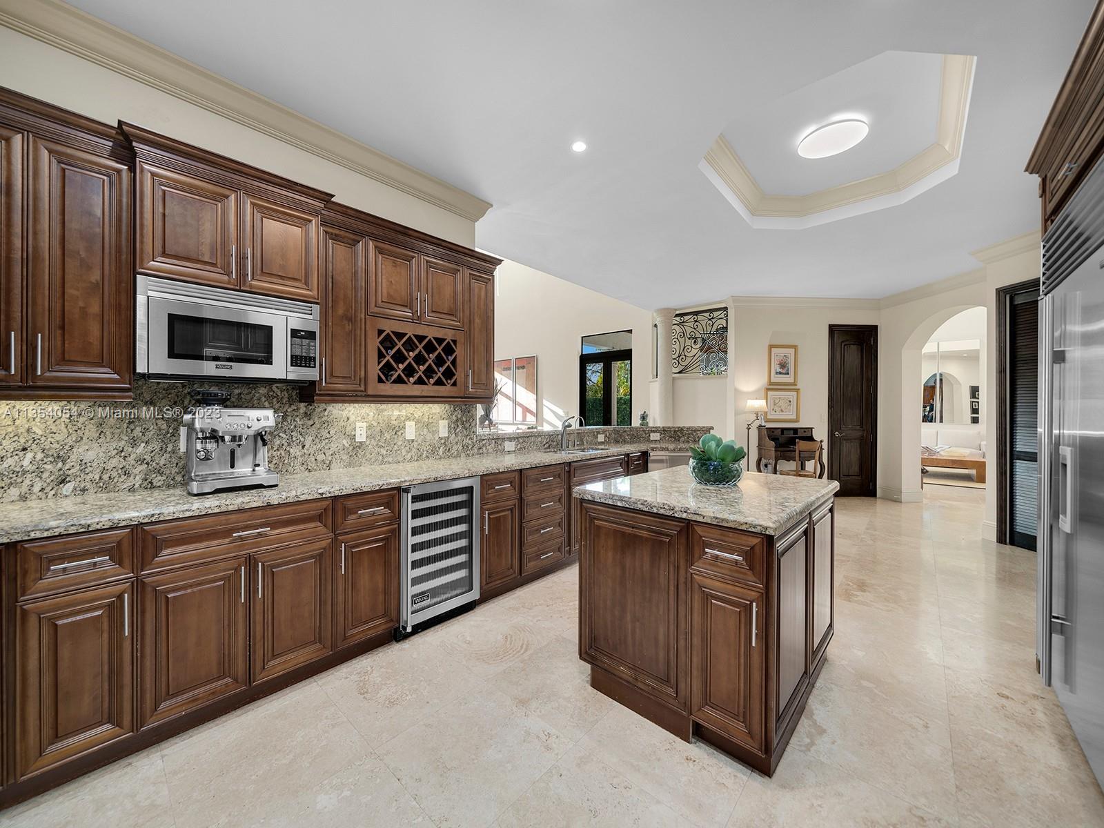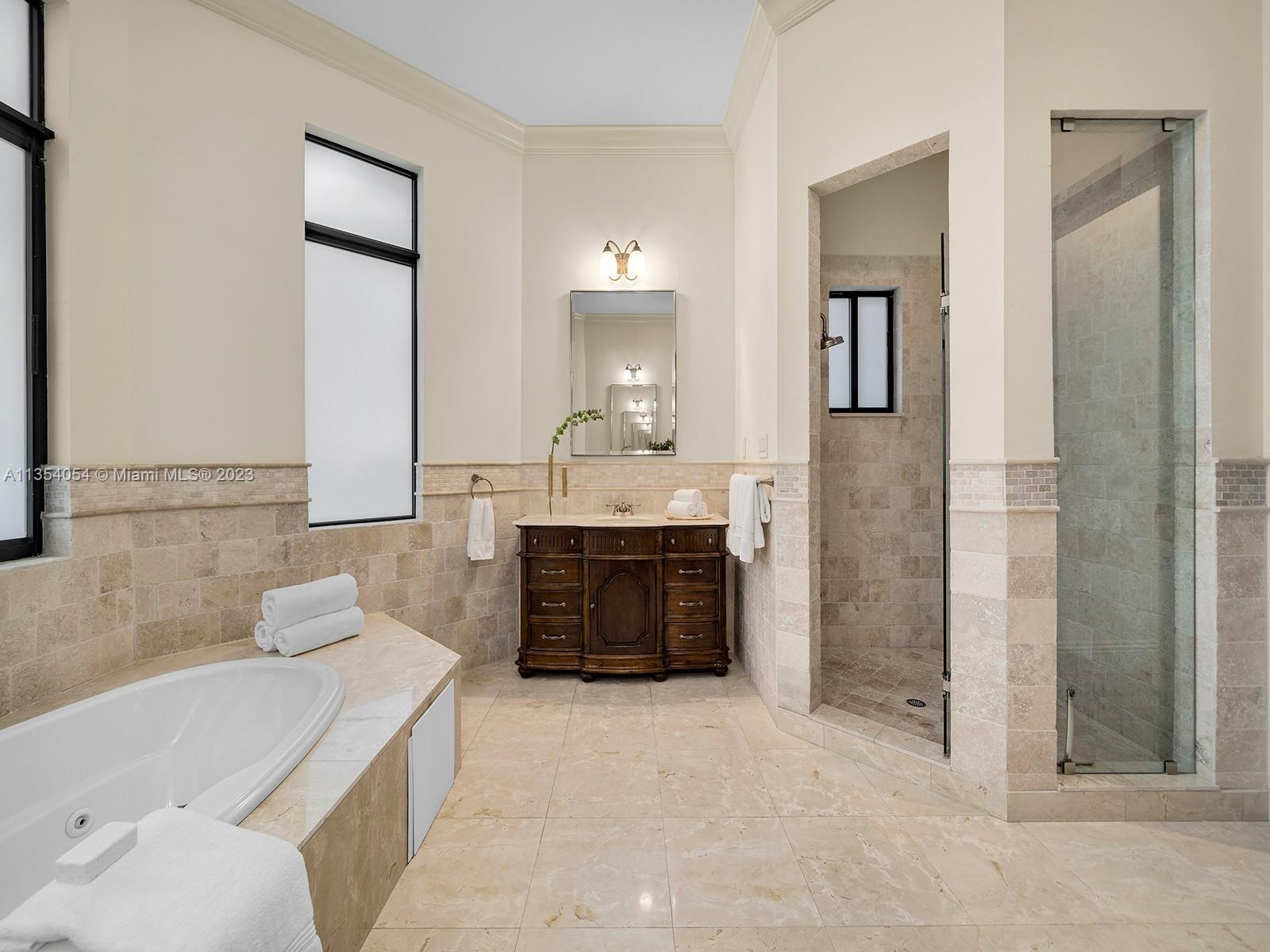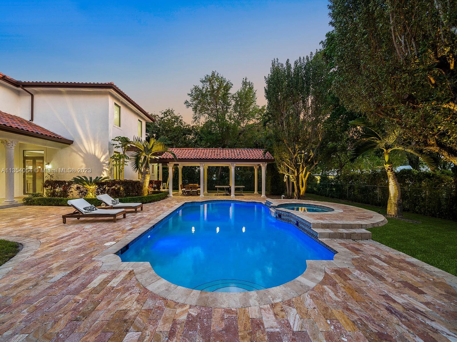 This Magnificent two-story estate in N Pinecrest welcomes you w/lush landscaping & a private gate entrance w/ charming courtyd that sets the tone for this exceptional property. Upon entering, you'll be awed by the soaring ceilings, grand foyer, & sweeping formal living rm. Spacious gourmet kitchen elegantly overlooks the expansive family rm, accentuated by its double height ceilings, complete w/top-of-the-line Viking/SubZero appl & a walk-in pantry. Expansive living areas create the perfect space for entertaining guests, w/ a home office & a second family rm upstairs w/wet bar. The primary suite is a true sanctuary w/spa-like bath, sitting area & access to backyd. Discover outdr living w/covered terraces, large pool, spa & ample grounds. Add’l features: imp win/drs, generator & 3-car gar.