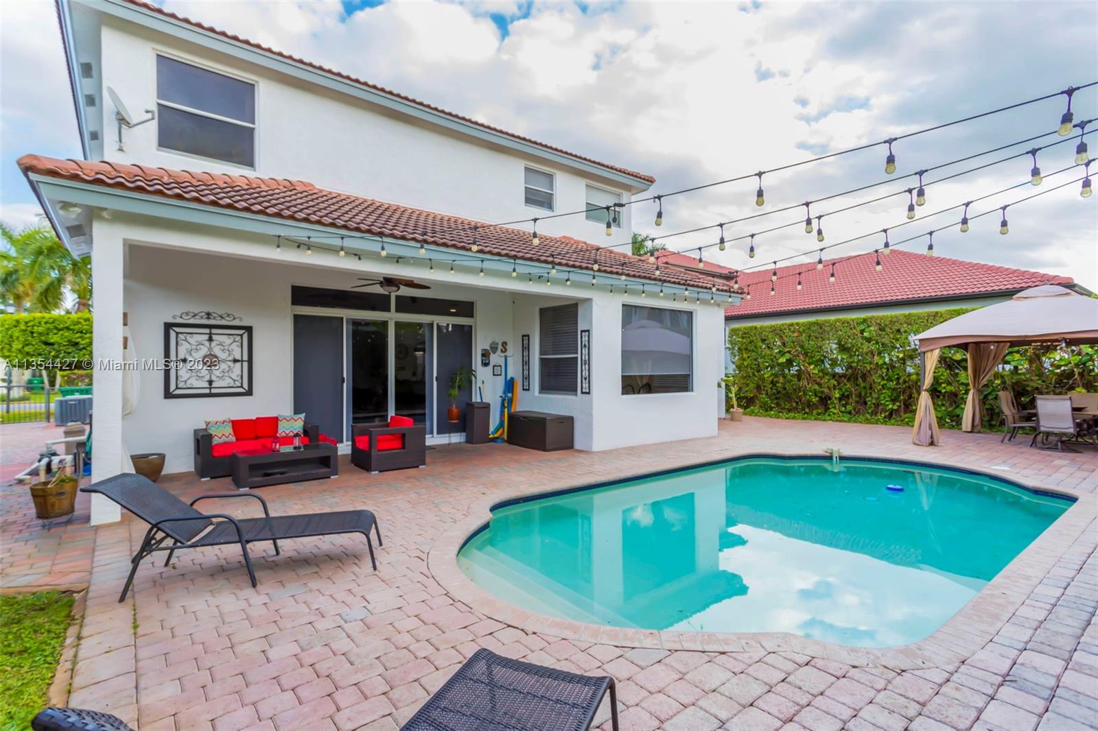 GORGEOUS TWO STORY POOL HOME IN THE RESORT STYLE COMMUNITY OF VIZCAYA - SUNSET LAKES! THIS HOME FEATURES FIVE BEDROOMS AND THREE FULL BATHROOMS, TILE FLOORING ON THE LOWER LEVEL AND BEAUTIFUL WOOD LAMINATE FLOORING ON THE STAIRS AND UPPER LEVEL. THE RECENTLY UPDATED KITCHEN IS COMPLETE WITH GRANITE COUNTERTOPS, WHITE CABINETRY, NEW STAINLESS STEEL APPLIANCES & A CENTER ISLAND. THE BACKYARD IS THE PERFECT PLACE TO ENTERTAIN OR RELAX WITH A LARGE POOL, PAVERED PATIO, COVERED SITTING AREA, GAZEBO, AND PRIVACY HEDGES. THE EXTERIOR OF THIS HOME IS FRESHLY PAINTED!
