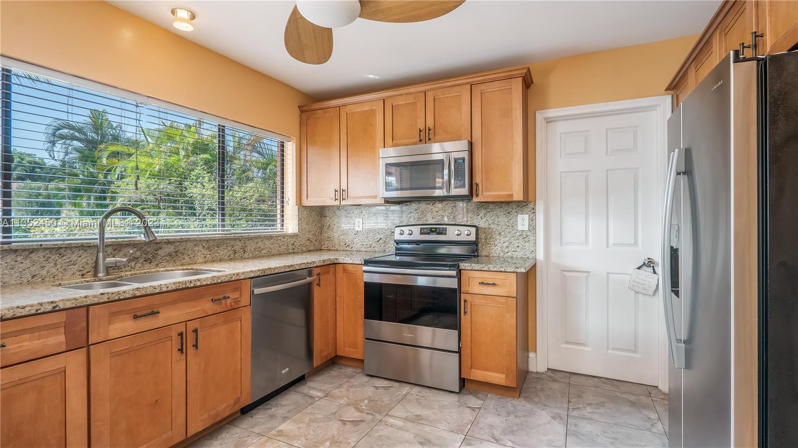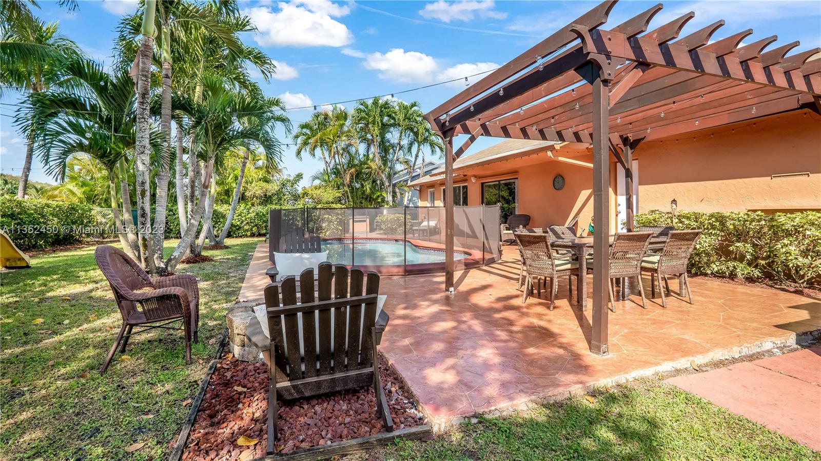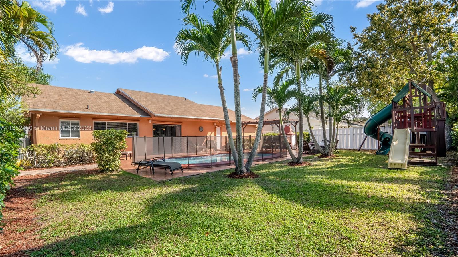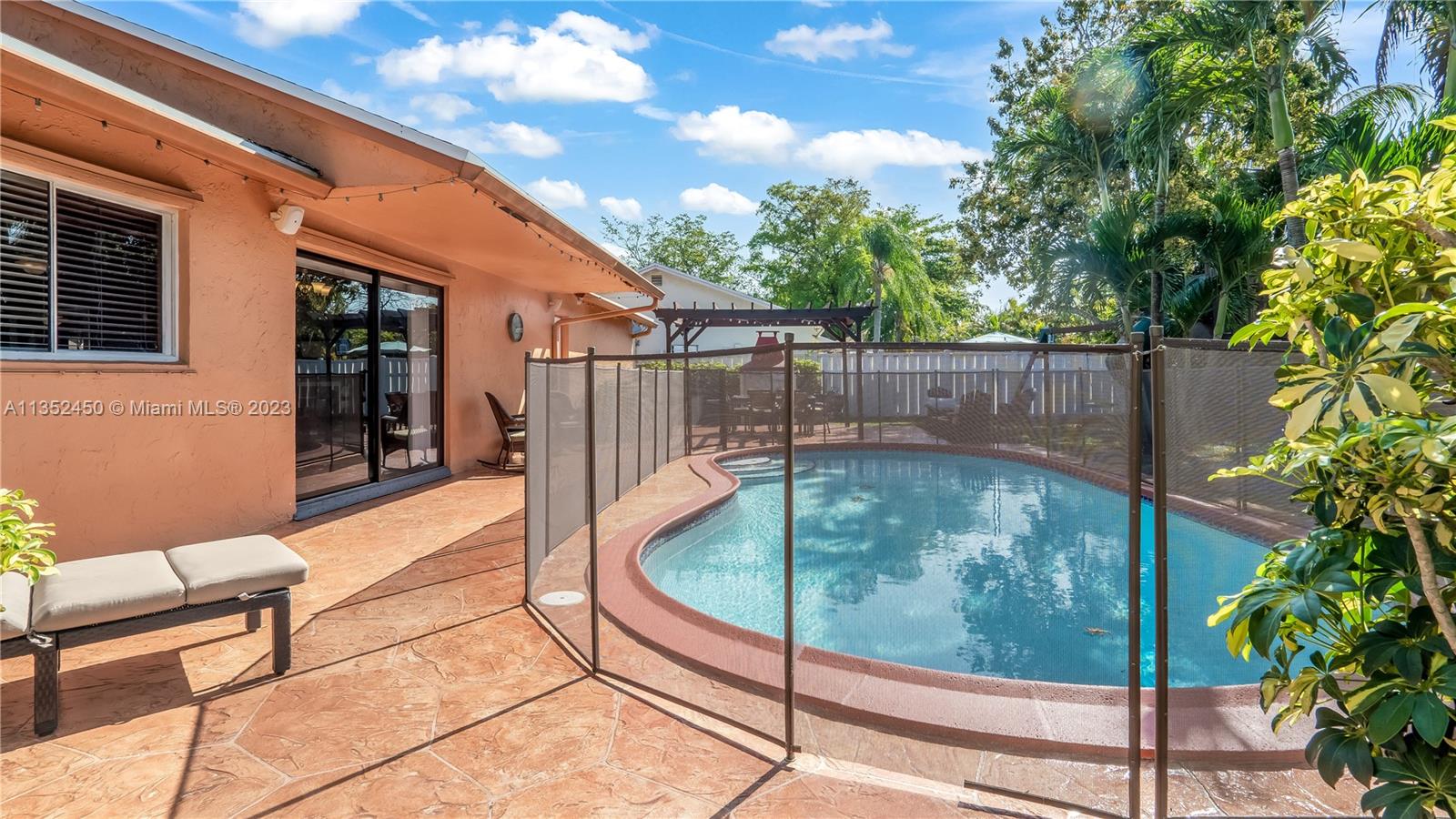 This a well maintained Pool Home with 3 bedroom/2 bath with a new roof 2 yrs and AC 6 yrs. Tile throughout, stainless steel appliances among others. Updated kitchen and bathrooms and big separate laundry room. This property has a very nice entertainment backyard with pool w/LED lights, custom patio with trellis with exterior with mounting for a flat TV, custom BBQ, Fire Pit, outdoor speakers and Play Ground. Garage has AC to be used as office/gym or park your car inside. Cabana bathroom for the pool area. Ceiling fans in all rooms. With fruit trees. Privacy fence. Conveniently located near Sawgrass Mills, Broward Mail, Parks, Elementary school and Highways. NO HOA and NOT IN FLOOD ZONE.