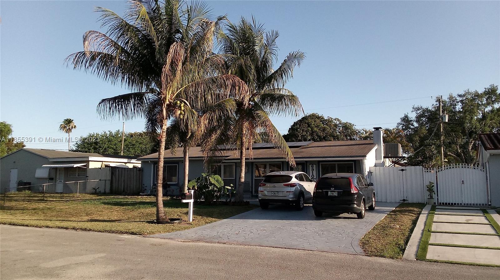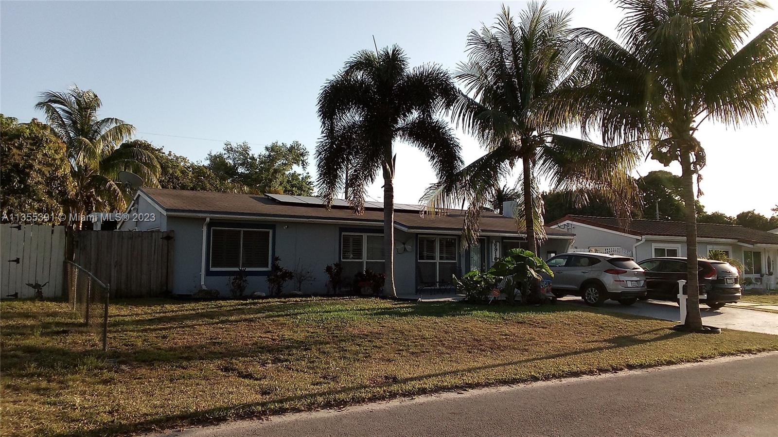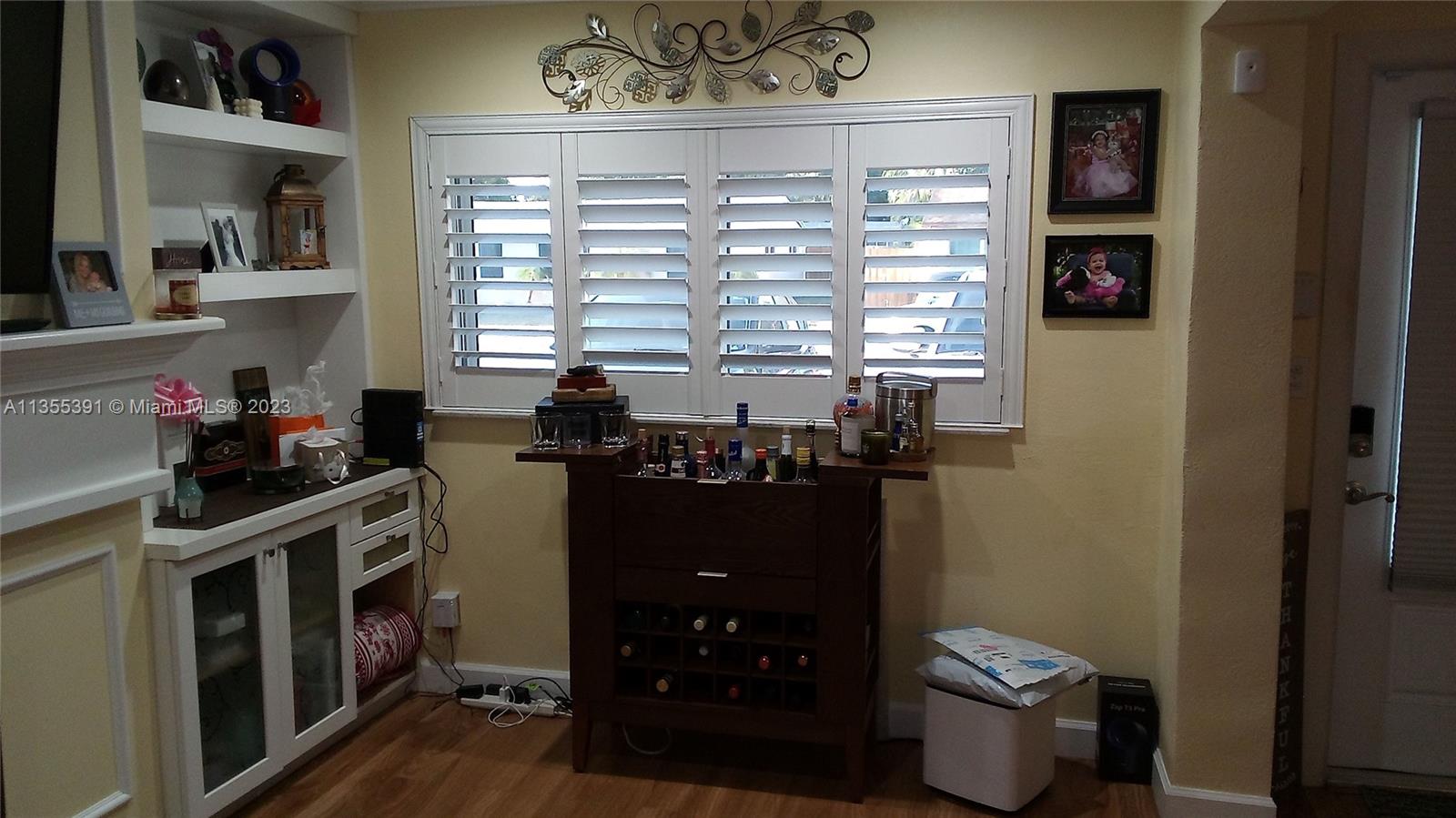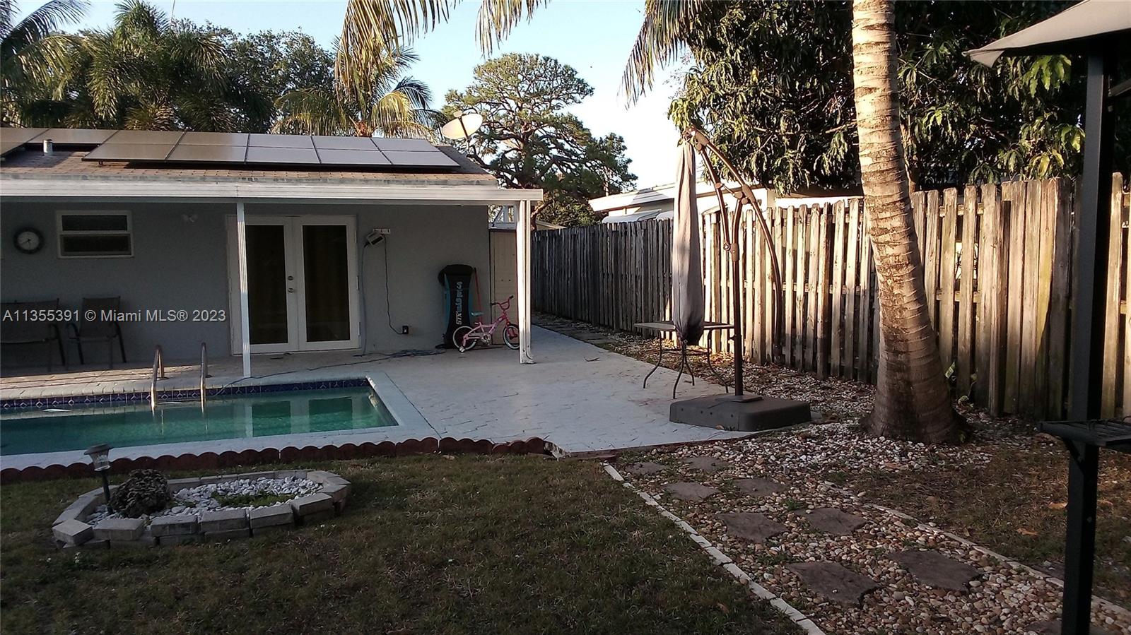 Beautiful, Charming 3bds home w/resort style pool, gorgeous, relaxing backyard perfect for entertaining and tranquility. Welcoming front patio, stamped concrete driveway, garden Magnificent lighting fixtures, gorgeous wood floors, This home offers a charming, inviting ambiance, and opens up to a lovely living room, and fireplace to enjoy warmth and comfort during our So. Flo cold snaps, built-in wine rack, built-in curio cabinet, spacious dining room, off to your spacious gourmet kitchen with granite countertop, large French door refrigerator with freeze bottom, flat top stove, built-in microwave, Hurricane-impact windows, doors, and plantation shutters offer privacy and elegance