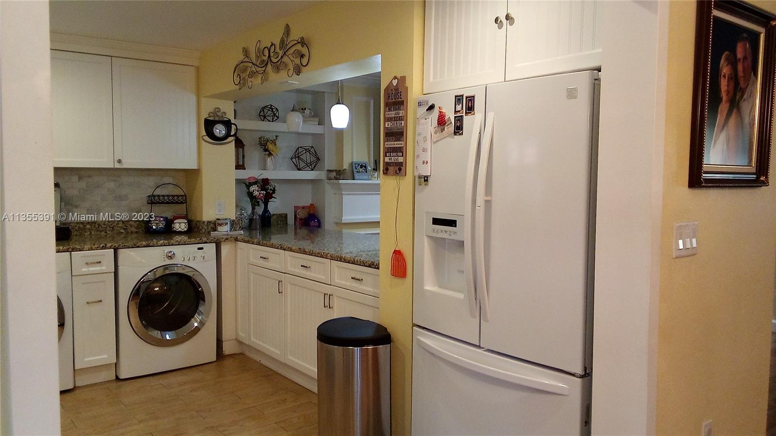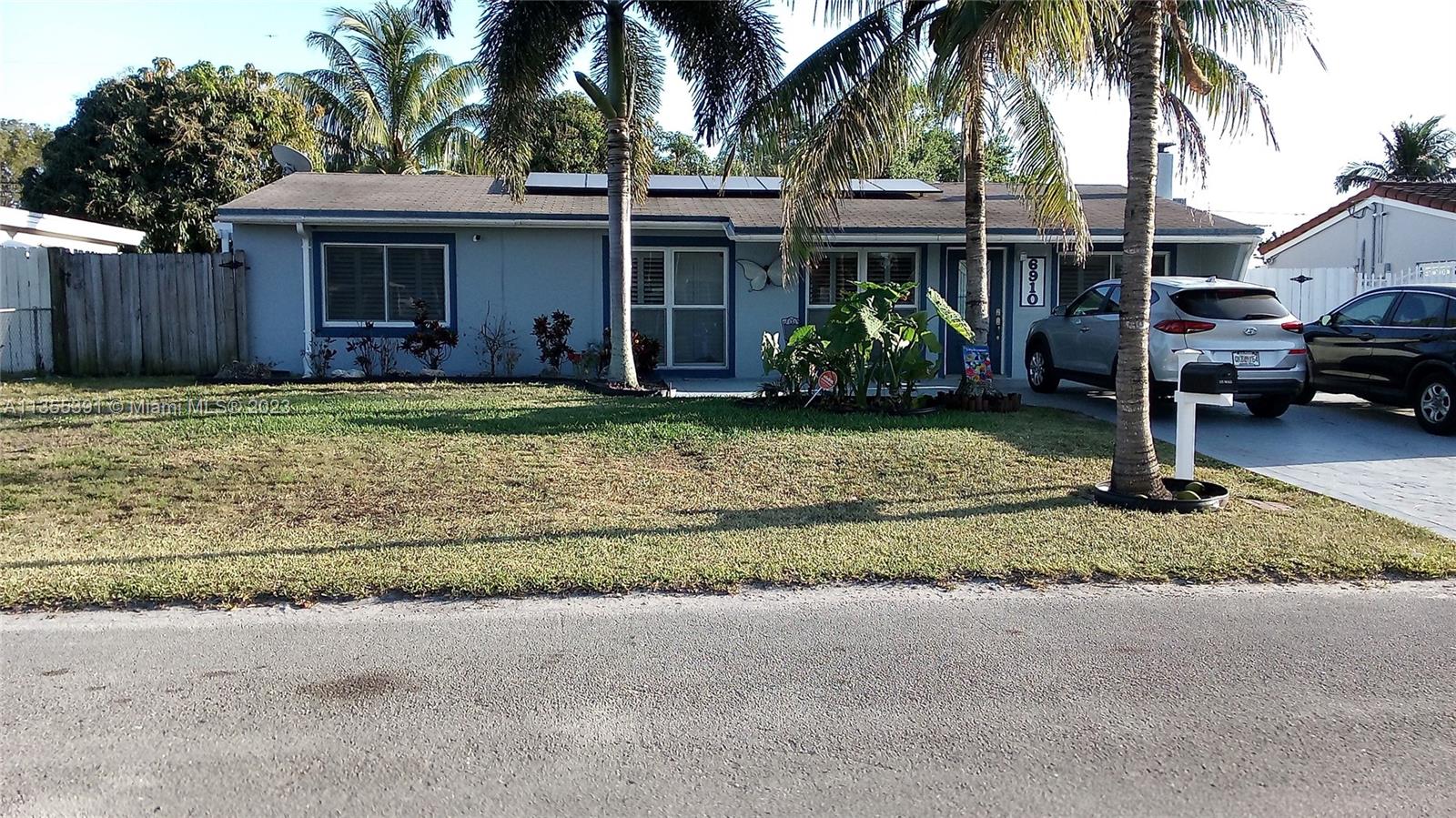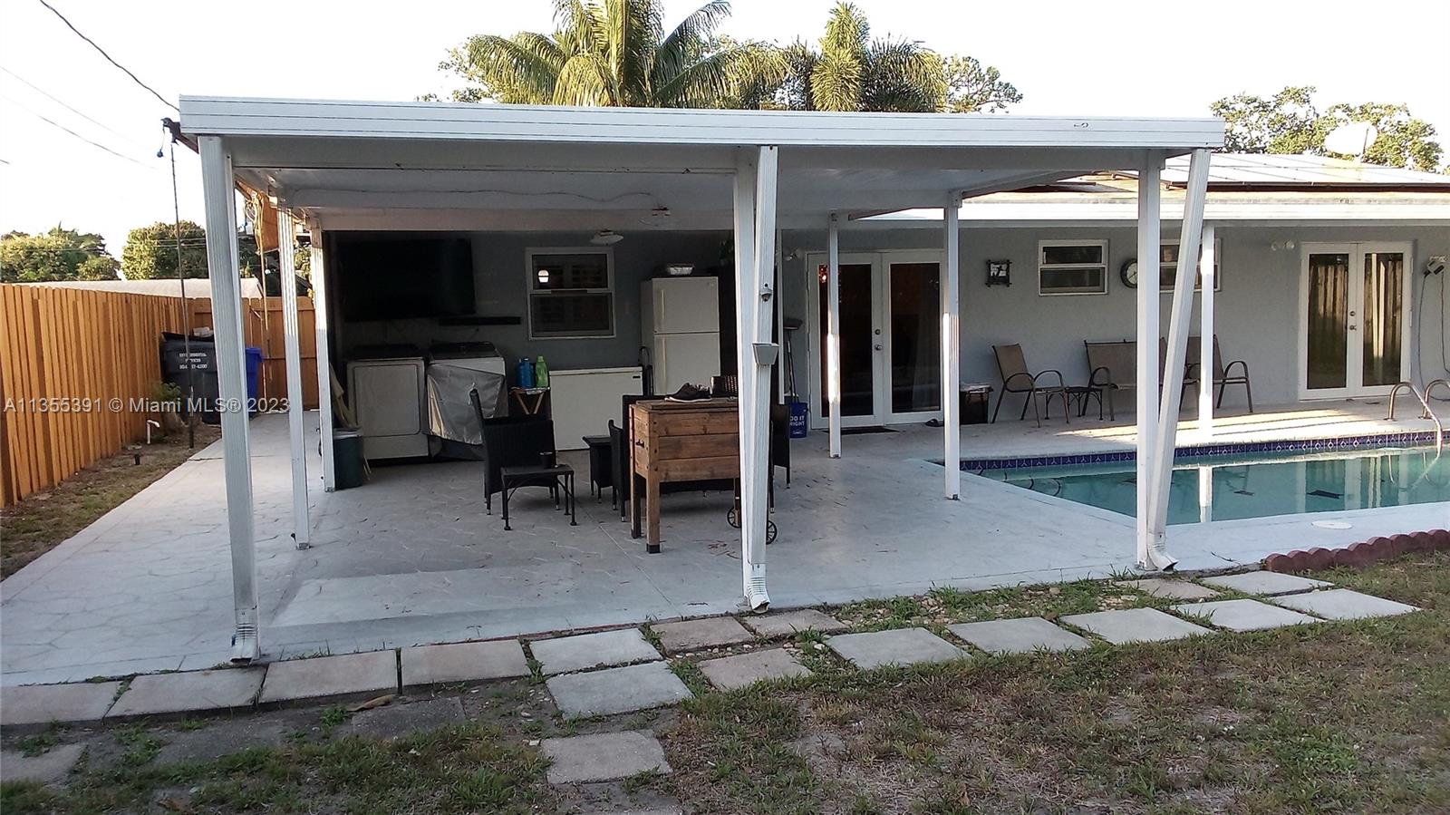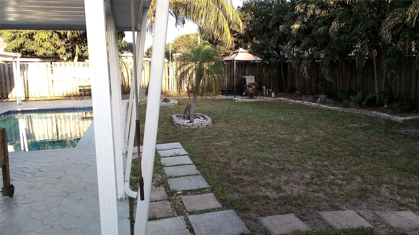 Beautiful, Charming 3bds home w/resort style pool, gorgeous, relaxing backyard perfect for entertaining and tranquility. Welcoming front patio, stamped concrete driveway, garden Magnificent lighting fixtures, gorgeous wood floors, This home offers a charming, inviting ambiance, and opens up to a lovely living room, and fireplace to enjoy warmth and comfort during our So. Flo cold snaps, built-in wine rack, built-in curio cabinet, spacious dining room, off to your spacious gourmet kitchen with granite countertop, large French door refrigerator with freeze bottom, flat top stove, built-in microwave, Hurricane-impact windows, doors, and plantation shutters offer privacy and elegance
