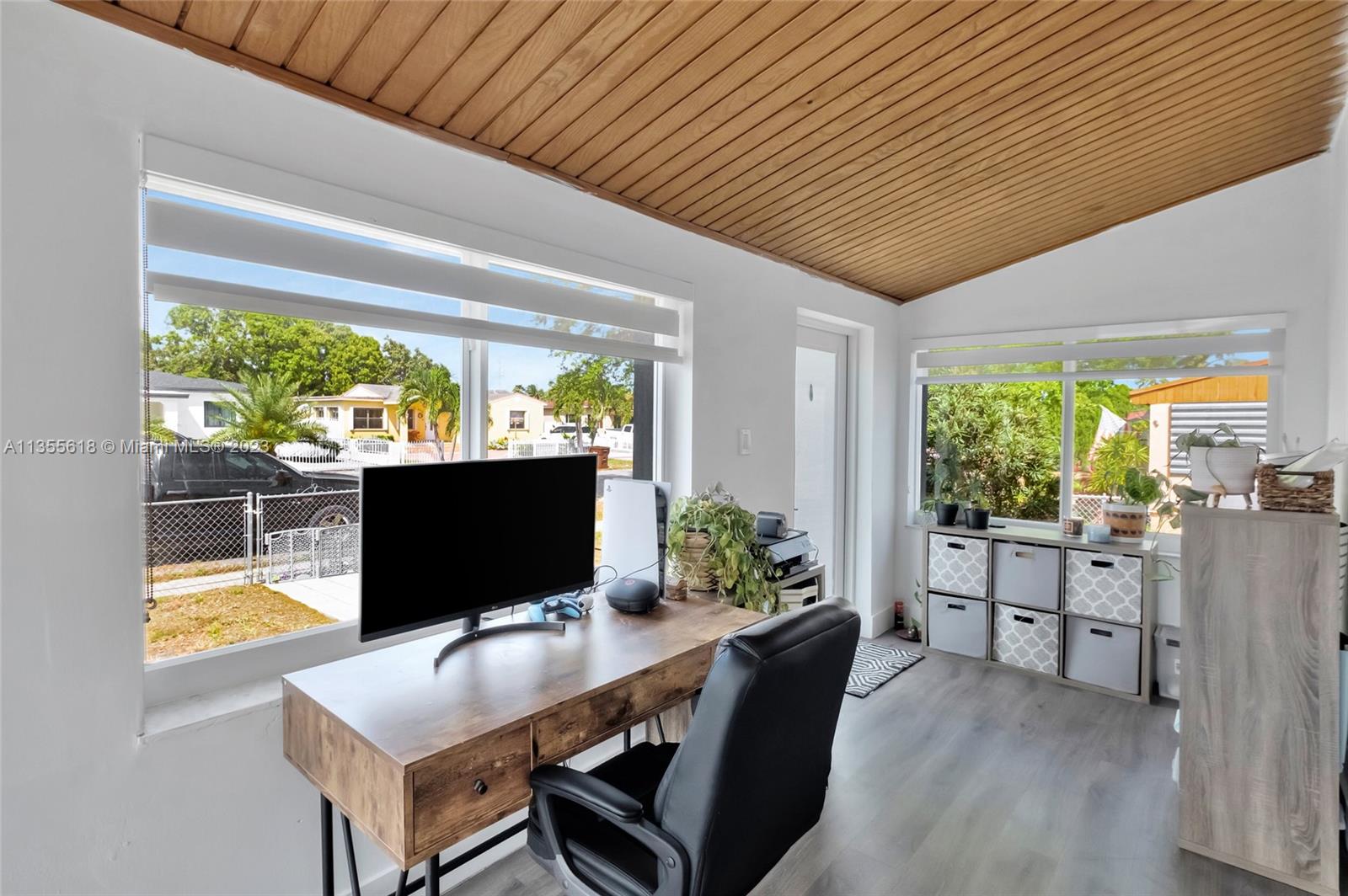 Beautiful home centrally located on a quiet street in the heart of Hialeah. This home features many updates including luxury vinyl floors throughout, a tastefully remodeled bathroom and modern kitchen with stainless steel appliances, white shaker cabinets, new fixtures and a beautifully tiled backsplash. ALL windows and doors are fully impact. Includes covered carport and lots of parking. A large backyard with several fruit trees perfect for entertaining guests with room for a pool and expansion. This is the perfect starter home for a family.