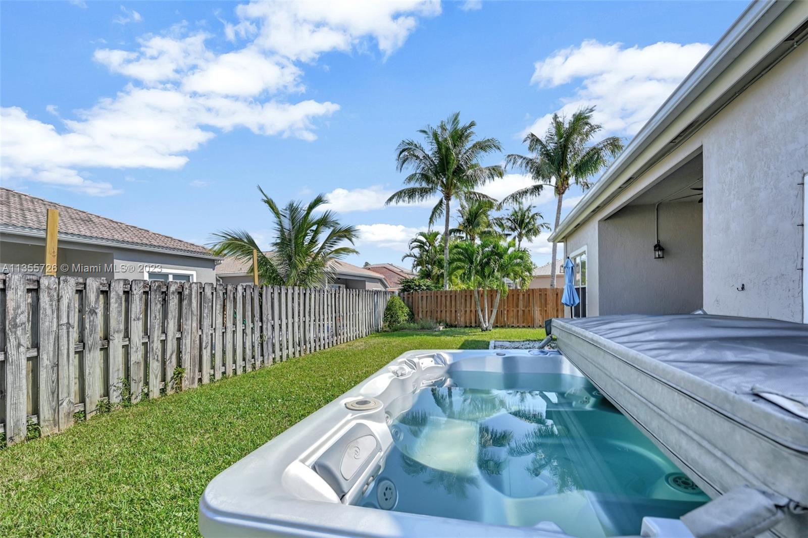 Make yourself at home in this spectacular, single story home on cul-de-sac in Pembroke Falls. This beautiful home features 4 bedrooms, 3 bathrooms, 2 car garage, new kitchen cabinets, new vinyl flooring, filtration system for kitchen faucet, recessive lighting in living rooms/dining area, and much more. The house also has a fenced backyard with plenty of space for entertaining family and friends. Relax in your heated spa after a long day with full privacy. Fabulous community clubhouse This is a safe, gated community located in Pembroke Pines with A rated school, close to main highways, shopping mall, grocery stores, Cinemark movie theatre, and restaurants. Don’t miss this gem of a house. Hurry it won’t last.