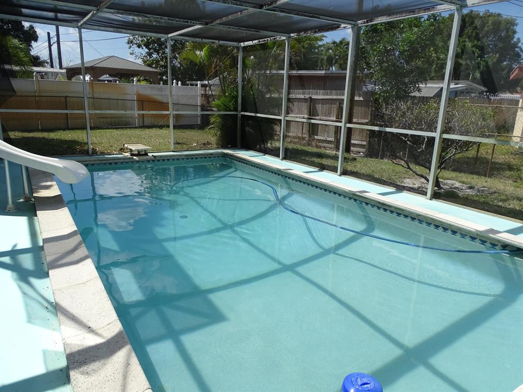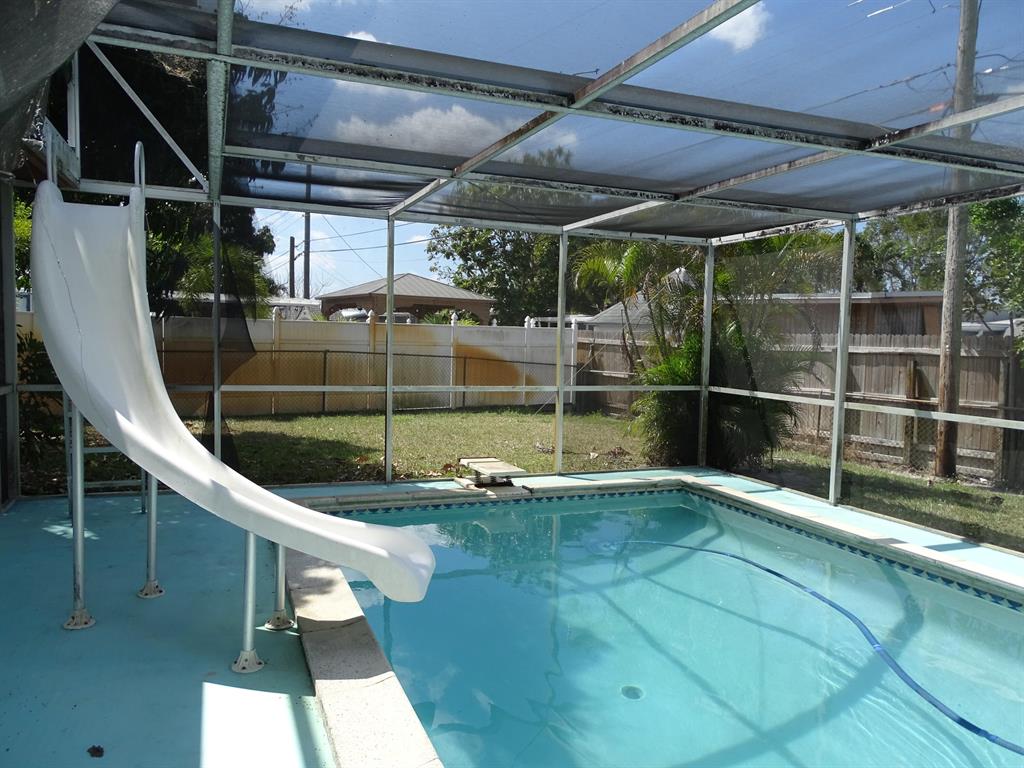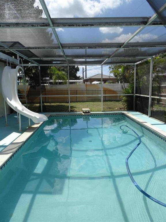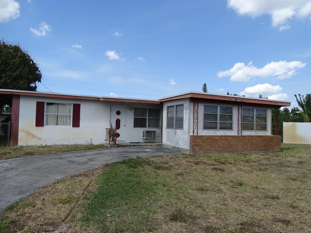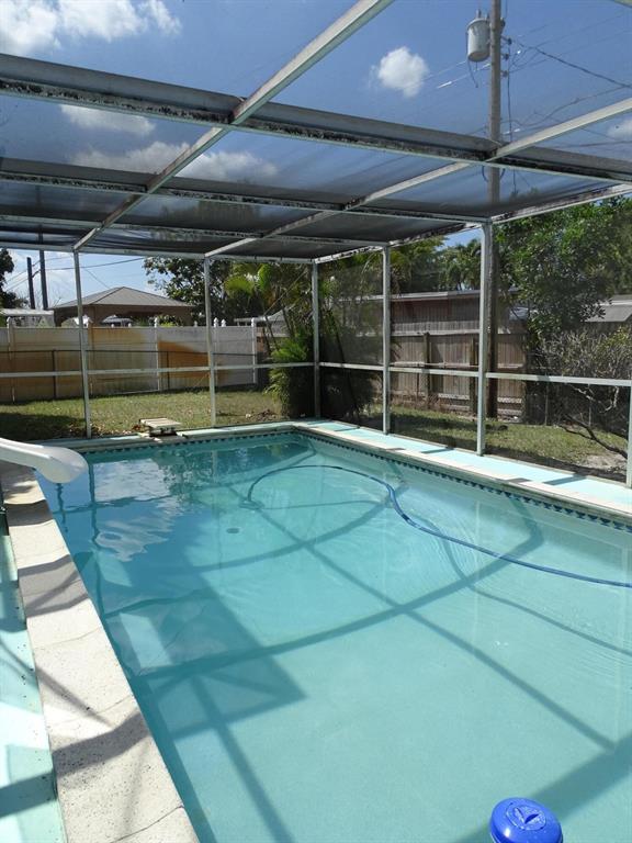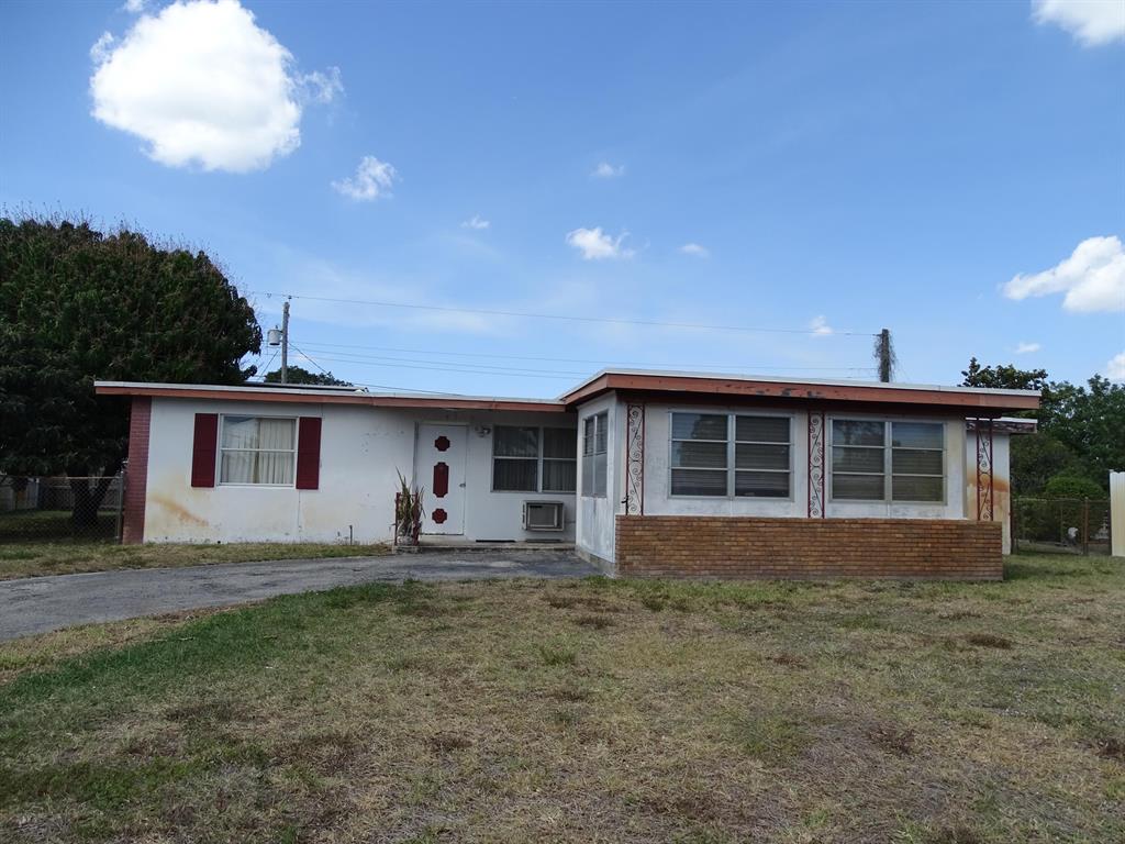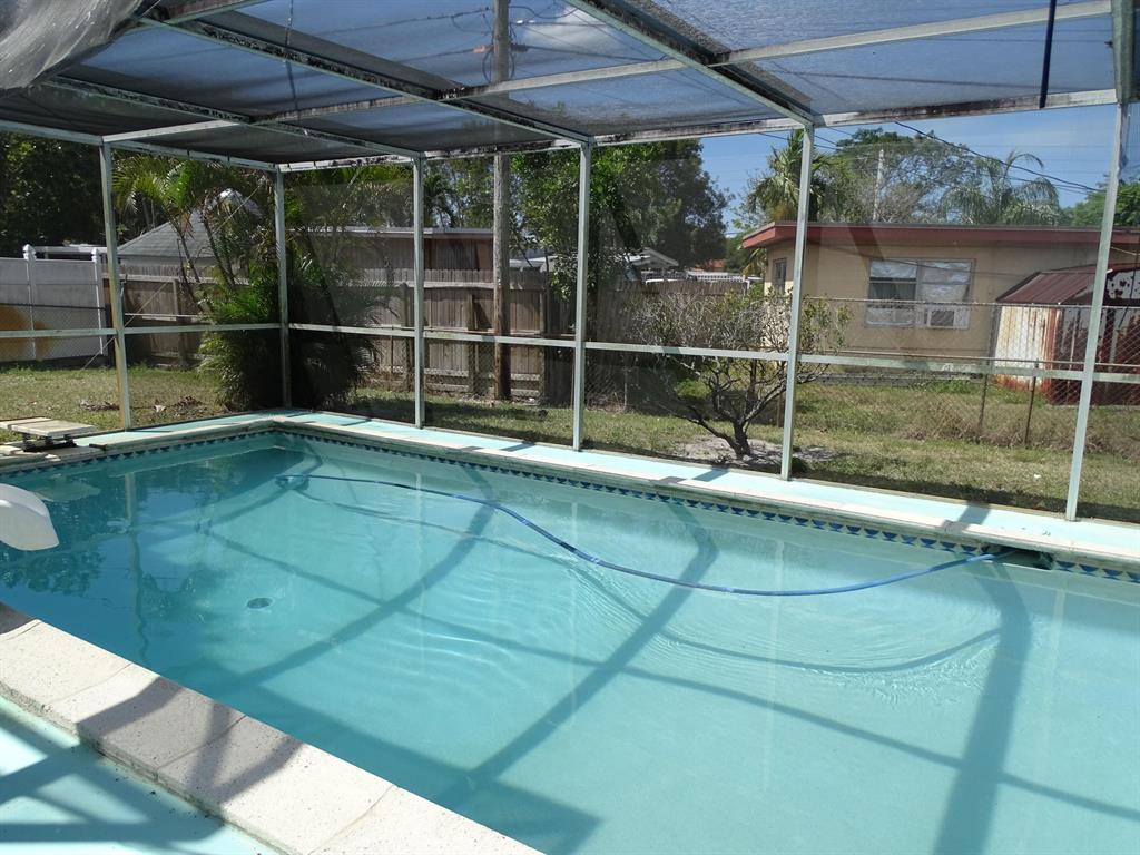 Welcome to the best buy in the neighborhood at over 2,200 LSF. This concrete block home has 4 large bedrooms and 2 full bathrooms. Needs TLC but definitely the biggest house in the neighborhood with an awesome inground pool and screen enclosure. NO HOA! Natural Gas! Large kitchen, living room with dining area. Possibilities are endless here. You can decide if you want 4 bedrooms with one family room or 3 bedrooms with a living room plus an enormous family room with a wet bar. Vaulted ceiling in LR. Additional library room could be a walk-in closet or an office. Workshop or hobby room in the front of the house. Oversized yard with fruit trees. Located centrally in West Palm Beach, close to shopping, restaurants, the WPB airport, and approximately 20 minutes to the beach