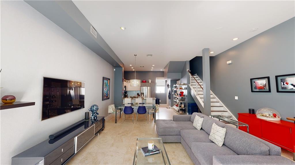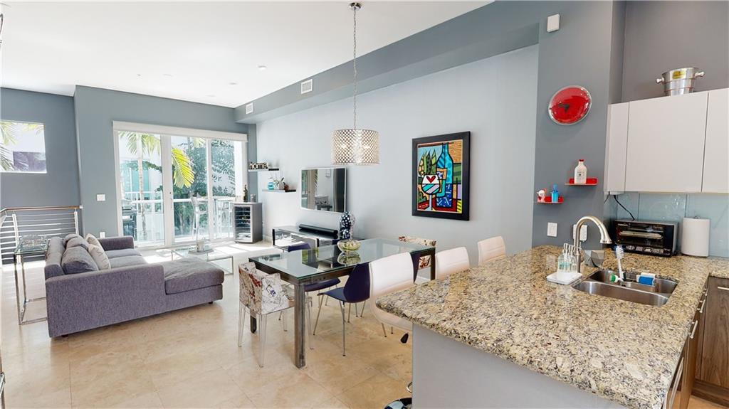 Welcome to this 3 bed 3 1/2 bath Bamboo Flats townhome in the heart of Flagler Village with your very own two car garage. This magnificent four-story residence boasts a sleek and modern design and the ultimate living experience. Featuring an open-concept office space that can be converted into a third bedroom. The living/dining/kitchen on the second floor seamlessly blends style and function. 11-foot ceilings + large windows flood the space with natural light and create an airy welcoming atmosphere. The kitchen is equipped with Samsung Chef Collection appliances, modern cabinetry, and plenty of counter space. All bedrooms feature en-suite bathrooms. The private rooftop terrace is the perfect space for hosting gatherings, relaxing after a long day, or just enjoying a glass of wine.