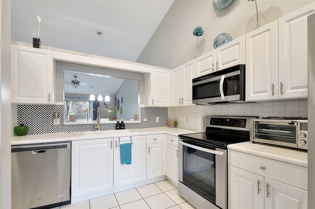 Welcome to Andros Isle!Open concept one story townhouse with tile and laminate flooring throughout. The kitchen is bright and has stainless steel appliances. Spacious dining room and living room area for entertaining. Main bedroom has a large walk in closet and a beautifully renovated bathroom. Second bedroom has newer laminate flooring. Guest bathroom is tastefully renovated. Nice sized patio to enjoy the Florida beautiful weather. One car garage and large driveway is in a cul-de-sac . Stop by the Clubhouse and view the inviting pool with the swaying palm trees! Amenities included in gated community: clubhouse, pool, jacuzzi, fitness room, tennis and playground. AC 2017 and Water Heater 2016.This location is close to the PB Airport, Beaches, Rosemary's Square, and Turnpike.