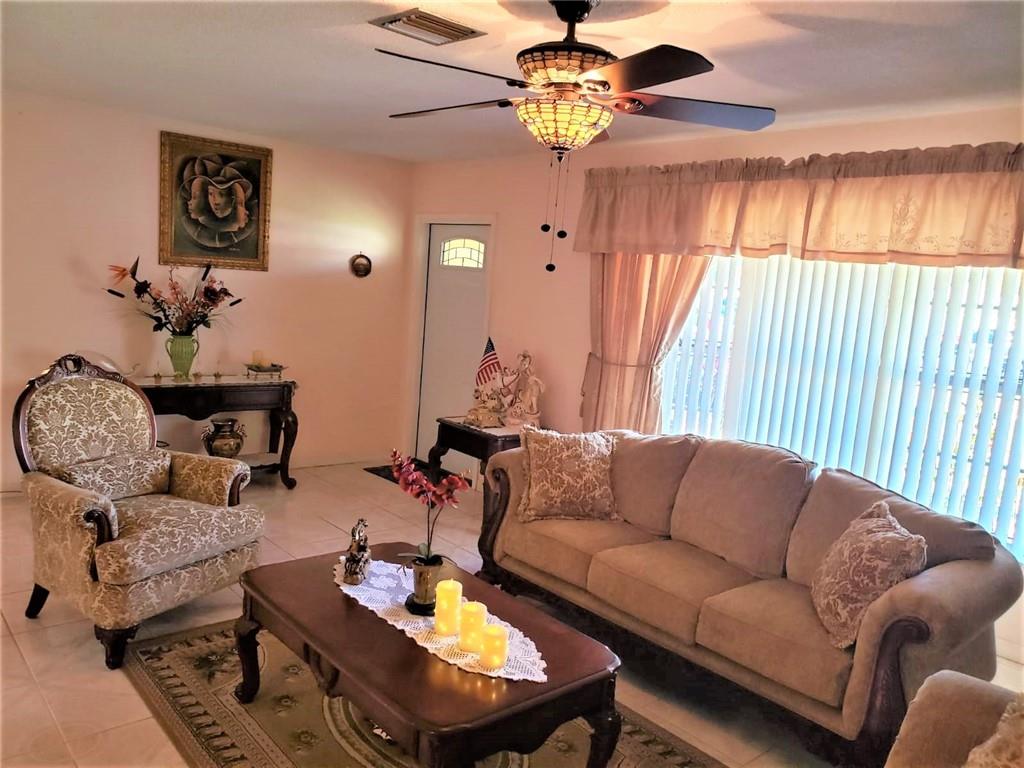 REDUCED * REDUCED Spacious Home located in a quiet Cul-de-Sac on a large lot approximately 12553 Sq Ft of land. WH0A!!! This Gorgeous Home has a very unique split floor plan with 4 Full Size Bedrooms, Formal Living Room, Formal Dining Room, Formal Dinette, Formal Florida Room, Updated Kitchen with Stainless Steel Appliances, Granite Counter Top, Dishwasher, Electric Range, Electric Water Heater, Refrigerator, Smoke Detector, Tiled Floor throughout, Carpet in the Bedrooms, Washer, Dryer, A/C, Under Air A/C in the Garage, Waterfront Canal, Fruit Trees, Covered Screened Patio, Fairly New Barrel Tile Roof, Drapes, Blinds, 7 Ceiling Fans with Lights, Hurricane Shutters, Fenced Back Yard. NO HOA. This is an "AS-IS" Sale. SELLERS TO CONTRIBUTE $10,000 TOWARDS ANY AND ALL REPLACEMENTS.