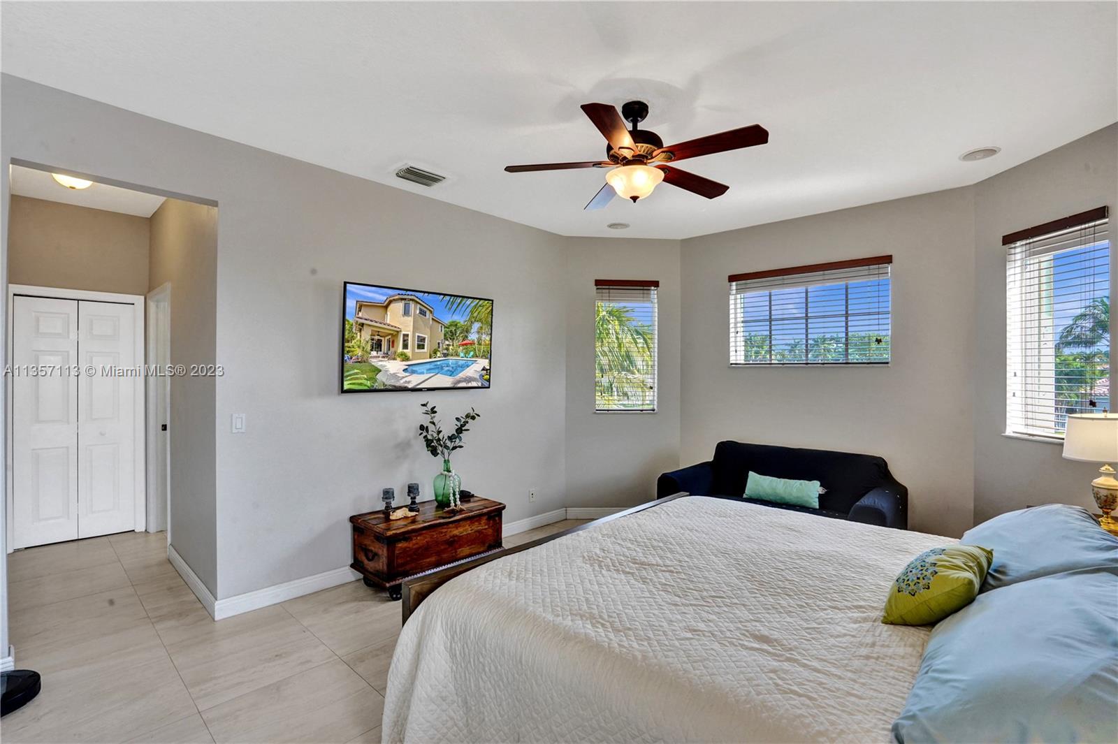 This waterfront home with a pool is absolutely stunning and very spacious! Bright & open floor plan with large social areas. An expansive gourmet kitchen with Quartzite counter tops and top-of-the line stainless steel appliances. The primary bedroom is spacious and offers a large walk-in closet. Fully remodeled bathrooms, new porcelain flooring, fresh interior & exterior paint, A/C replaced 2 years ago, vaulted ceilings, new iron railing on the stairs, surround sound, crown moldings, elegant chandelier and light fixtures, smart light control, second floor accordion shutters. Gorgeous backyard boasts a sparkling pool, an amazing lake view, lush landscaping, making it the perfect place for entertaining! This home is ready to move in!