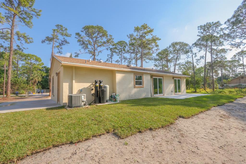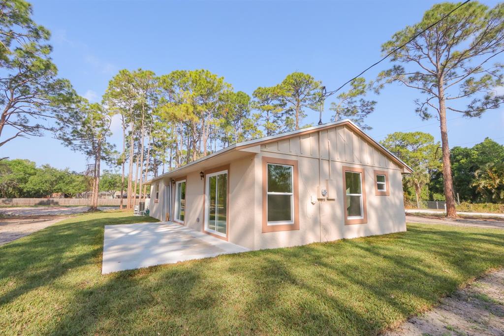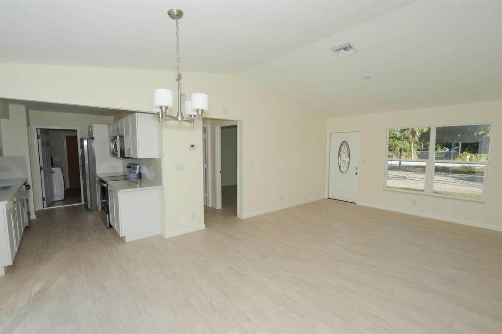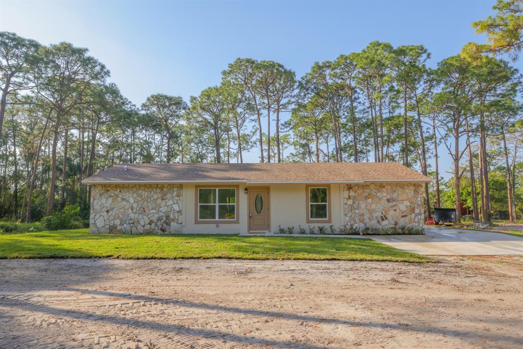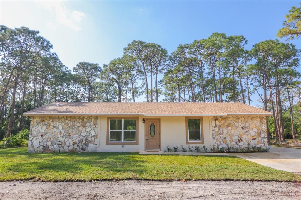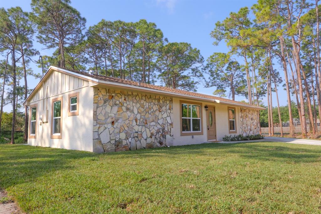 Introducing a stunning 3 bed, 3 bath property in West Palm Beach, located in a neighborhood with no HOA restrictions. The converted garage provides additional space and flexibility and a third bathroom has been added, is workmanlike manner. This property sits on an enormous 1.33-acre treed lot, offering ample privacy and a serene environment.The completely remodeled interior boasts all new tile flooring and updated appliances, creating a modern and sophisticated feel throughout. The master bedroom features a walk-in closet, as well as a stunning bathroom with dual sinks and a standalone shower.The enormous backyard area is perfect for outdoor living and entertainment, offering a huge space for relaxation or hosting family events.