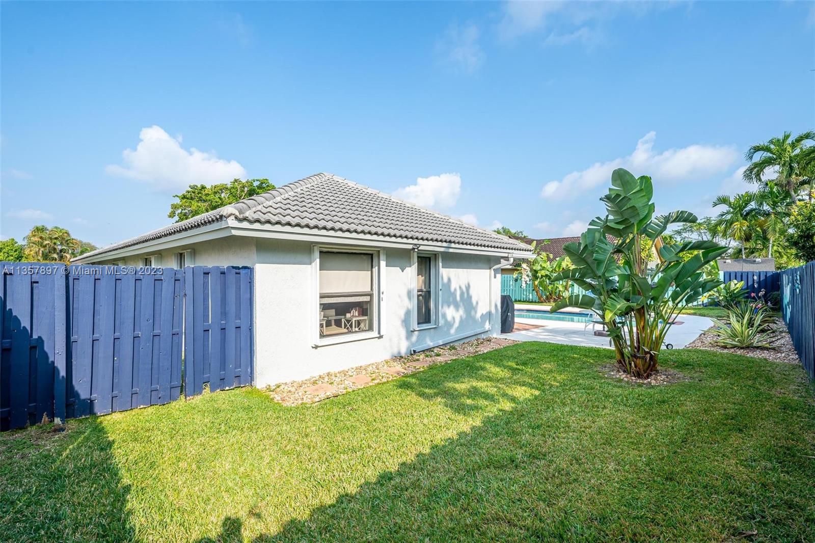 A true Florida paradise awaits! Bring all your friends & family to this 4/2 with sparkling play pool, large covered patio & plenty of yard space for games, playground & pets. Enjoy the shade in the afternoons. Split bedroom plan with big rooms. HUGE upgraded eat in kitchen with snack counter, wood cabinetry & moveable island. Fun little street with terrific neighbors & very little traffic. Abundance of natural light from the 4 sets of sliding doors all with pool views. So many features including: high ceilings, indoor laundry room, cabana bath & accordion shutters. Great Davie location short drive to airport, beaches & FAMOUS Sawgrass Mills Mall with world class shopping & restaurants. Close to Shenandoah Park with splash pad & playground. Community walking path. Terrific Davie schools.
