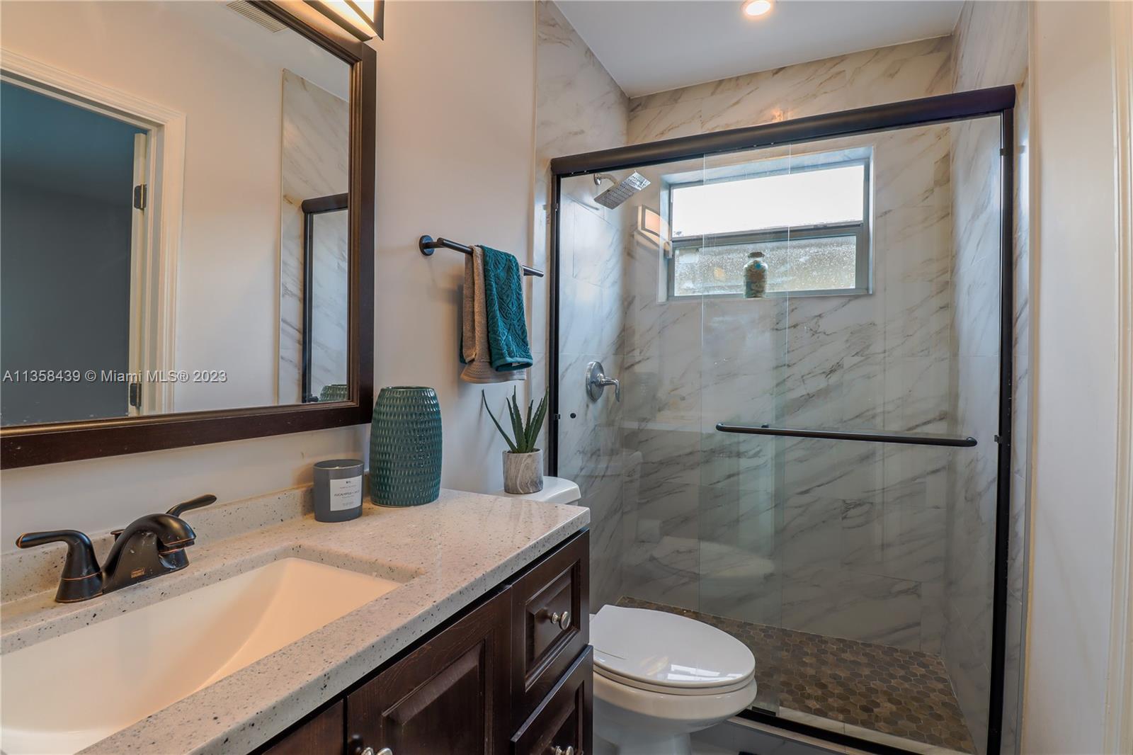 Beautiful home with Modern touches featuring 2 Bedrooms, 2 Bathrooms. Gorgeous Kitchen with SS appliances, updated Bathrooms, Impact Windows & Doors, & Ceramic Flooring. Spacious yard with back alley access, plenty of room for Pool, Boar or RV! Large Pantry/Laundry room. Dining room may be used as 3rd bedroom. Second bedroom can be used as In-Laws Quarters or rented with en suite bathroom and separate door access. Property larger than tax records. Home is great for Airbnb-NO HOA! Tree lined walking path right out the front door. Family friendly neighborhood. Excellent location: minutes away from Sunny Isles Beach, Aventura Mall and Major highways (I-95, Turnpike, & 836) Selling AS-IS, Buyer to sign Hold Harmless at Closing.