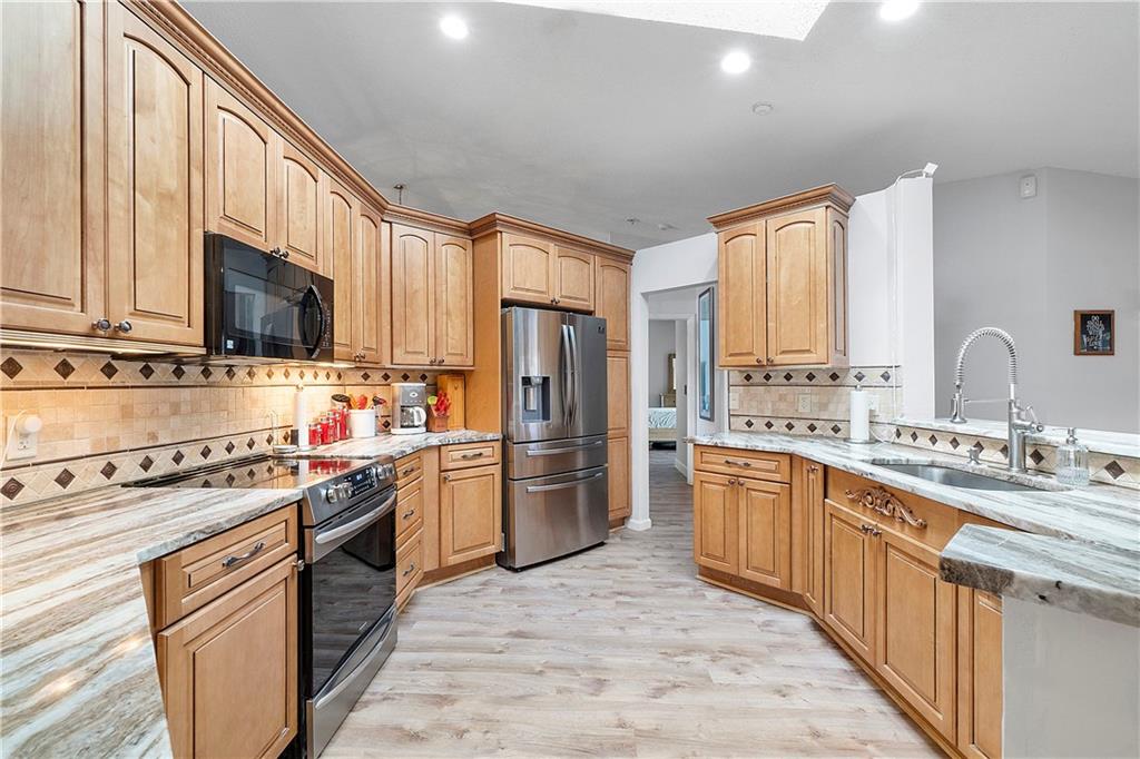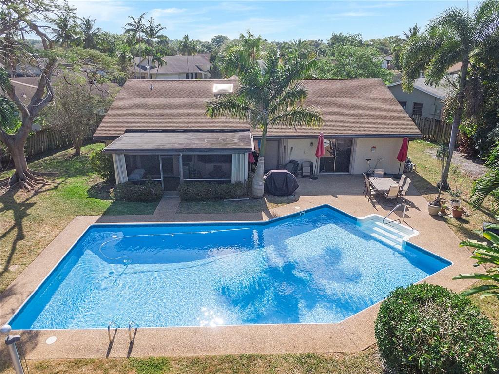 MUST SEE! This incredible 3 bedroom 2 bath one story pool home nestled in a cul-de-sac location. Huge oversized lot with fenced back yard and resort size pool. New WLV wood plank flooring throughout entire house. Vaulted ceilings make this home feel larger. Beautiful exotic granite kitchen countertops and snack bar, wood cabinetry & stainless steel appliances. Breakfast area and spacious kitchen open to the family room. Screened patio and open pool area is perfect for outdoor entertaining. All windows have accordian shutters. Exterior and interior recently painted. Two car garage with hurricane rated door and xtra refrigerator. Quiet community just minutes from shopping, restraurants and the Sawgrass Expressway, 595 and FLL Airport. Not your typical zero-lot home.