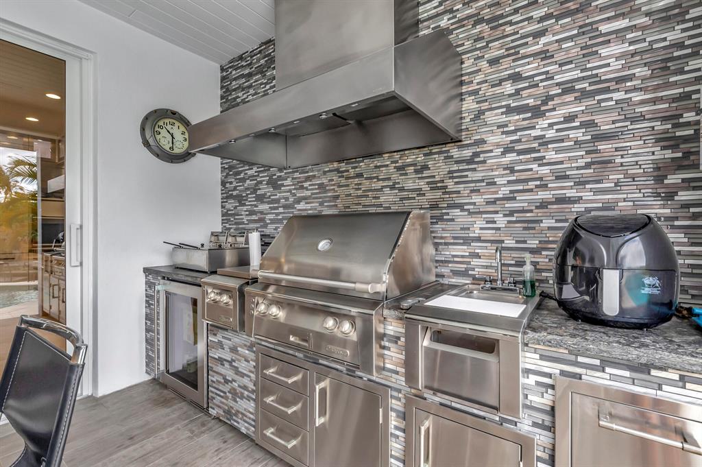 This 5 bed, 4 bath waterfront home is your dream oasis, offering luxurious living with direct ocean access and no fixed bridges. Relax in the Southern Exposure backyard, complete with a 20,000 aluminum boat lift and heated saltwater pool with a hot tub jacuzzi. Entertain guests with the outdoor summer kitchen, featuring an Alfresco gas grill. The main kitchen is a chef's delight, featuring a top-of-the-line Miele oven with steam convection and induction cooktop, as well as a Subzero fridge. With impact windows and a Storm Smart screen for the porch, you'll have peace of mind during storm season. Additional features include a generator, 500-gallon propane tank, whole house water softener, and so much more!!! Schedule your viewing today!