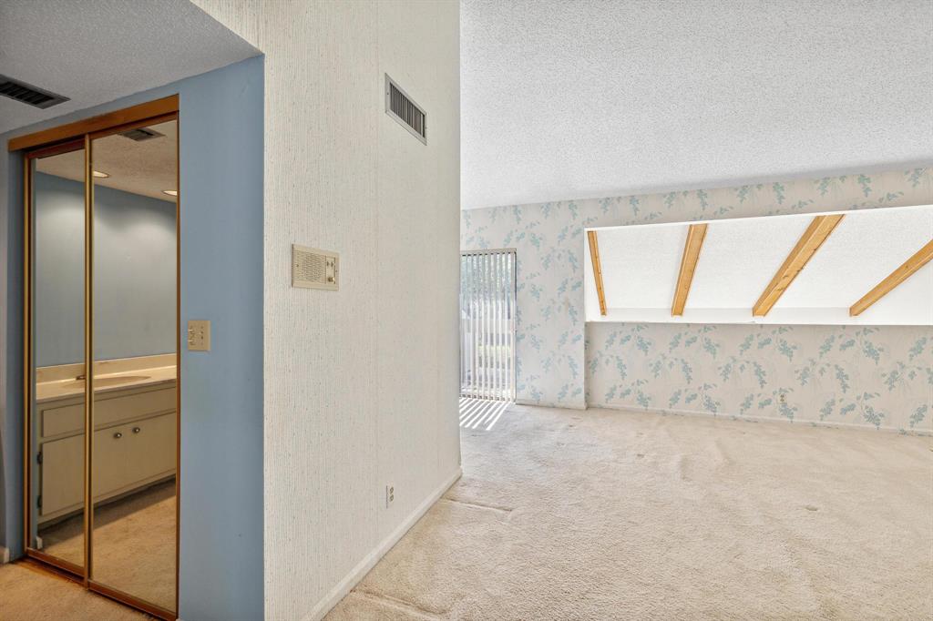 Spacious 3 bedroom, 2.5 bath townhome with 1 car garage in picturesque Ironwedge of Boca del Mar. Ironwedge has lovely mature landscaping and one-of-a-kind design including shiplap wood accent walls with floating staircase and wood burning fireplace flanked by clerestory windows. Two entrances to the screened patio with serene lake views. Upstairs has a huge primary bedroom with vaulted ceiling, sitting area & private balcony. The 2nd & 3rd bedrooms share a full bath. Brand New AC JUST Installed. A-rated school district. Close to the best of dining, shopping & entertainment in Boca Raton. Investors can rent immediately. Reasonable HOA includes cable! Rarely available TH in desireable neighborhood provides a fantastic opportunity for a new family to make this their home!