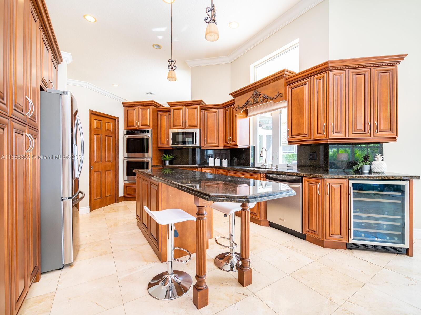 Magnificent, One of a Kind Custom Built Home on the 7th Hole of Weston Hills Country Club, Players Golf Course. Picturesque, Serene Golf Views from all living areas. This Elegant 6 Bed, 5 & 1/2 Ba + Office home was expanded from the original Kingsley floorplan. Second Story addition added as a Private Retreat for children w/3 Bed, 2 Baths & Spacious Loft. 1st floor Master with lavish marble bath, his & hers walk in closets plus - a Luxury Walk-in Closet that is every woman's dream including beautiful built-in's and center island. The gourmet Kitchen w/walk in pantry, & spacious center island. Travertine Marble Floors in all living areas, FULL IMPACT WINDOWS & FRENCH DOORS, ROOF REPLACED IN 2019. 5 way split plan offers privacy for all, 3 Car Garage, Circular Drive, Sec System and more....