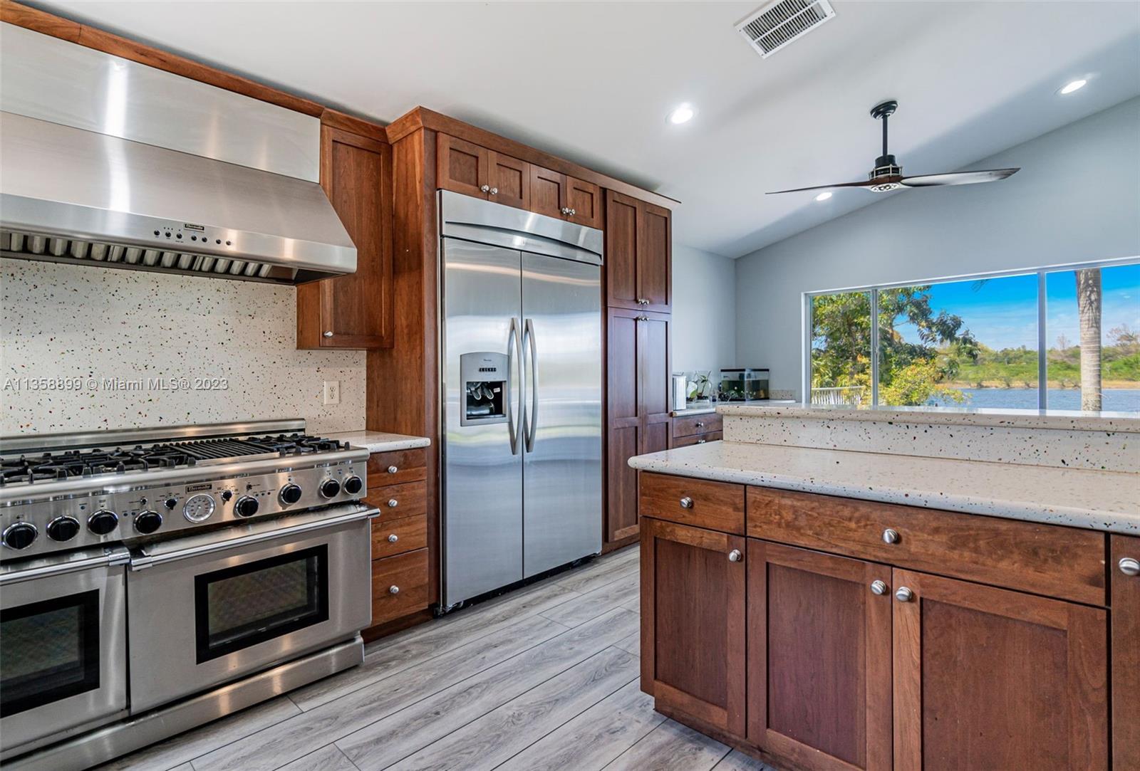 Enjoy resort-like living, Priced Right. Calming views and lovely sunsets from your patio await you in this Lovely fully updated 4 spacious bedrooms, 2 baths home, on a huge lake & preserve, in highly south-after Silver Lakes. This ideally located home on an "island" (the community is surrounded by the lake), boasts new bathrooms; an updated chef’s dream kitchen, equipped with a Thermidor commercial quality range with 6 burners, 1 grill, 2 ovens, a 48-inch Thermidor double-sided fridge, and an extended prep countertop. The features also include new vinyl plank flooring; newer Aircon (6 months); unique paddle fans; and a freshly painted interior. This features-packed home is priced for a quick sale