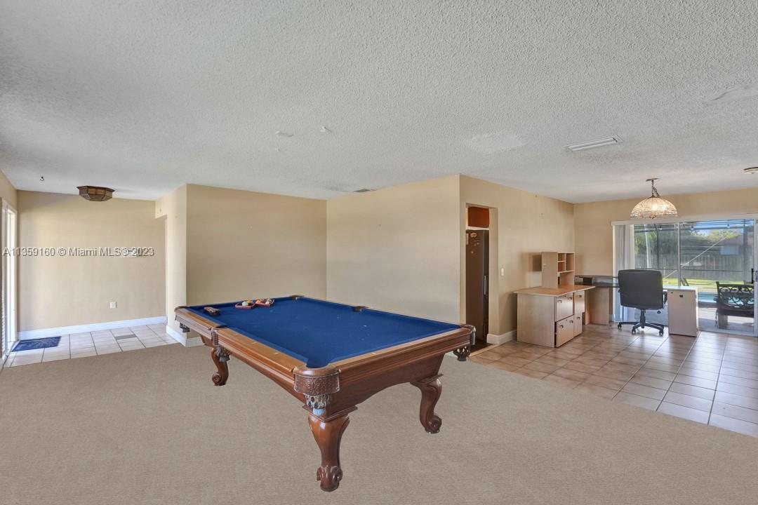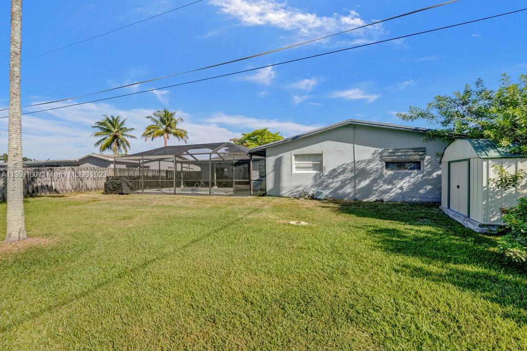 Welcome to this hidden GEM! This stunning 4bd 2.5 bath property has a bit of everything. From a screened pool, spacious primary bedroom, to a huge backyard. Hurricane shutters on all the windows, a 2-car garage with a washer & dryer located in the same area, and central AC which makes this home comfortable. The interior of this home is just as impressive as the exterior. You'll love the spacious primary bedroom with marble counter tops in the bathroom. This property also has a spacious kitchen with stainless-steel appliances. The billiards table is a great addition for entertaining friends and family, and the large living areas provide plenty of space for everyone to relax. The screened pool and patio area are perfect for enjoying the Florida sunshine.