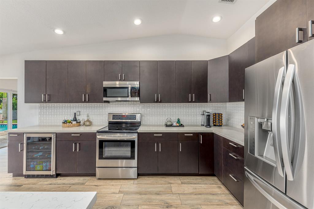 FINALLY, this is the ONE you have been waiting for. Be prepared to fall in love with this stunning, COMPLETELY remodeled 3/2, CBS, pool home. This oversized lakefront property is sure to wow you with its stunning waterfront views. Over $100,000 in recent upgrades to include: Freshly painted exterior, full kitchen remodel with gorgeous quartz countertops, stainless steel appliances & beautiful backsplash. Full bathroom remodels to include floor to wall tile, frameless shower door, dual vanity. All new wood plank tile flooring. Complete Impact glass windows & doors to include 4 sliders (2 triple wide). One of a kind custom build barn door window fixture. New Impact rated garage door, new pool pump, new electric panel with generator hook up and SO much more. This one you DO NOT want to miss!
