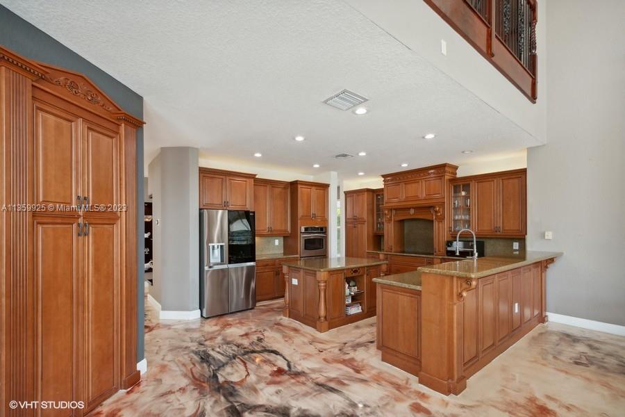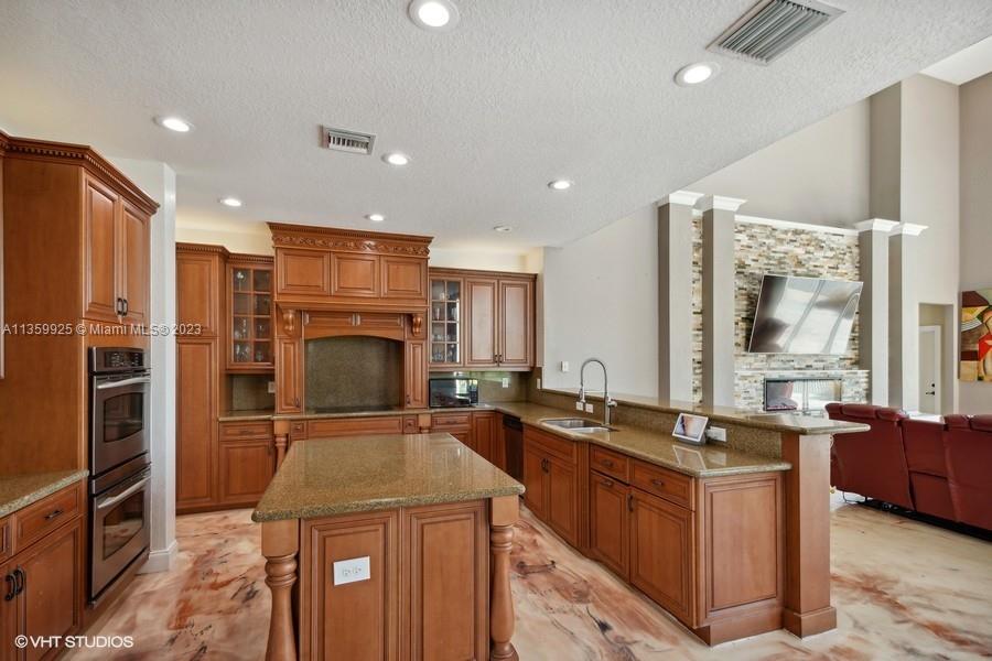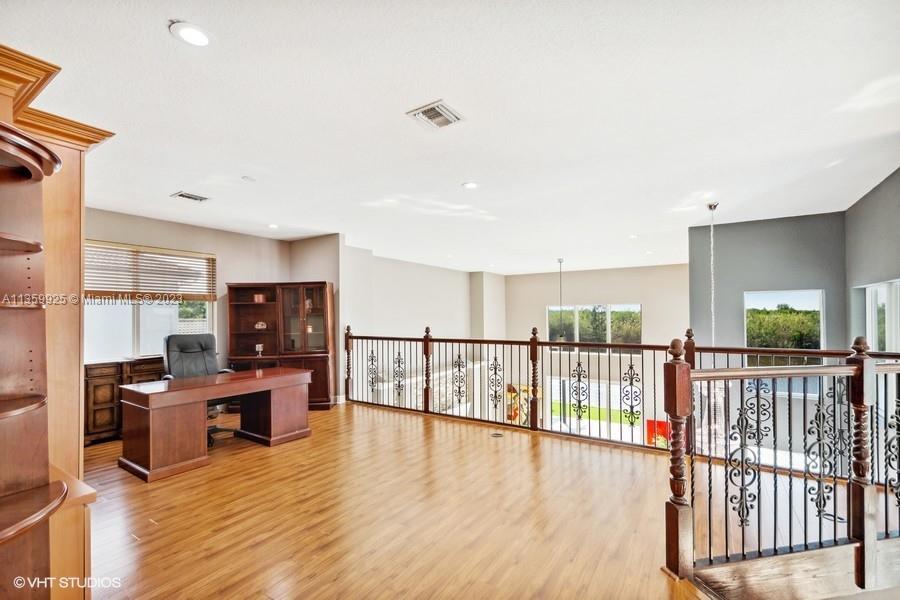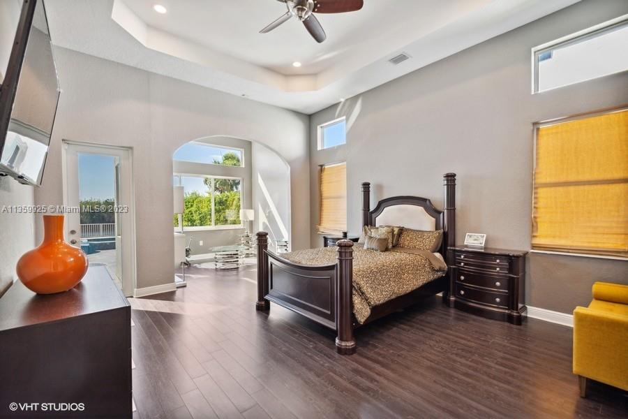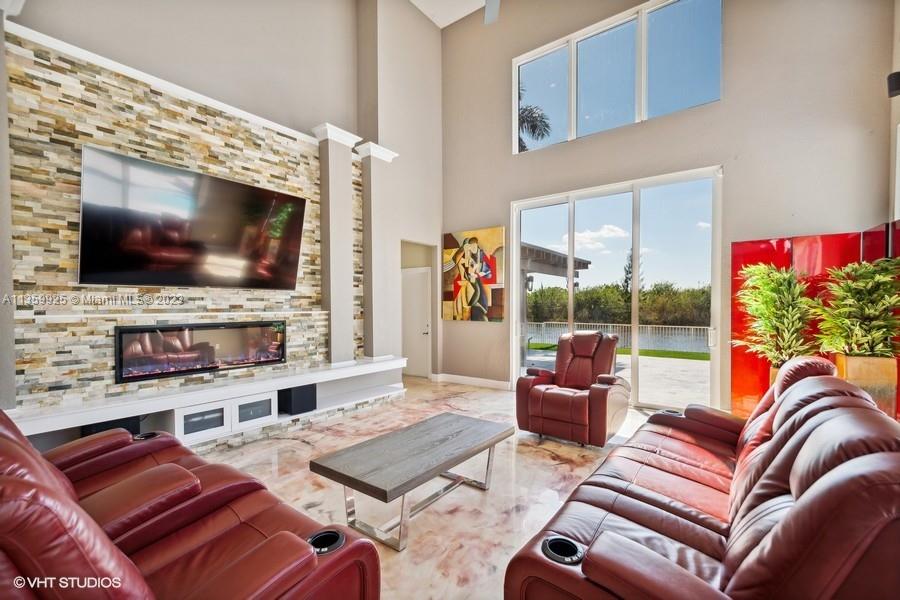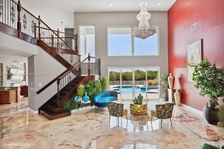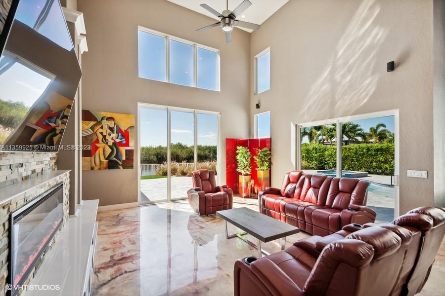 Opulent! Stunning sunset views from the home, heated pool - spa, beach sand on the Wide Lake, spacious 5 bedrooms + Loft, 4 baths and 3 car garage. Epoxy floors on ground level, vaulted ceilings, chef's kitchen, granite countertops, stainless steel appliances. Wood floors upstairs, hurricane proof windows, sliding doors, fenced yard, covered patio, estate style master bedroom with three walk-in closets and much more. Resort-Style Community in Sunset Lakes located in West Miramar. Conveniently Located Close to Great Schools, Highways, Dining, Grocery Stores and More. Motivated Seller.