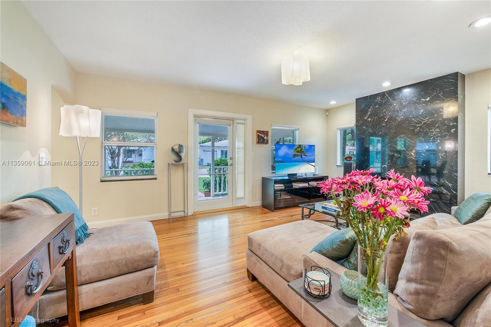 Coral Gables charm nestled on a magnificent landscaped paradise. Enter into the spacious living room with stunning floor to ceiling stone fireplace, private dining room and professional designed kitchen with top of the line appliances, cathedral ceiling and breakfast area. Large primary bedroom with an elegant marble spa like bathroom. screened in patio for dining, relaxing and escaping into a serene tropical garden with mature oaks, palms, lush tropical foliage and colorful orchids. The 9,845 SF lot offers opportunity to add a pool and new additions. Impact glass, porcelain and hardwood floors, Spanish tile roof 2019, gated carport, LED lights. Very quiet street walking distance to Granada golf course.Convenient to excellent Gables shops and restaurants, Brickell, downtown and airport.