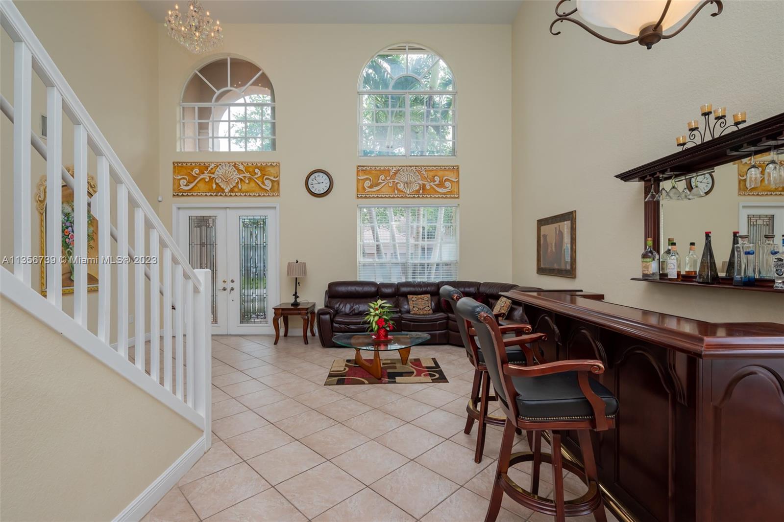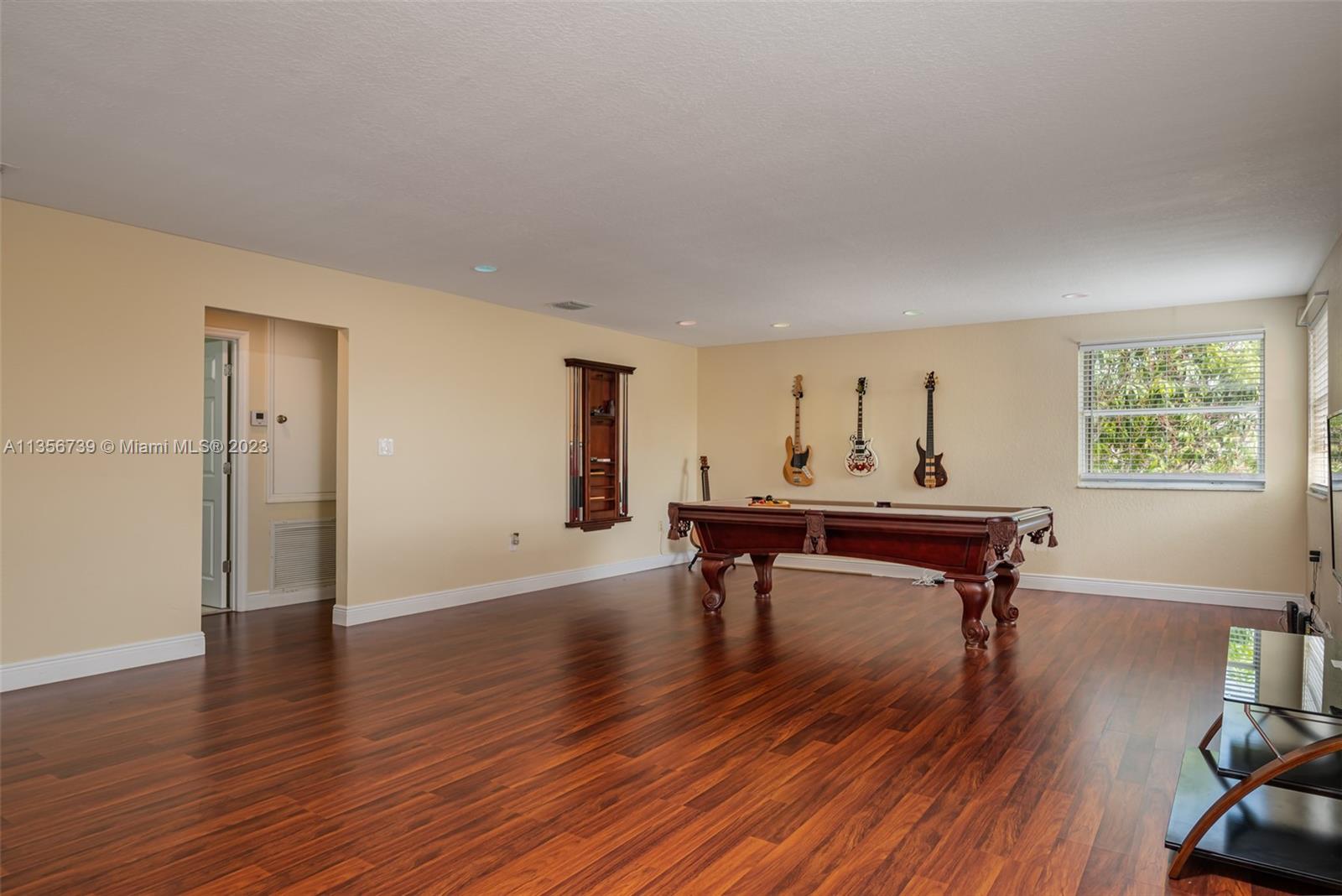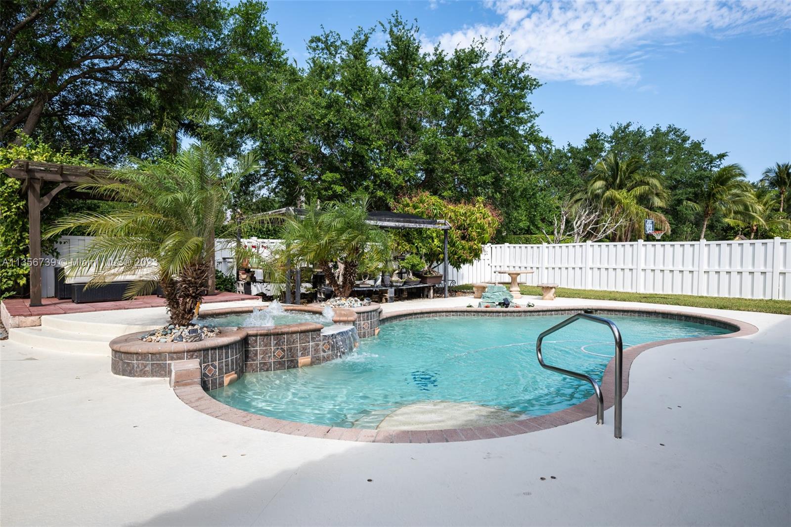 Located in coveted guard gated Pembroke Falls on an oversized lot! No neighbors behind. Large fenced backyard has gorgeous free-form heated pool with hot tub, tranquil waterfall, pergola & over-sized deck. Lovely Koi pond adds a unique touch. Fruit trees. Custom front door. Soaring volume ceilings. Enormous master suite on the 1st floor has wood flooring, luxury bath with whirlpool tub/separate shower, dual sinks. 3 bedrooms, 2 baths & huge loft/game room are located on 2nd floor & look brand new. 5th bedroom can easily be added upstairs. Enormous cook's kitchen has loads of cabinetry, large snack counter, breakfast nook. Formal living room, dining & family. Screened covered patio. Enjoy a family oriented community with fabulous amenities. Easy access to I75/595/airports, shops, schools.