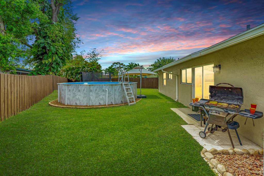 WOW! Located on a cul-de-sac with an oversized 6,911 sf lot this 2 bedroom, 1 bathroom, 1 car garage, pool, huge backyard single family home in Saddlebrook/Spanish Isles in Boca Raton with amazing Boca schools! Large upgraded concrete driveway that fits 4 cars with ease. Huge backyard that has a new fence from 2020 with wood stain (not paint). Not your ordinary above ground pool here. Pool is 18' round by 4' deep. Twin bottom drains, twin return jets, leaf skimmer, 1.5 HP two speed pump, 150 sq ft cartridge filter, FH120 heat pump with chiller, dolphin robotic cleaner, and removable safety steps. Plus a 10' by 10' purple leaf cantilever umbrella conveys as well. Rainbird Wi-Fi sprinkler system puts full control of your sprinkler system in the palm of your hand. 7' by 7' shed on