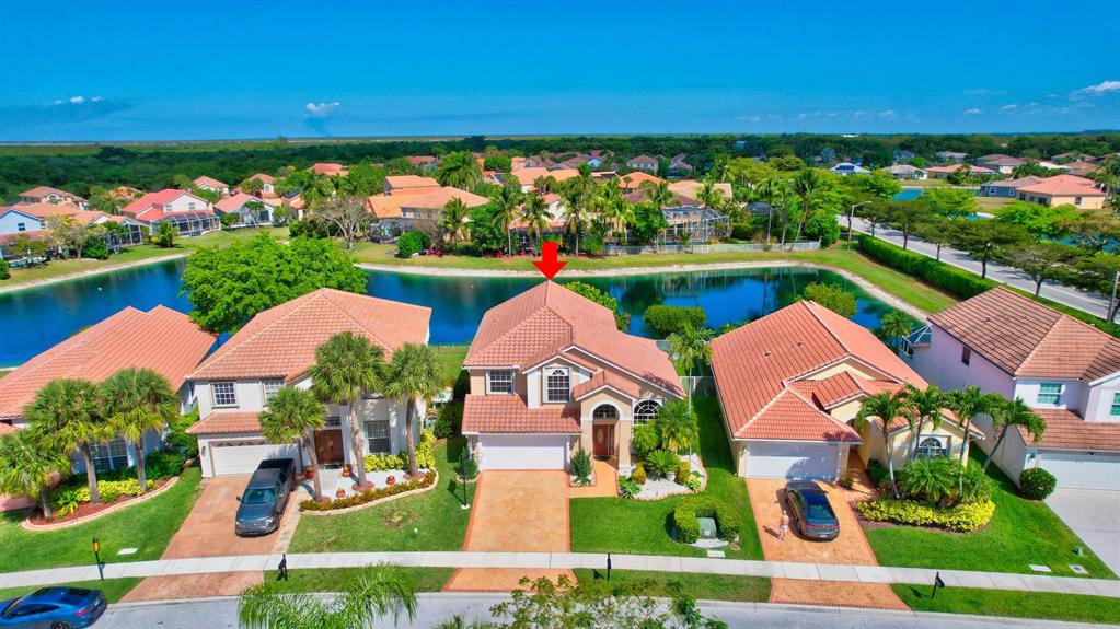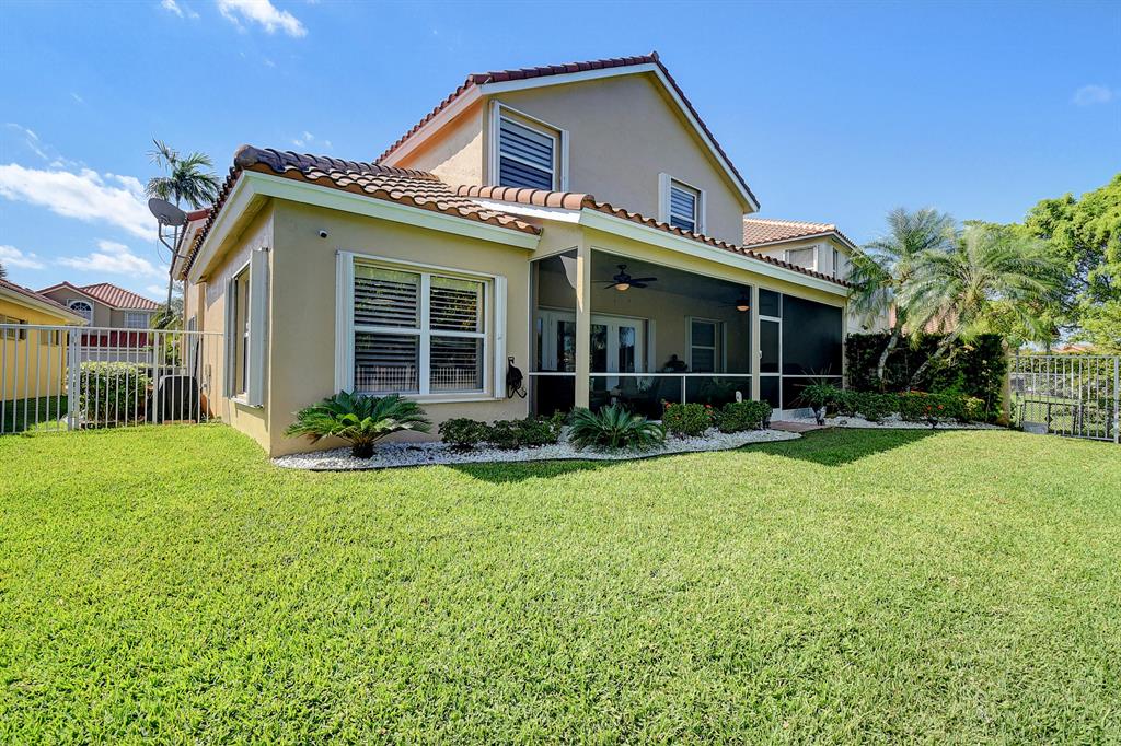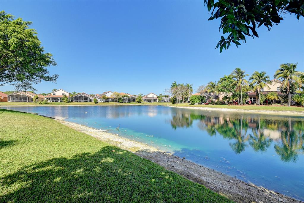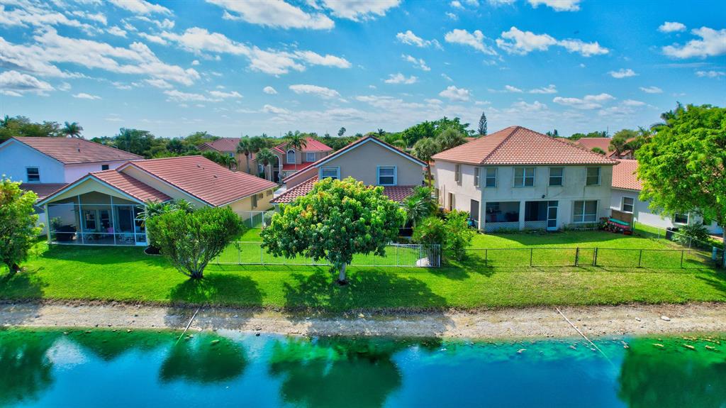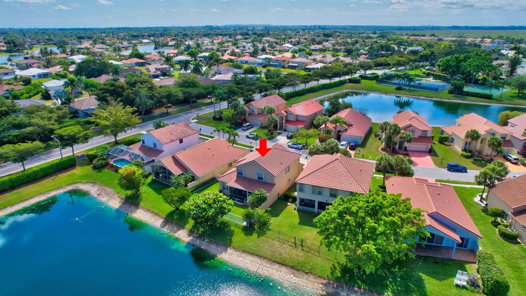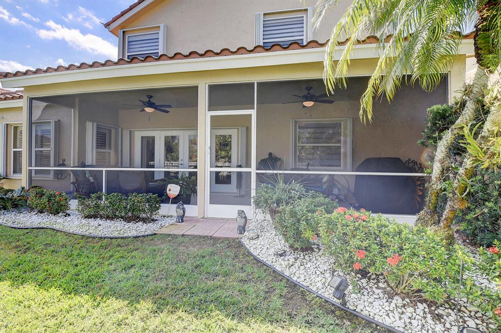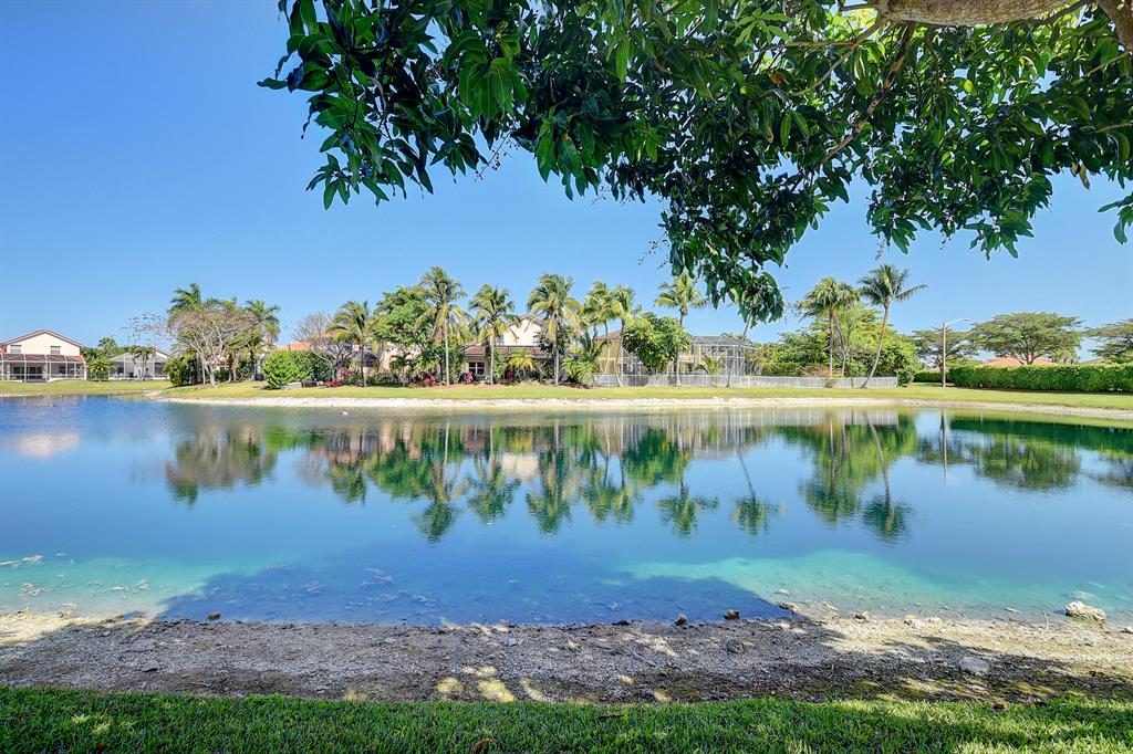 This is not a house, this is a home and a very special one. This 4 bed, 3 bath waterfront home has it all. From the moment you walk in you just want to live there. Upgraded details throughout from the neutral diagonal tile floors, the real wood and iron stair railing. Upgraded kitchen with granite, wine cooler, stainless steel appliances. Many features include high baseboards, crown molding French doors leading to screened patio overlooking a tranquil lake. One bedroom ground level and three upstairs (master). wood floors upstairs, huge master bedroom with double walk-in closets. Unbelievably beautiful upgraded master bathroom with freestanding tub, seamless shower and porcelain tile floors. Additional features include plantation shutters, generator hook up, hurricane shutters,