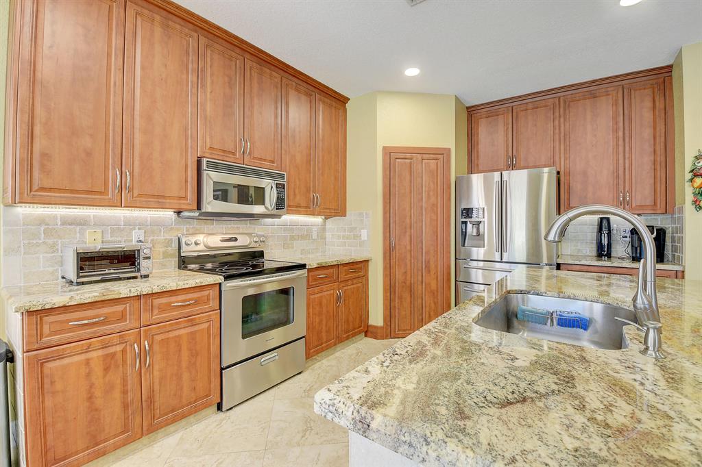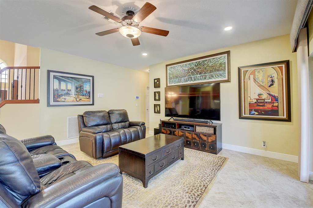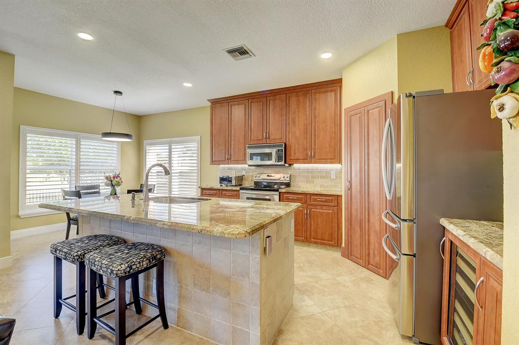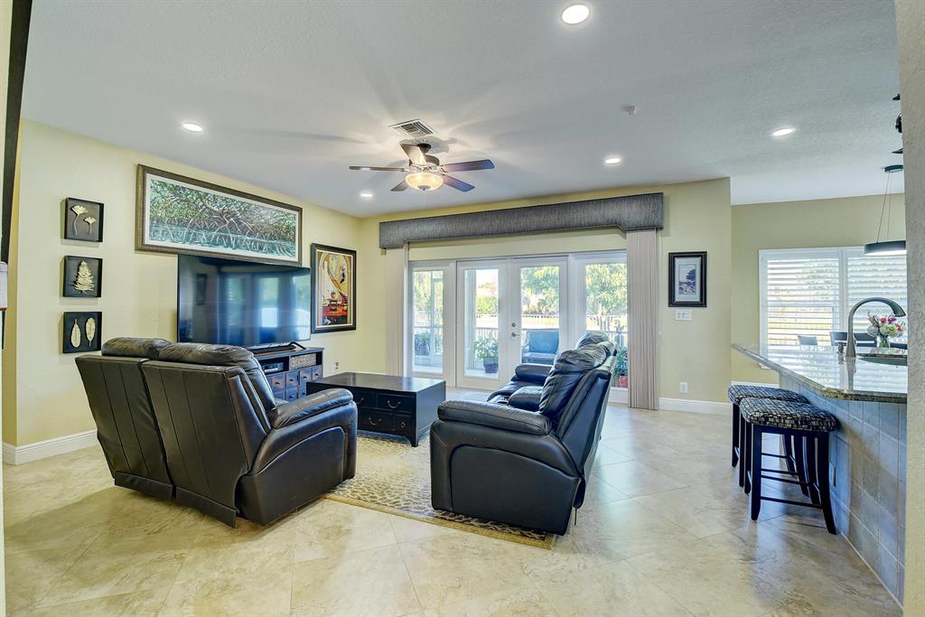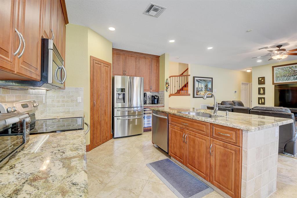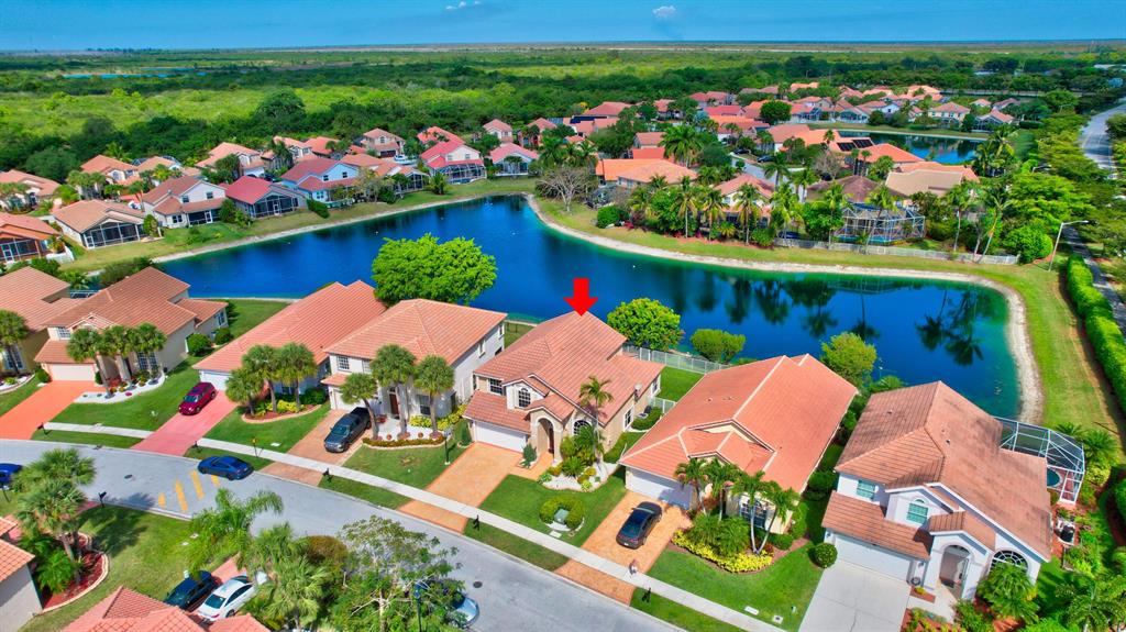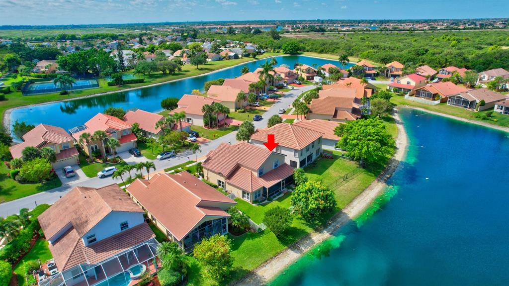 This is not a house, this is a home and a very special one. This 4 bed, 3 bath waterfront home has it all. From the moment you walk in you just want to live there. Upgraded details throughout from the neutral diagonal tile floors, the real wood and iron stair railing. Upgraded kitchen with granite, wine cooler, stainless steel appliances. Many features include high baseboards, crown molding French doors leading to screened patio overlooking a tranquil lake. One bedroom ground level and three upstairs (master). wood floors upstairs, huge master bedroom with double walk-in closets. Unbelievably beautiful upgraded master bathroom with freestanding tub, seamless shower and porcelain tile floors. Additional features include plantation shutters, generator hook up, hurricane shutters,